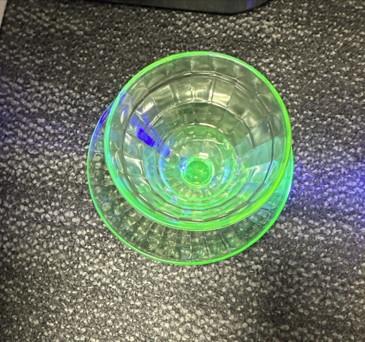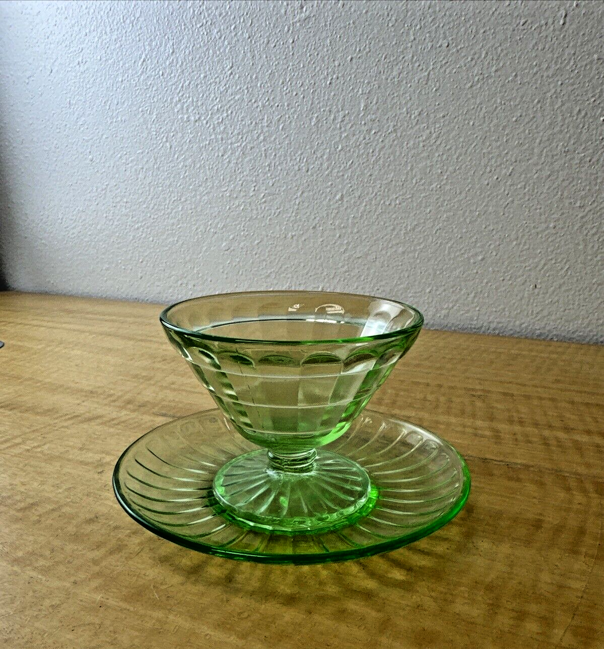 1 Anchor Hocking Green Depression Glass Block Optic 3” Sherbets/1 Uranium Plate
