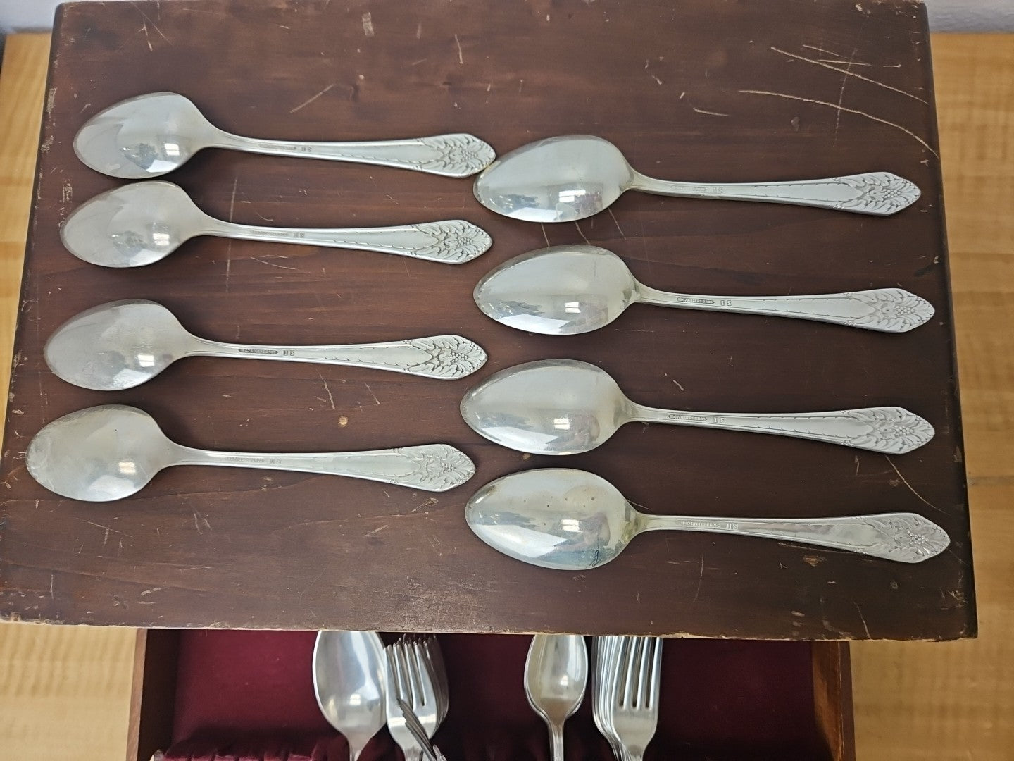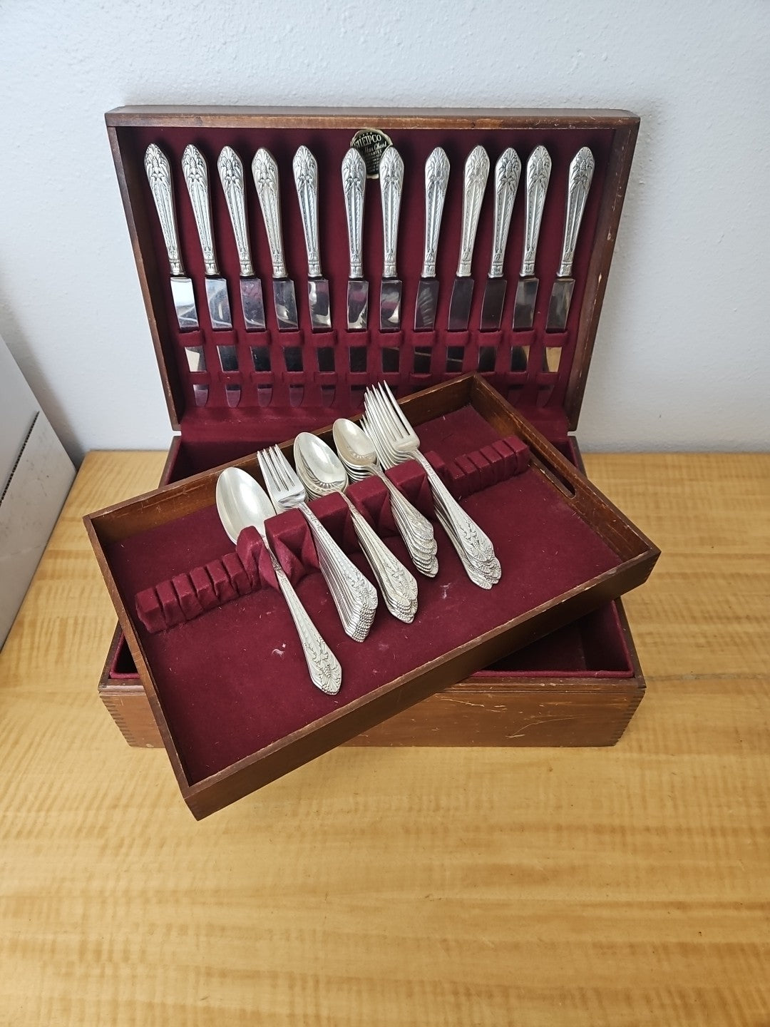 1847 ROGERS BROS. MARQUISE SILVERPLATE 56 piece SET plus box