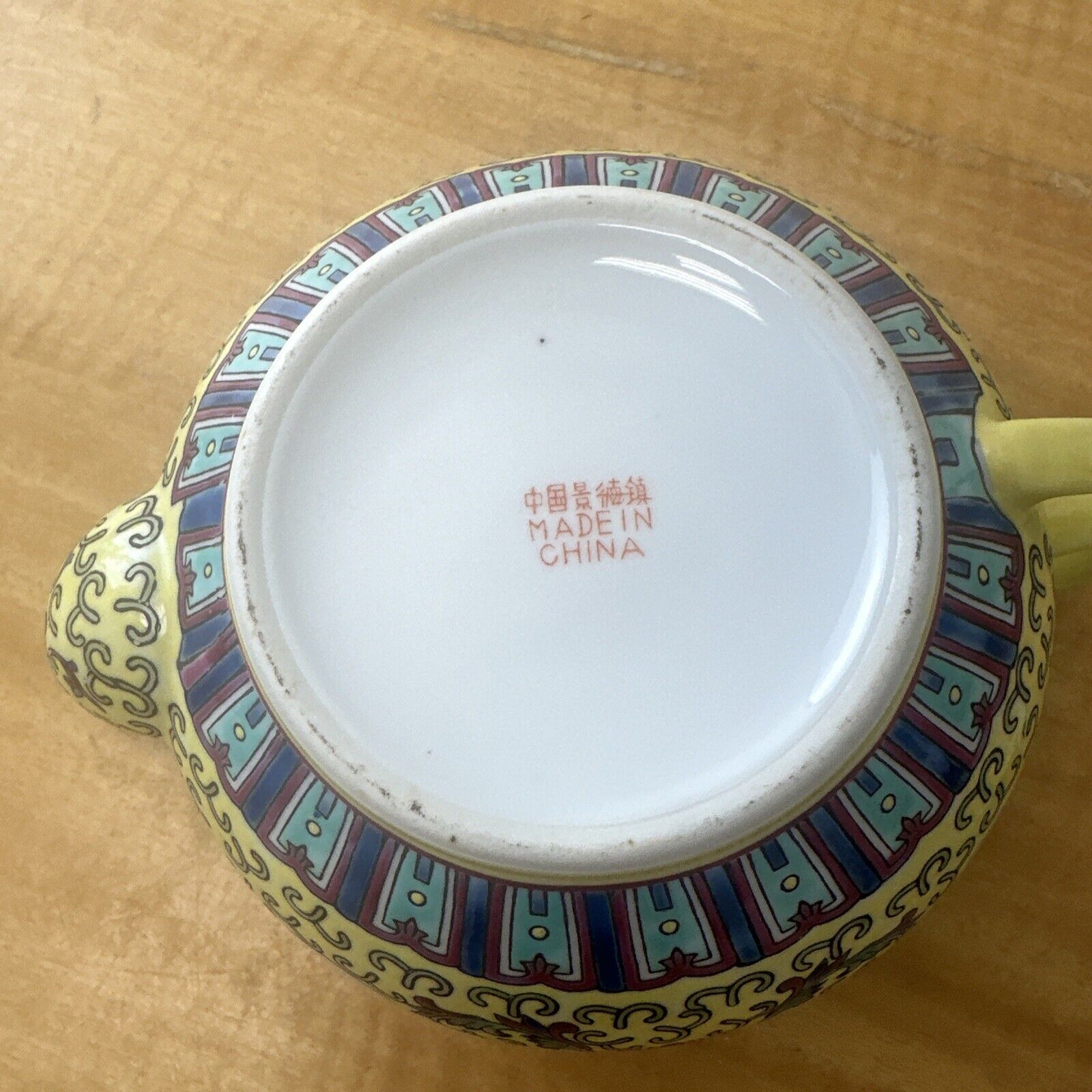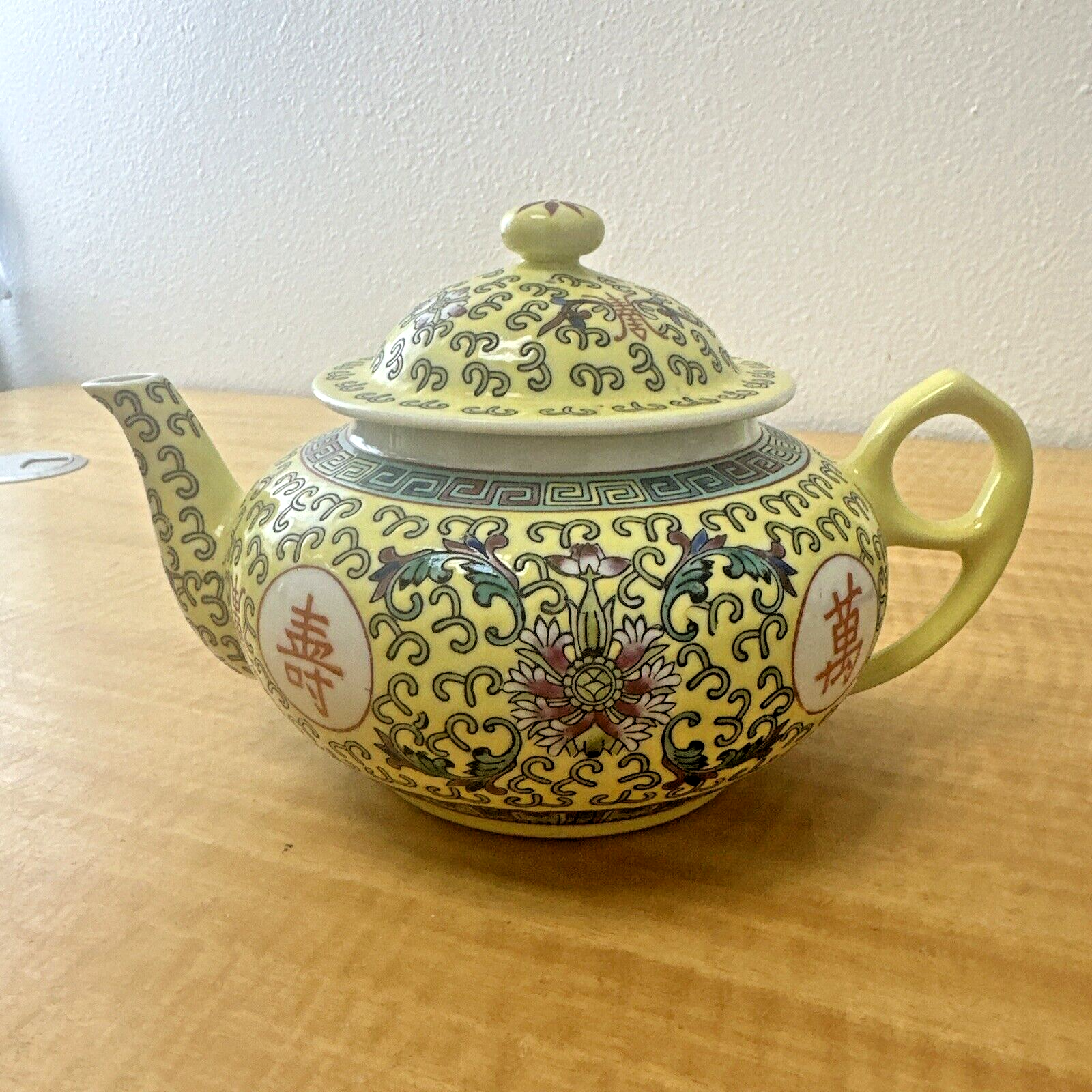 18th Century Style Yellow Porcelain Chinese Teapot Mun Shou Longevity Pattern