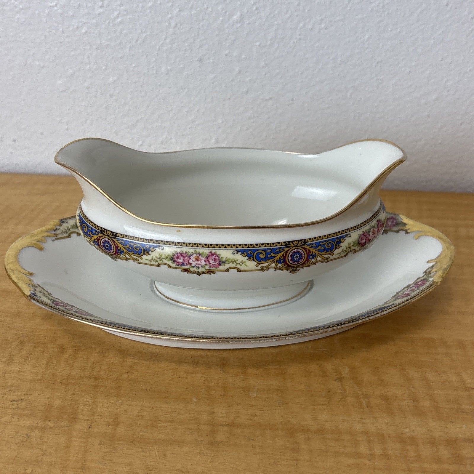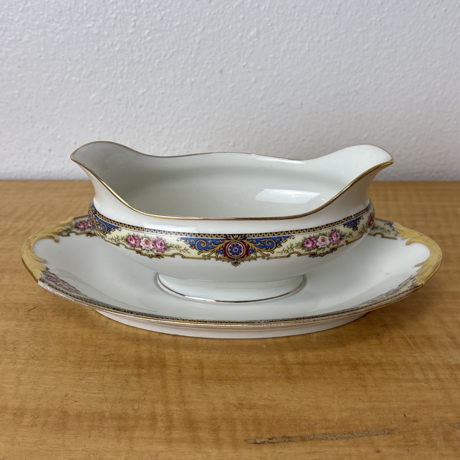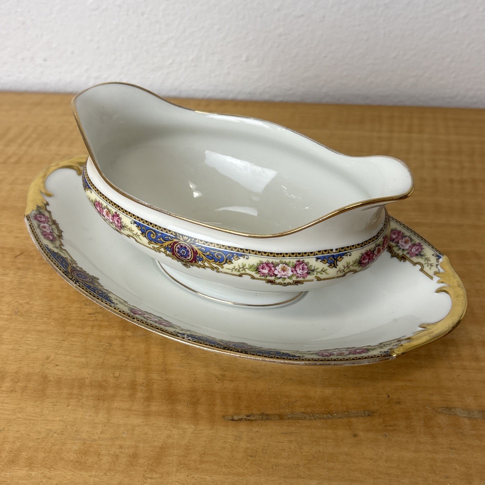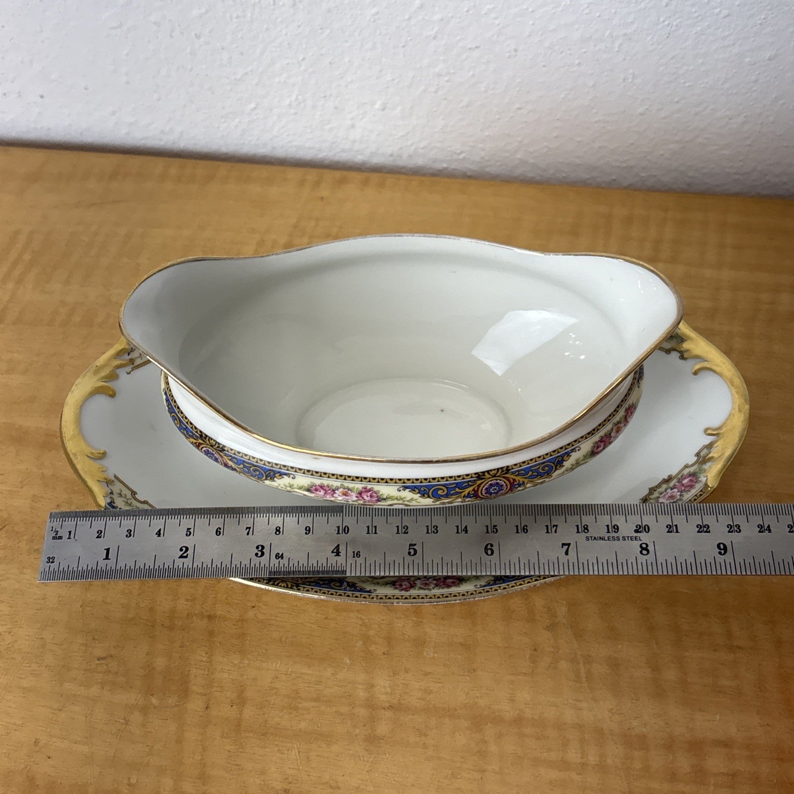 1924 Antique F. Legrand & Cie Limoges Gravy Boat w/ Attached Underplate
