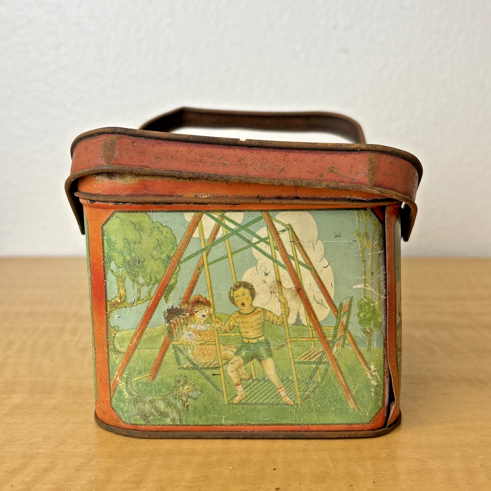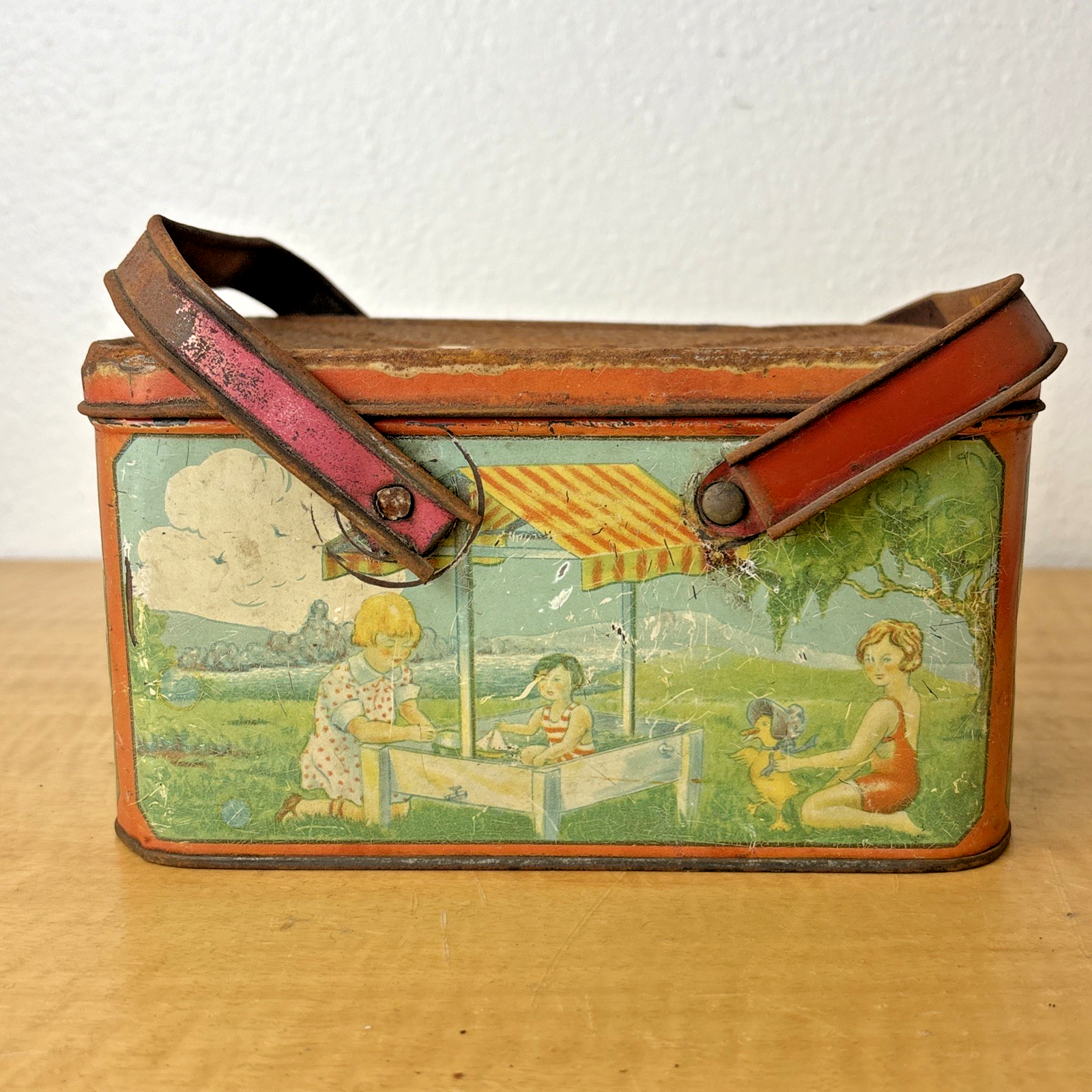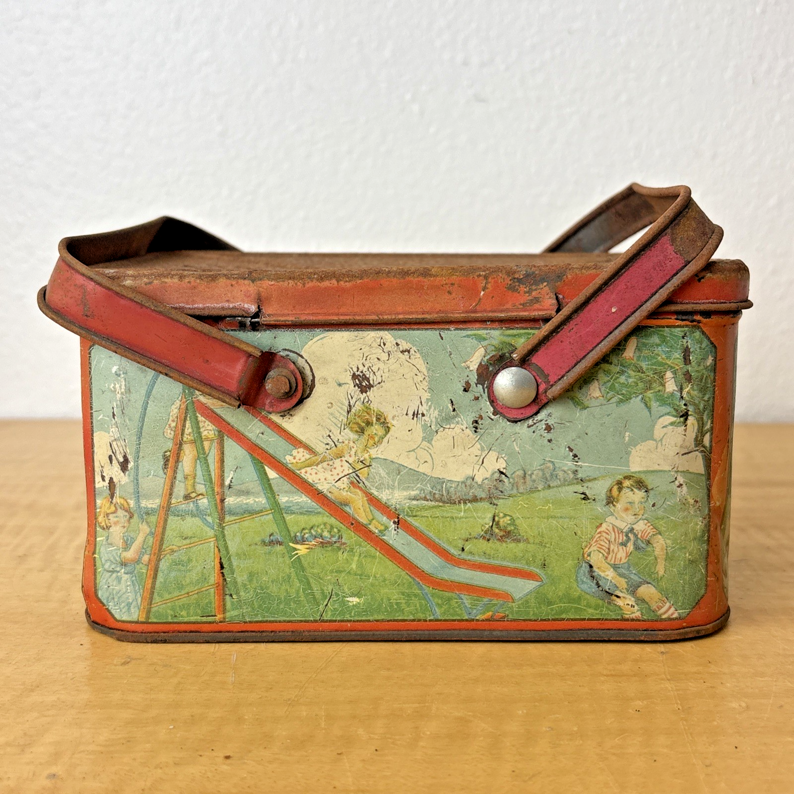 1930s Tin Litho Lunch Pail Children at Play