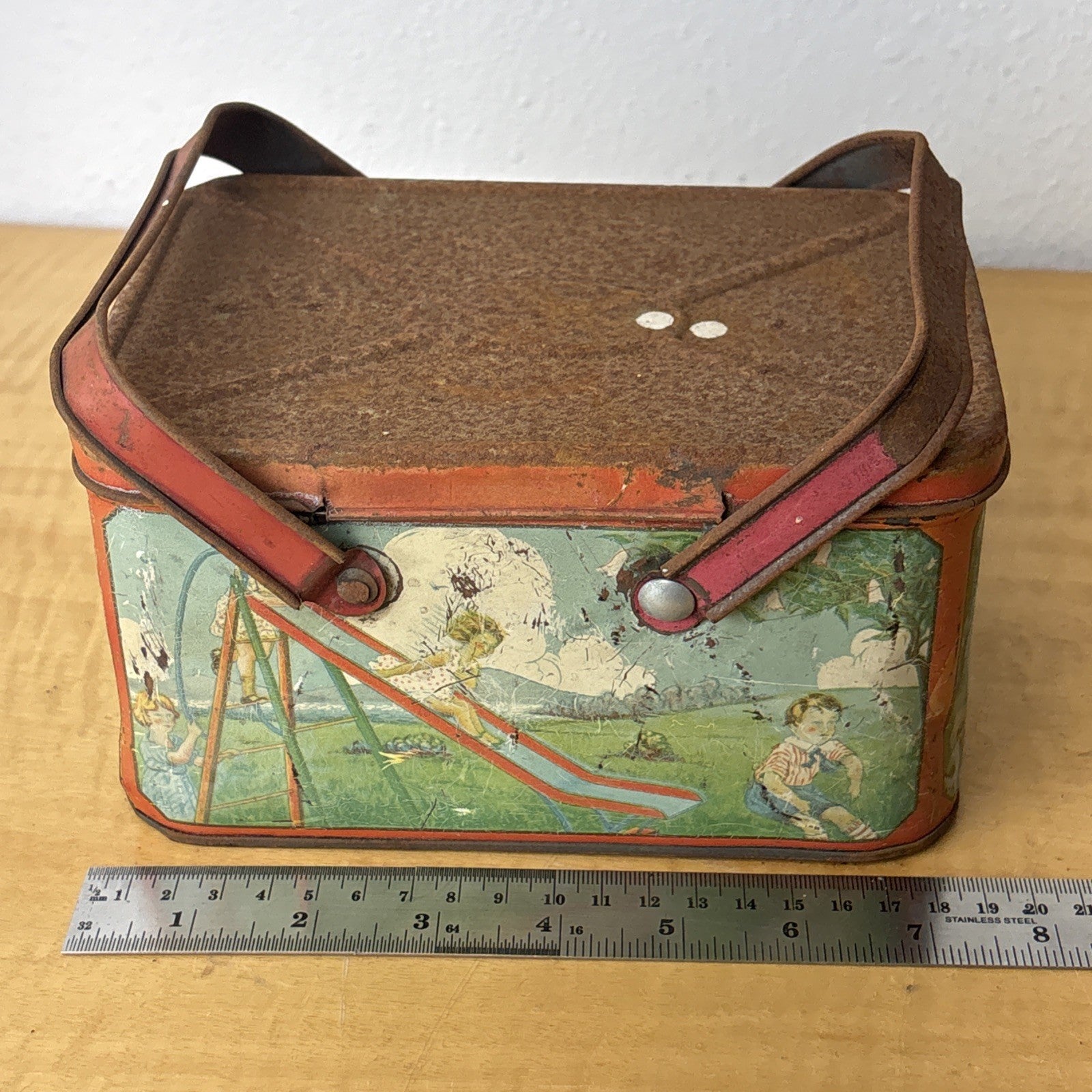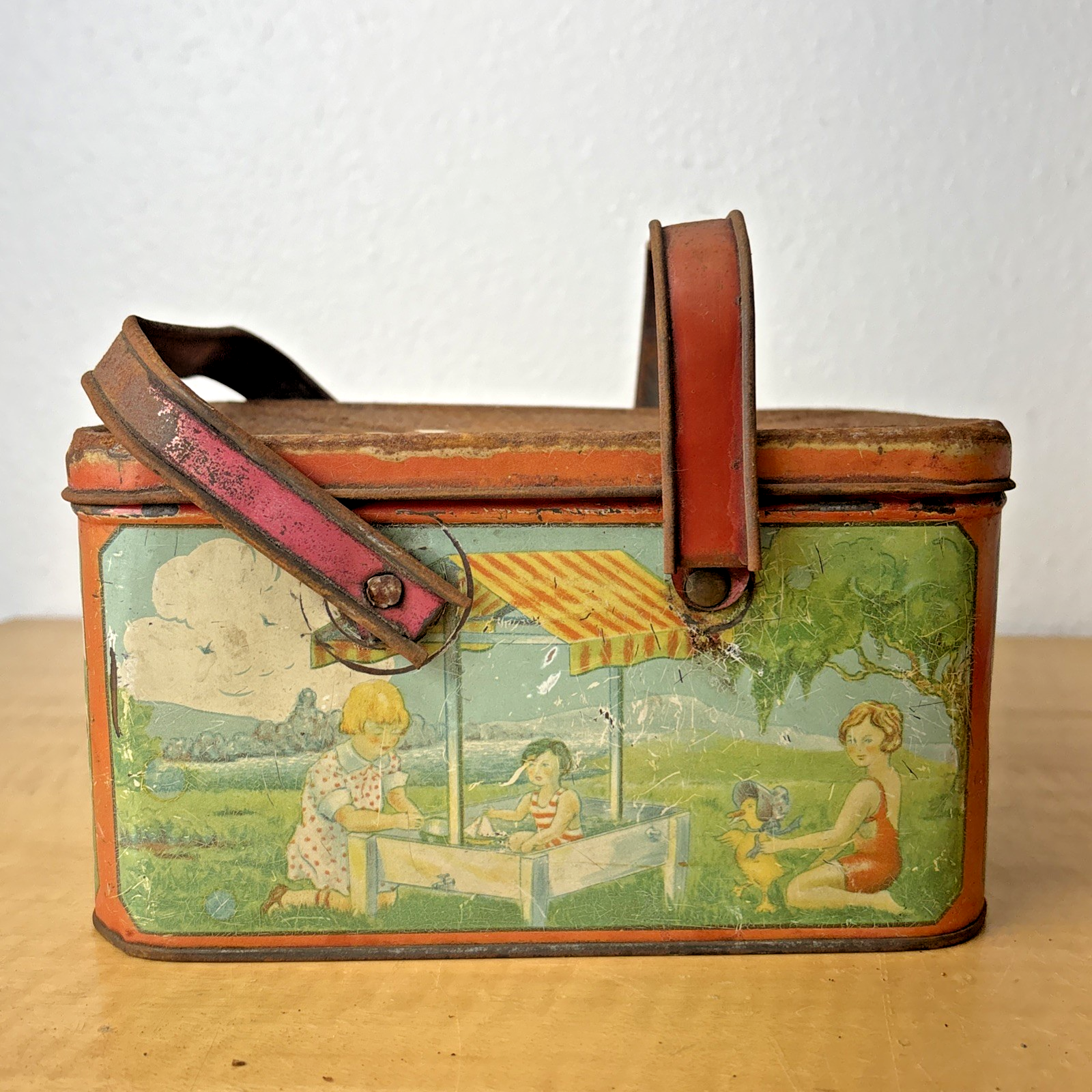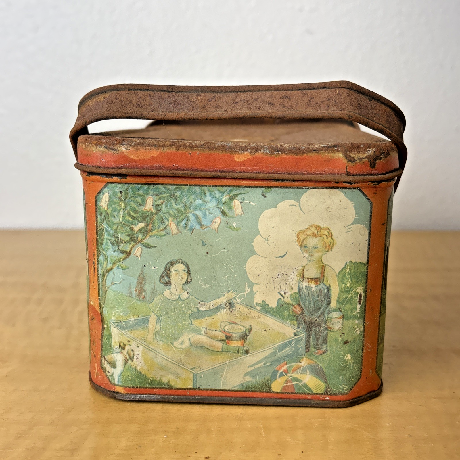 1930s Tin Litho Lunch Pail Children at Play