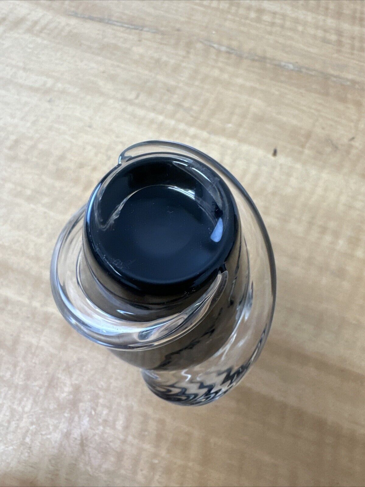 1980s Nora Fenton Black Glass Art Vase Clear Fluted Wings 4 1/2" Tall