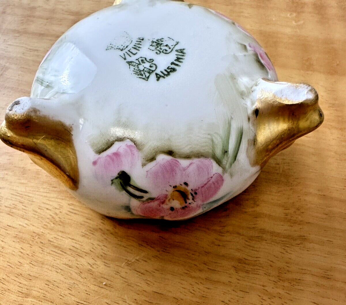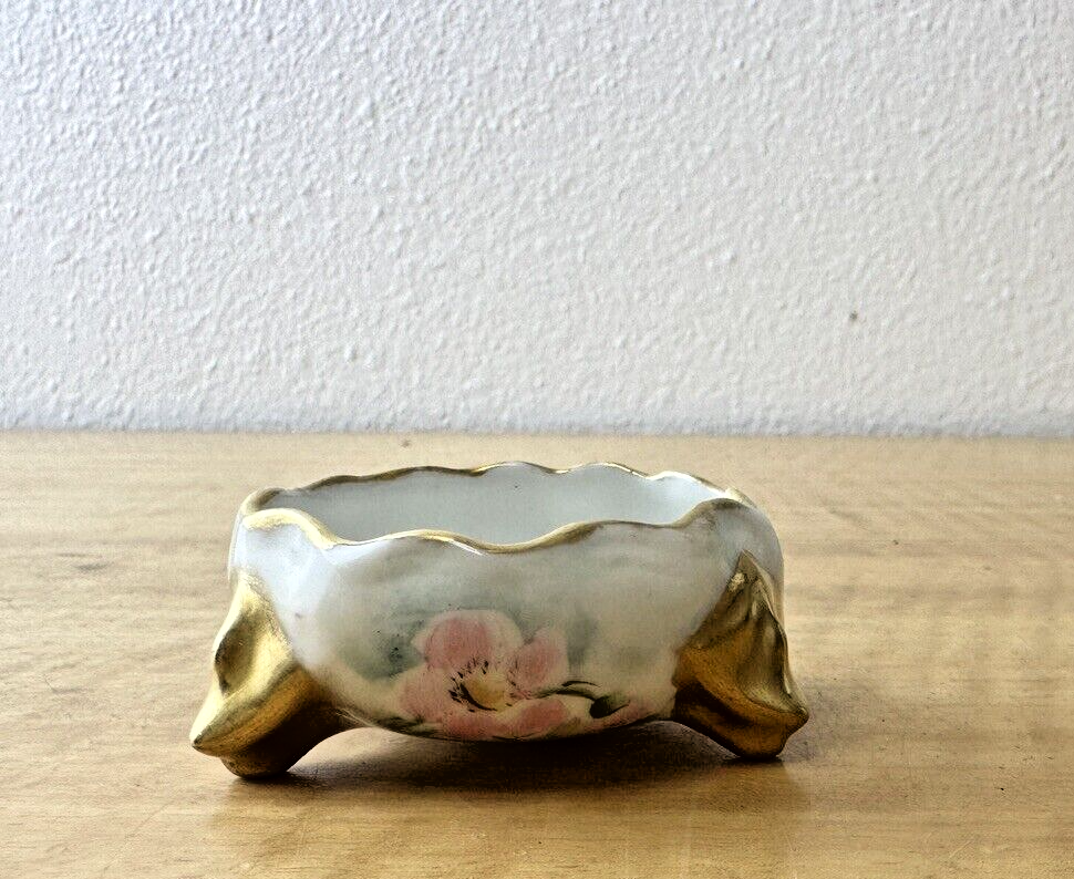 1 Porcelain Hand Painted Footed Open Salt Cellar With Spoons Made In Vienna