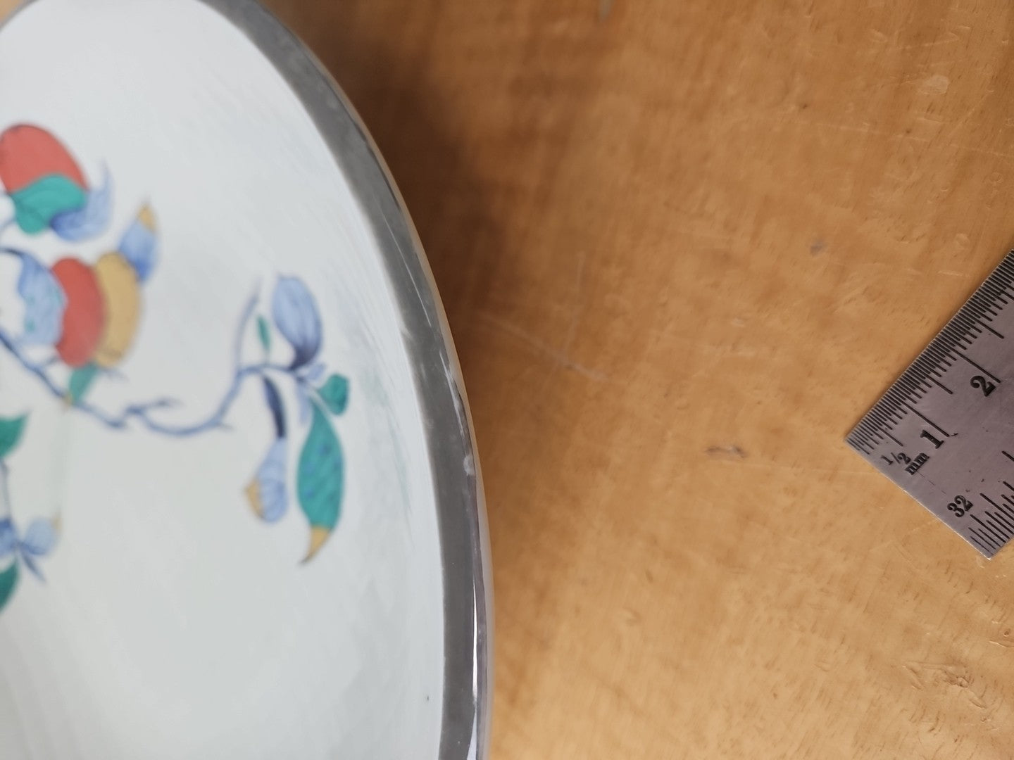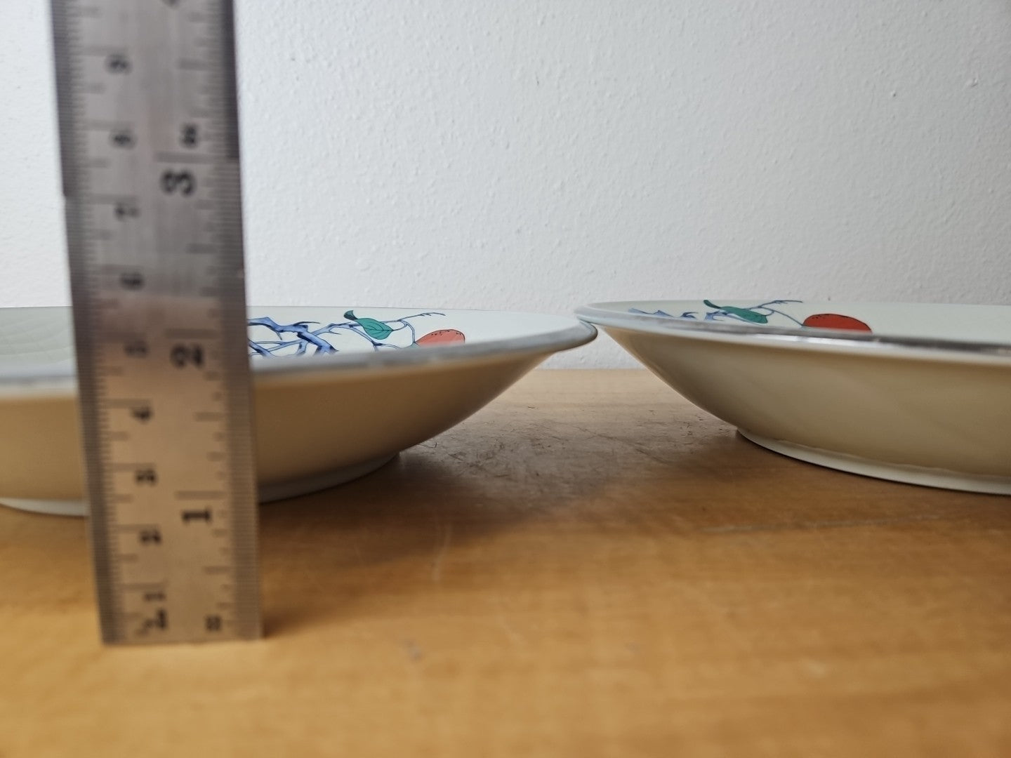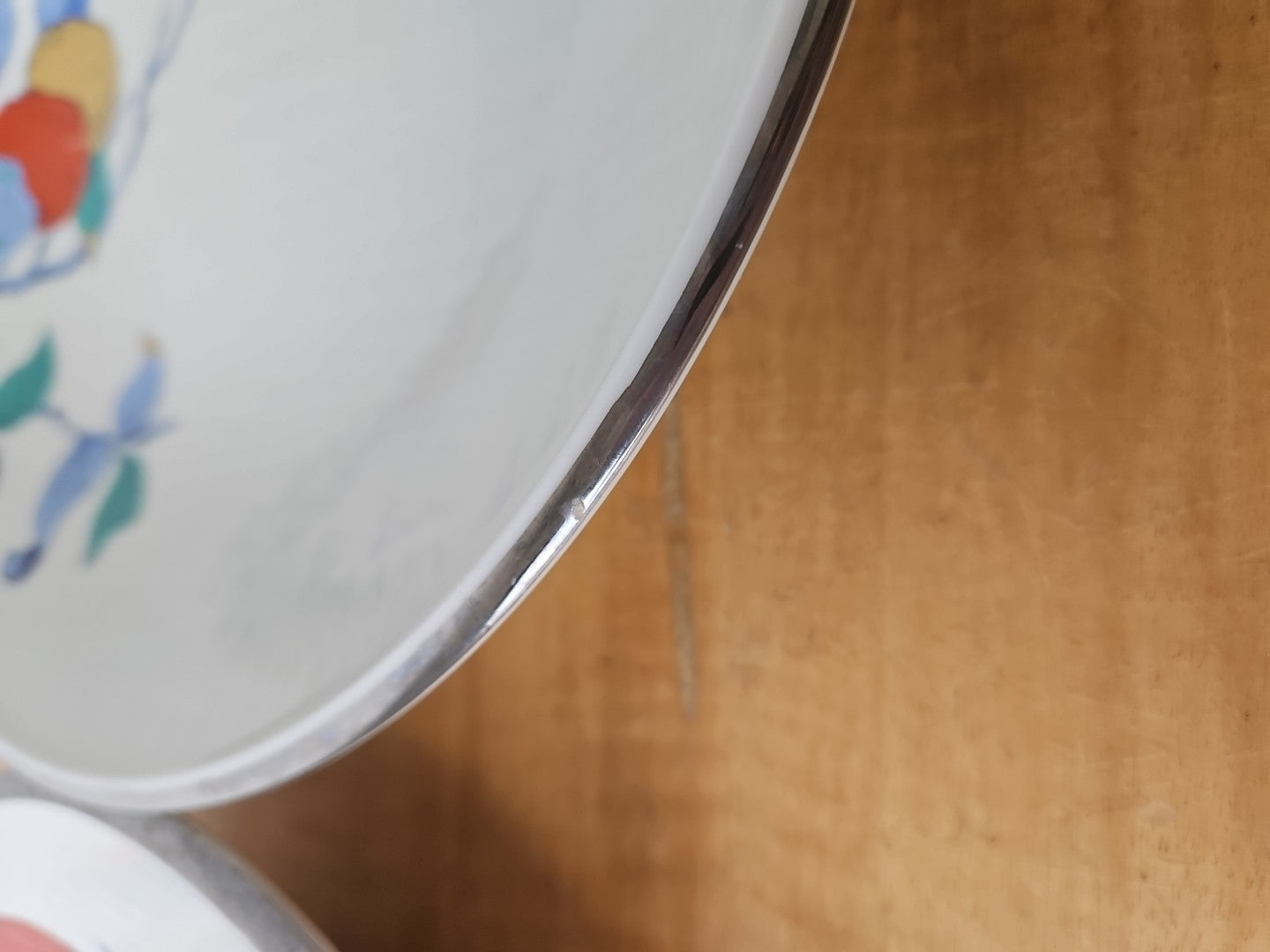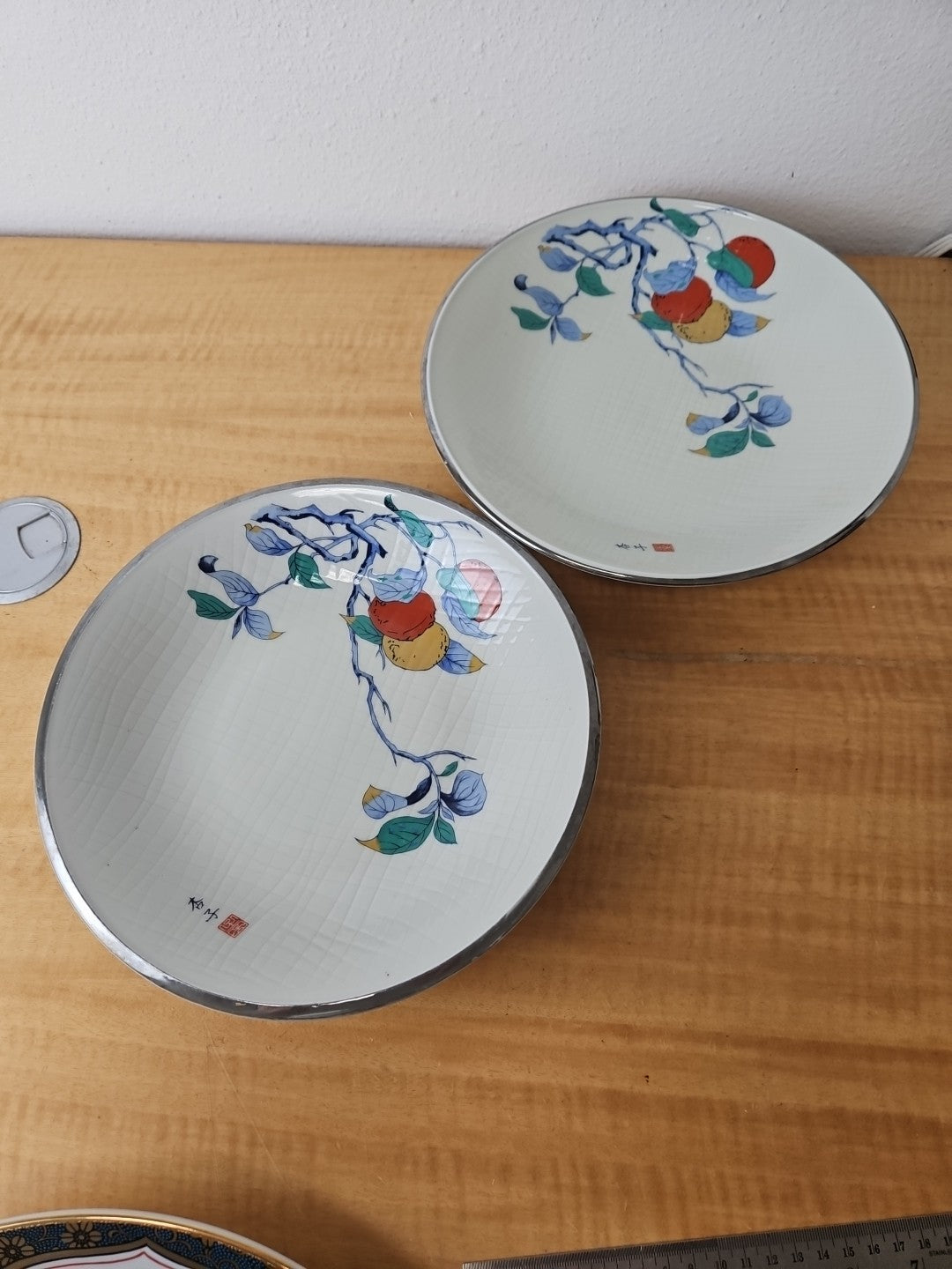 2 Beautiful Vintage Japanese Porcelain bowls, silver rim apricot 10", 10 1/2"