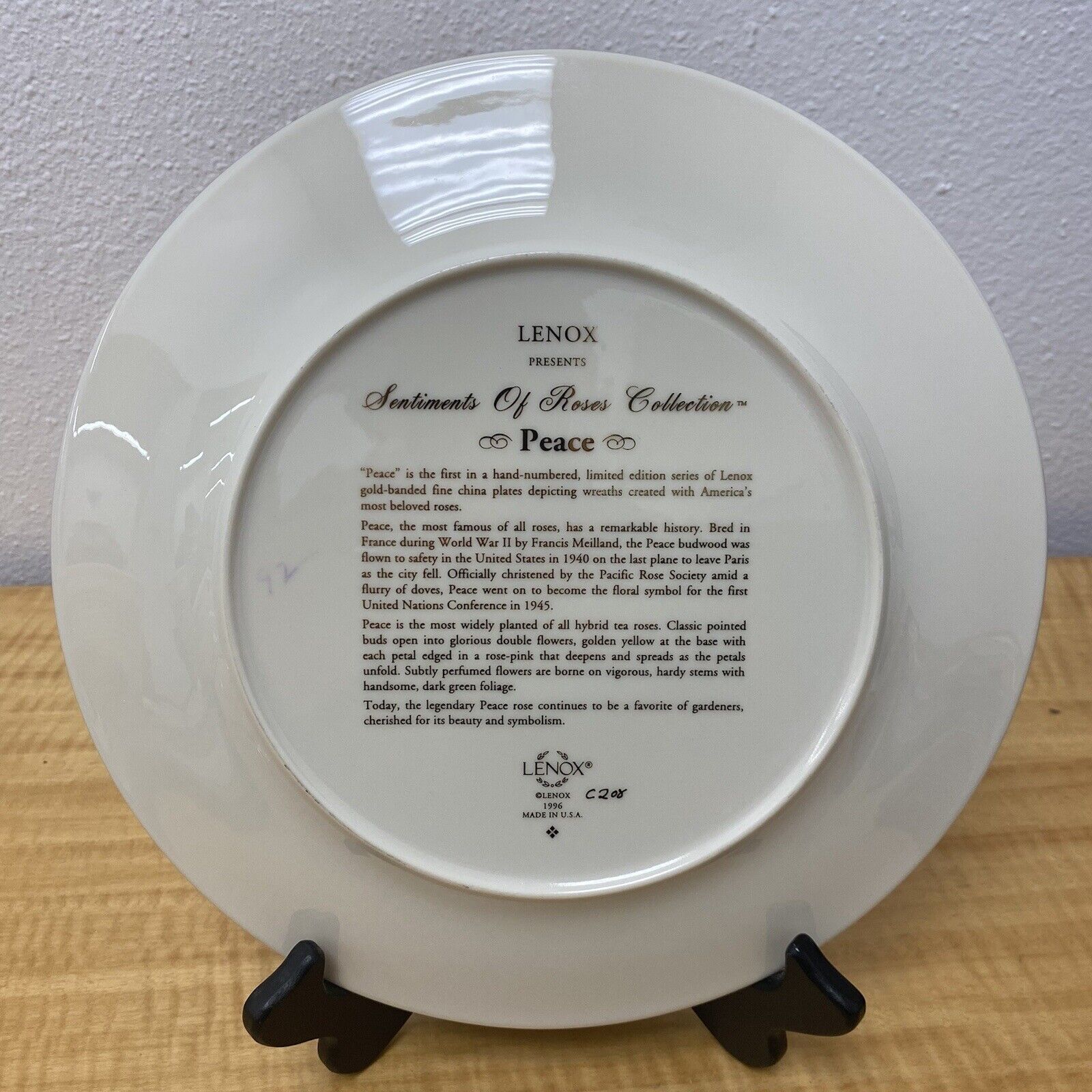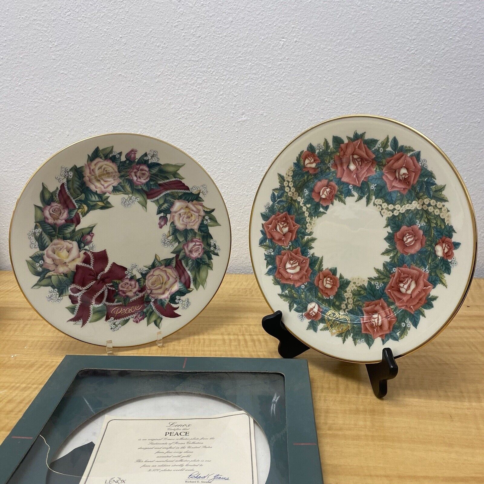2 Lenox Sentiments of Roses Collection Plates - 1996 1997 Peace Love