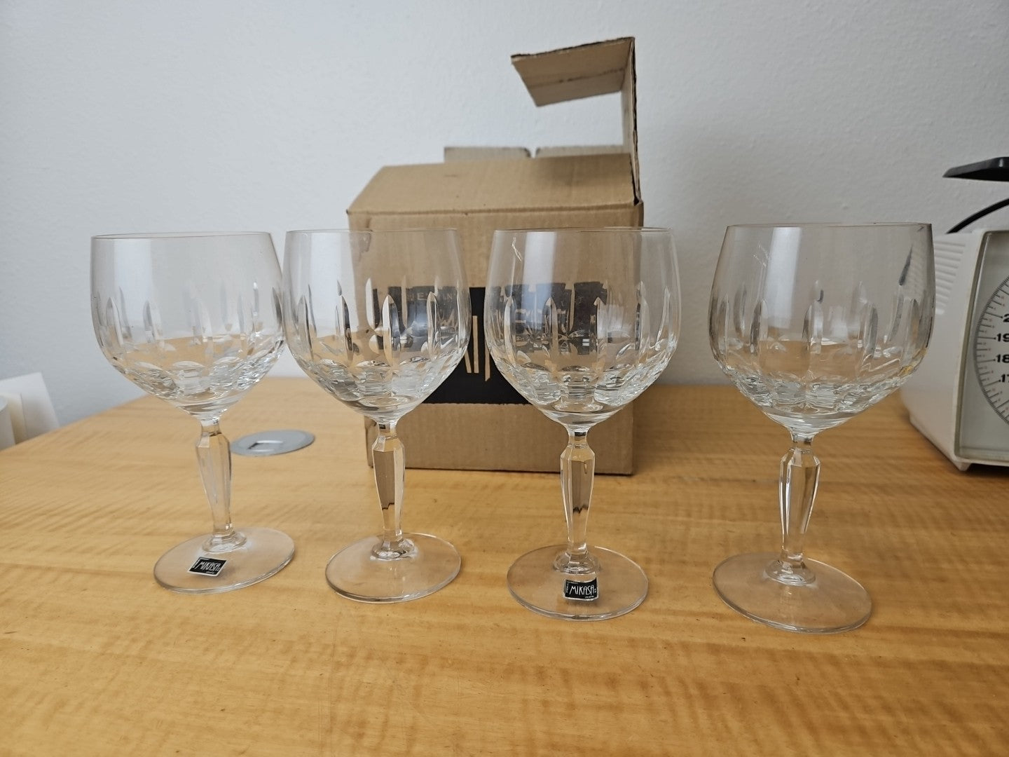 4 Mikasa Crystal "Caress" Water Goblets Glasses In Box 9134401