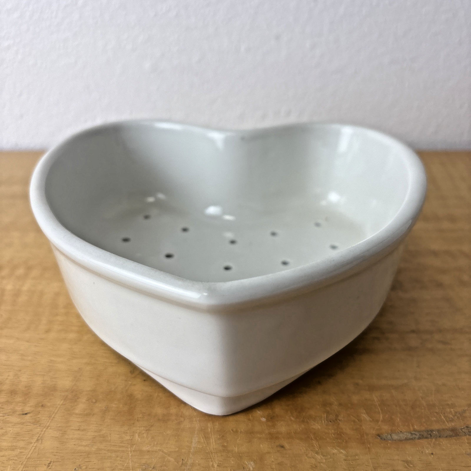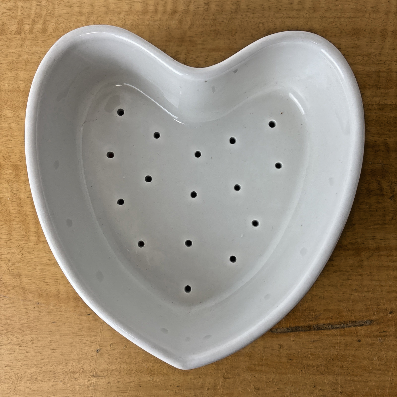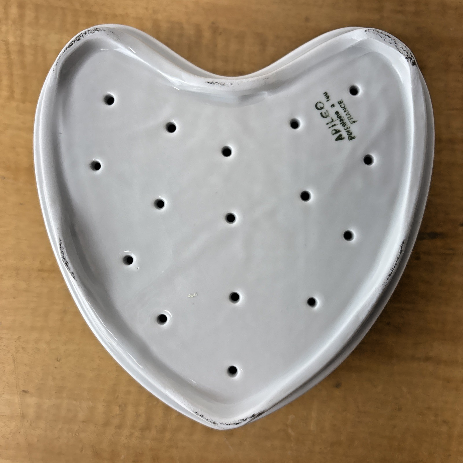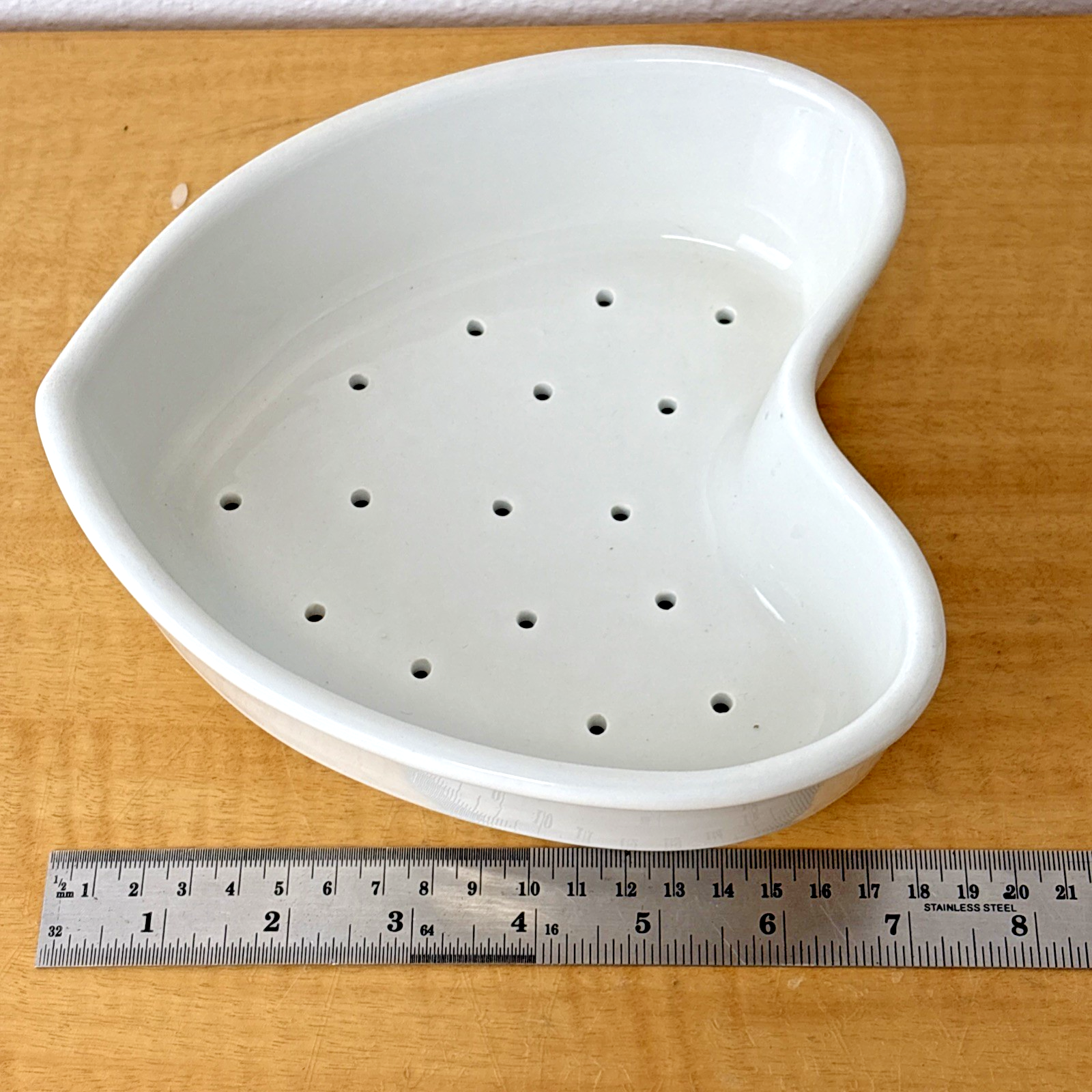 7" LARGE APILCO FRANCE HEART SHAPED CHEESE MOLD STRAINER WHITE PORCELAIN