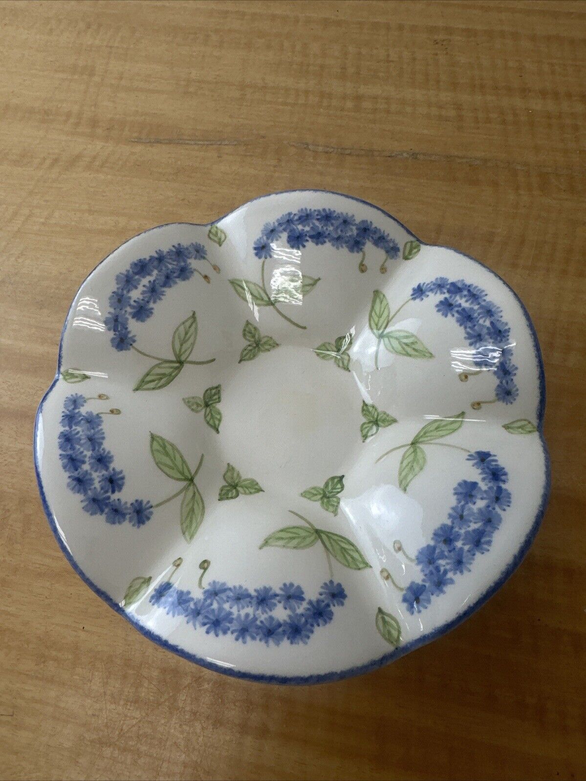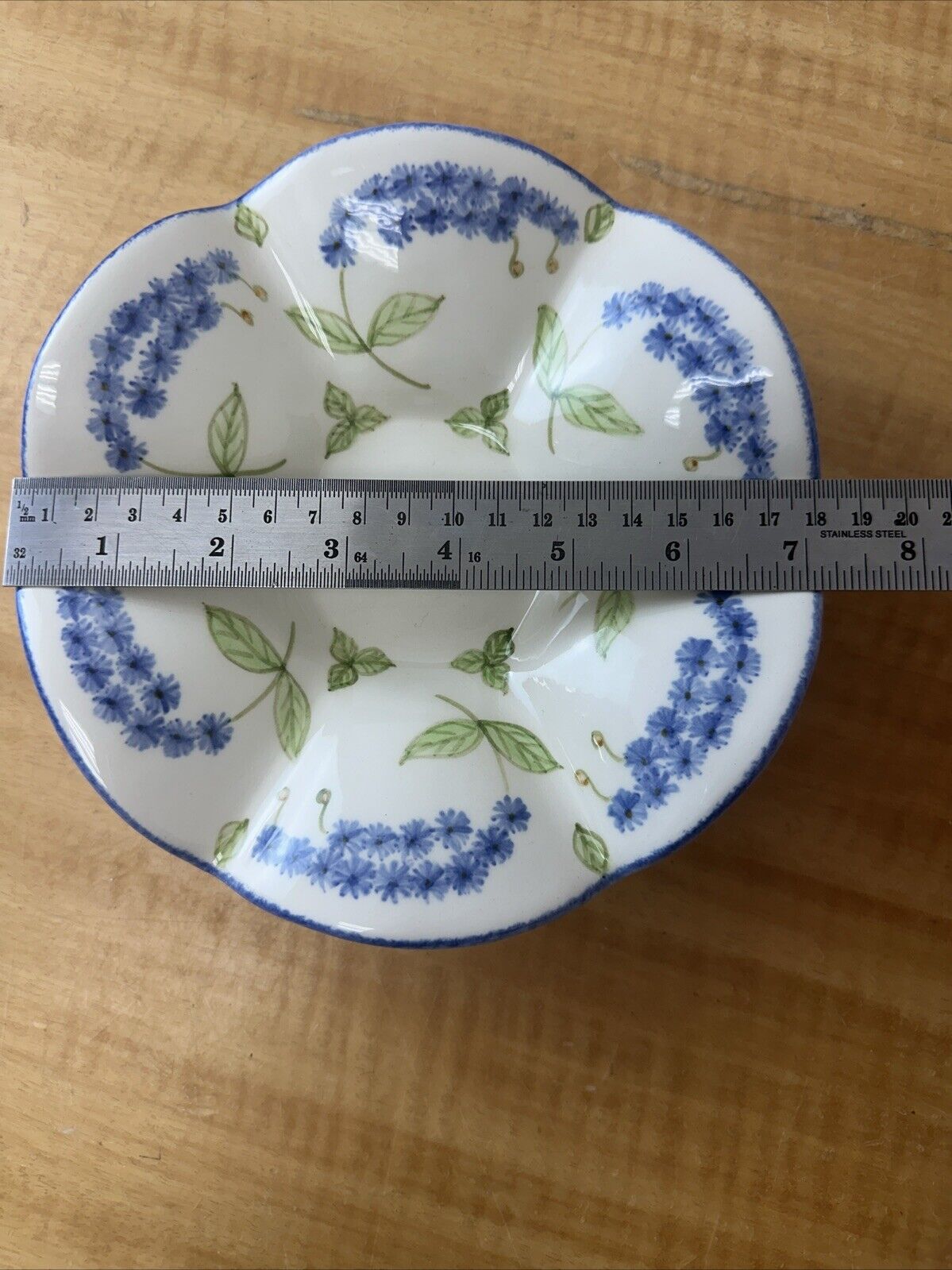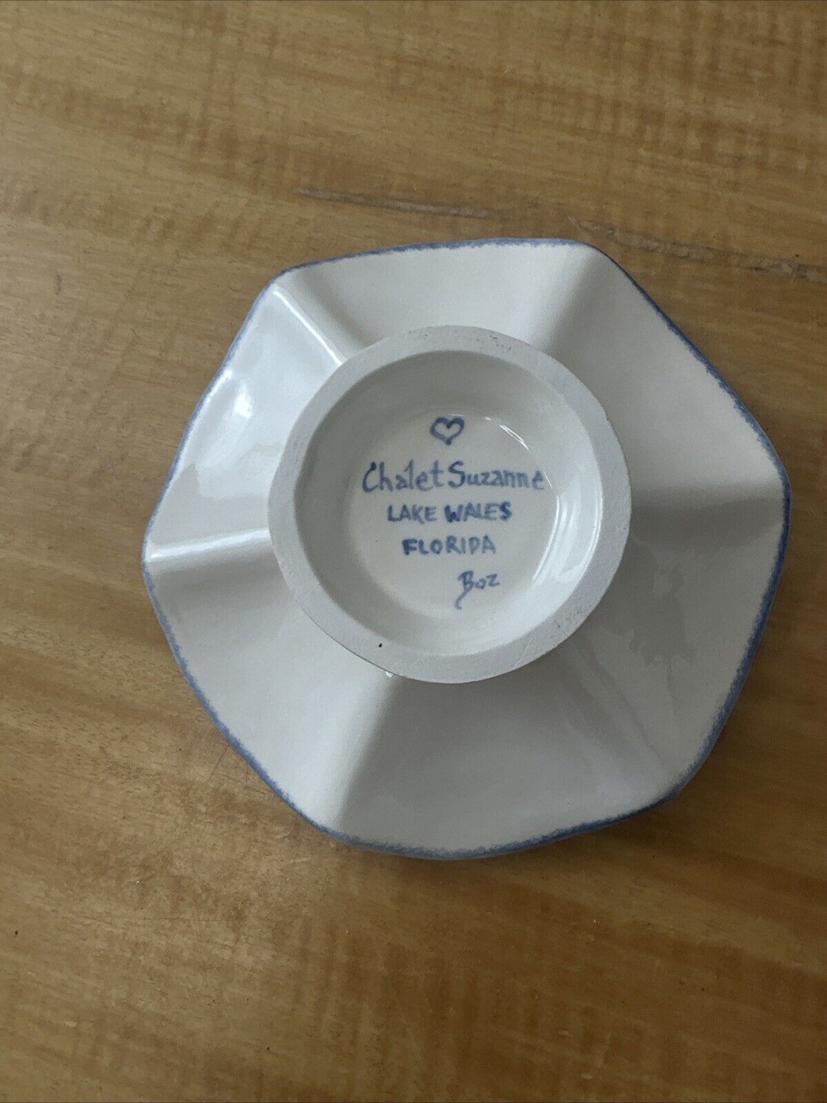 80's Vintage Chalet Suzanne Ceramic Bowls, White & Blue & Green Flower Design