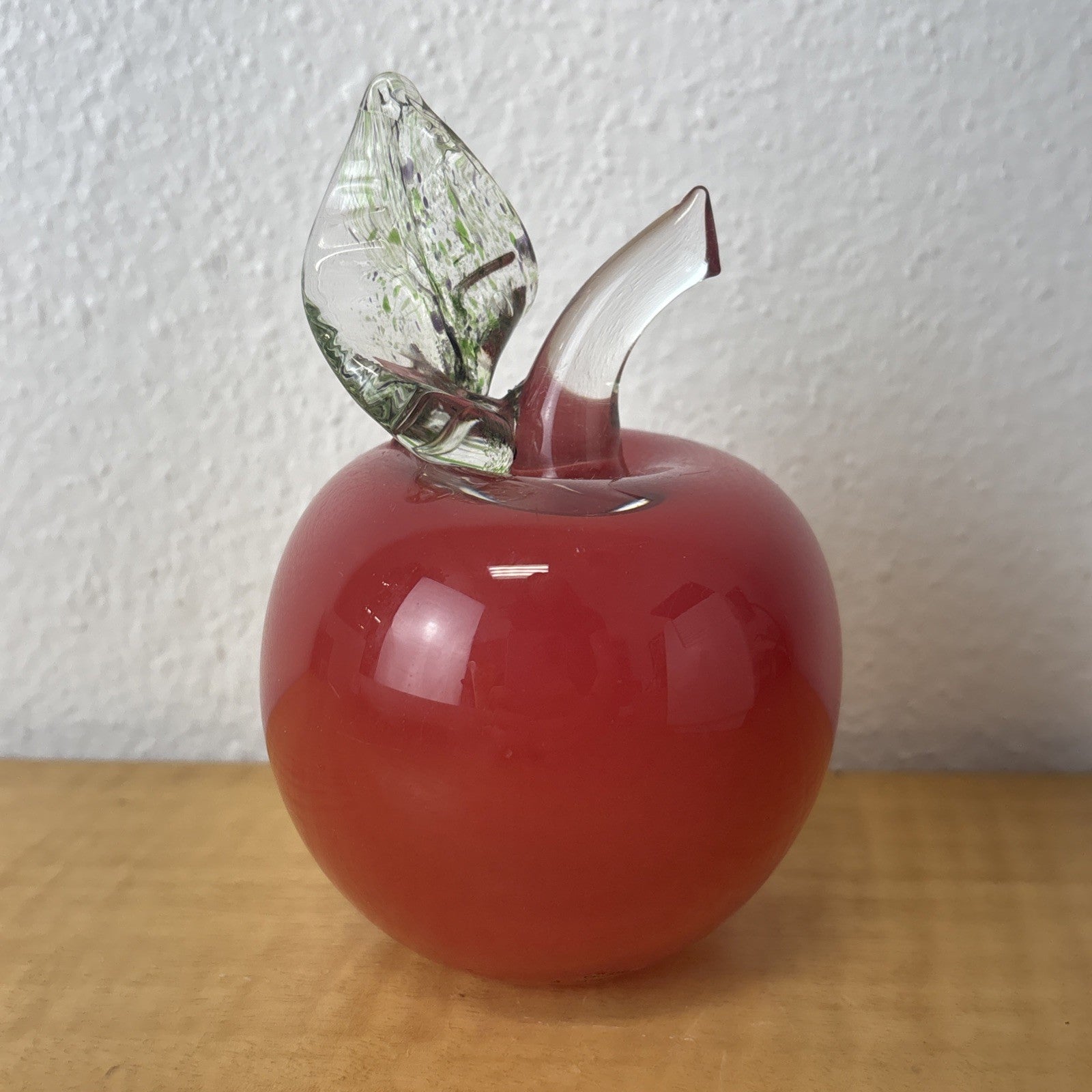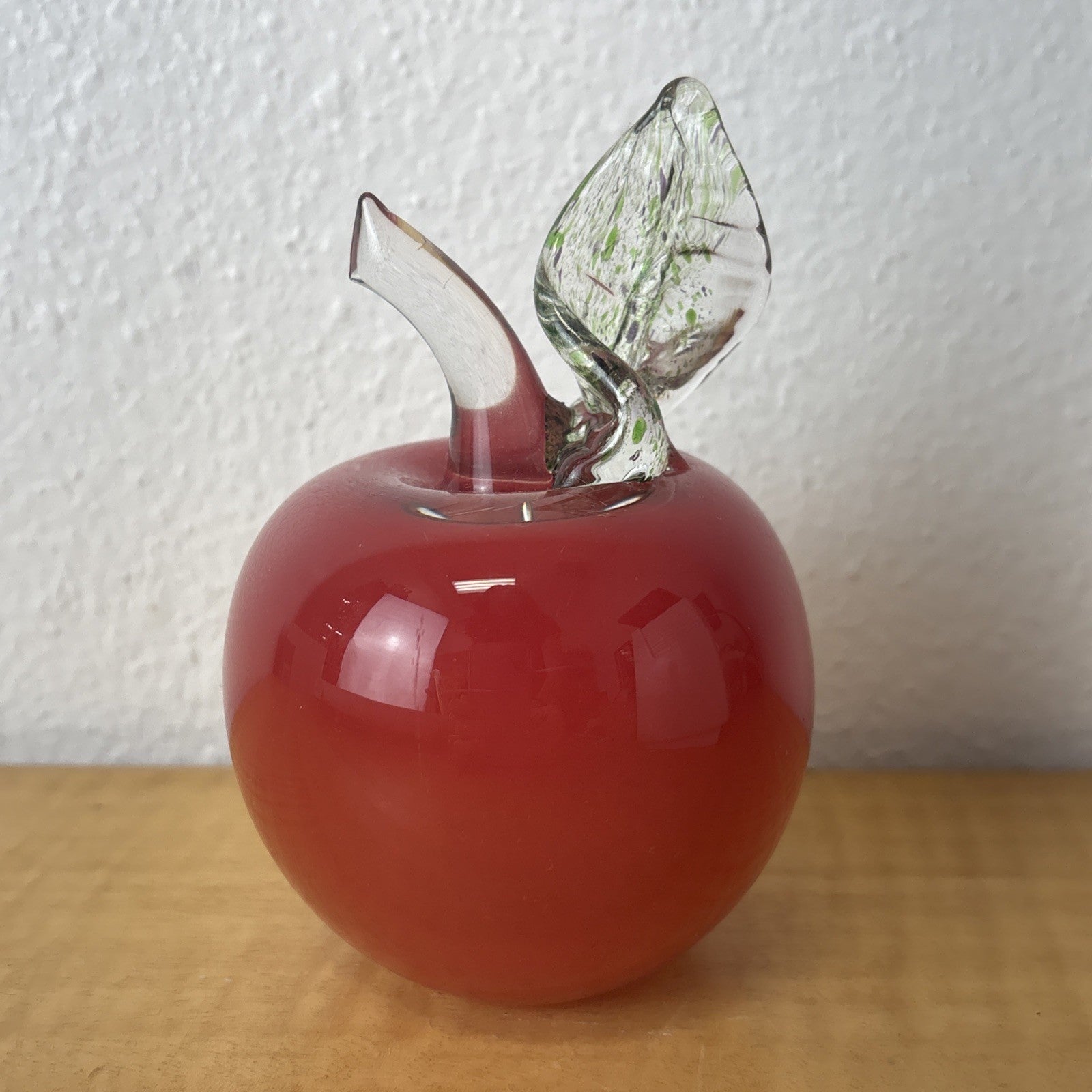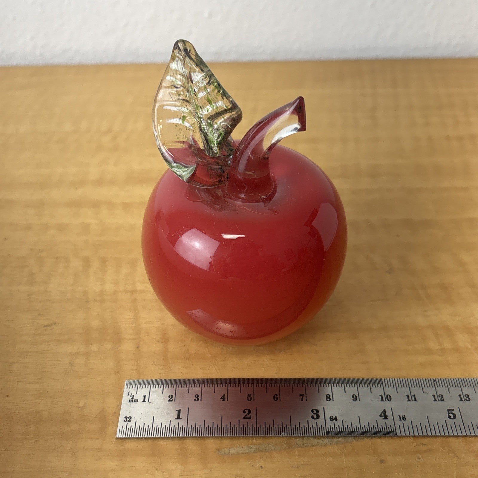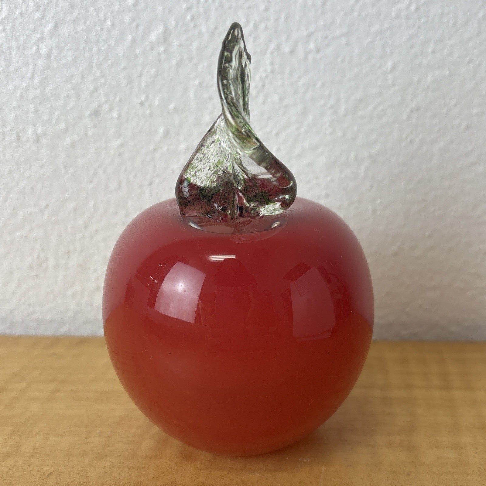 Adam Jablonksi Mid Century Modern Glass Apple Paperweight Sculpture