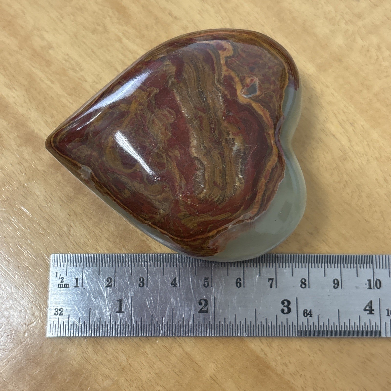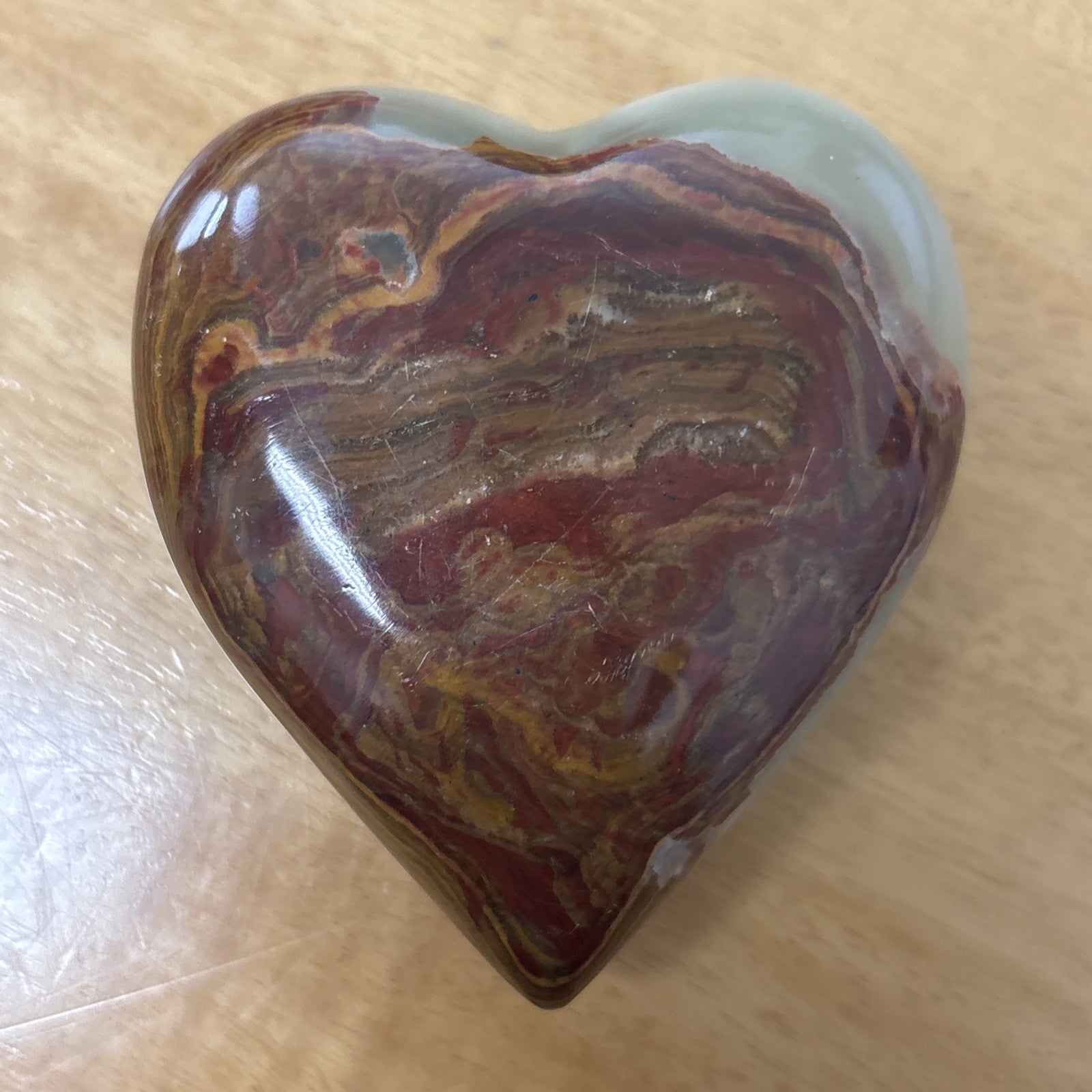 Agate Geode Red Yellow ( Jasper ? ) Heart Decoration