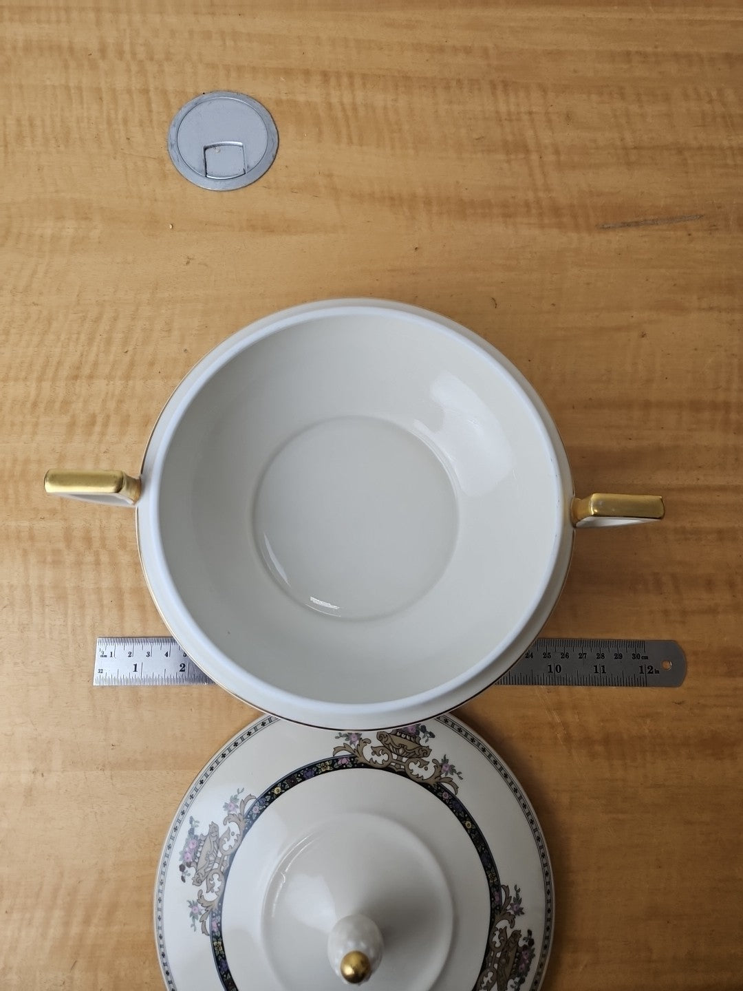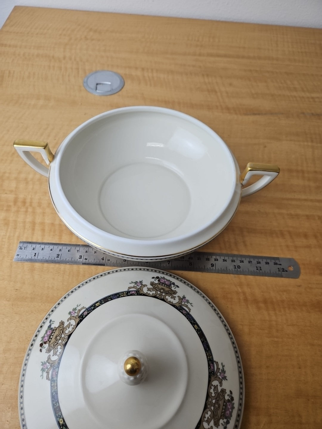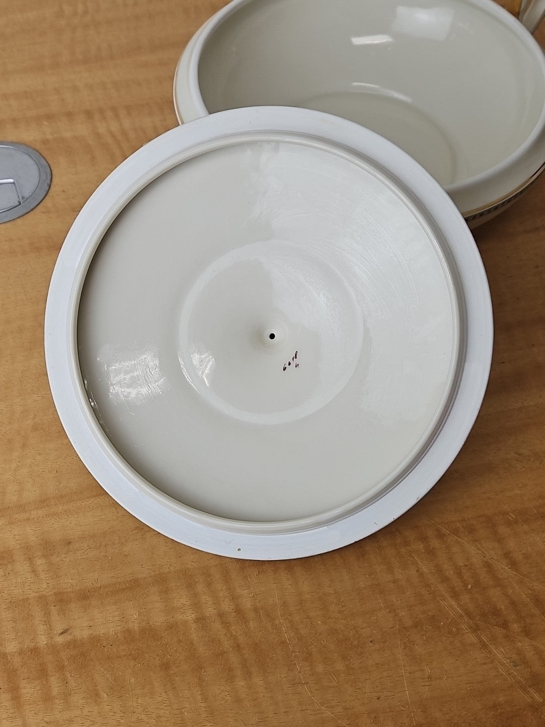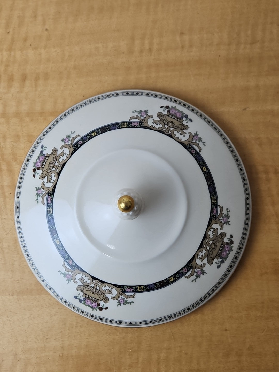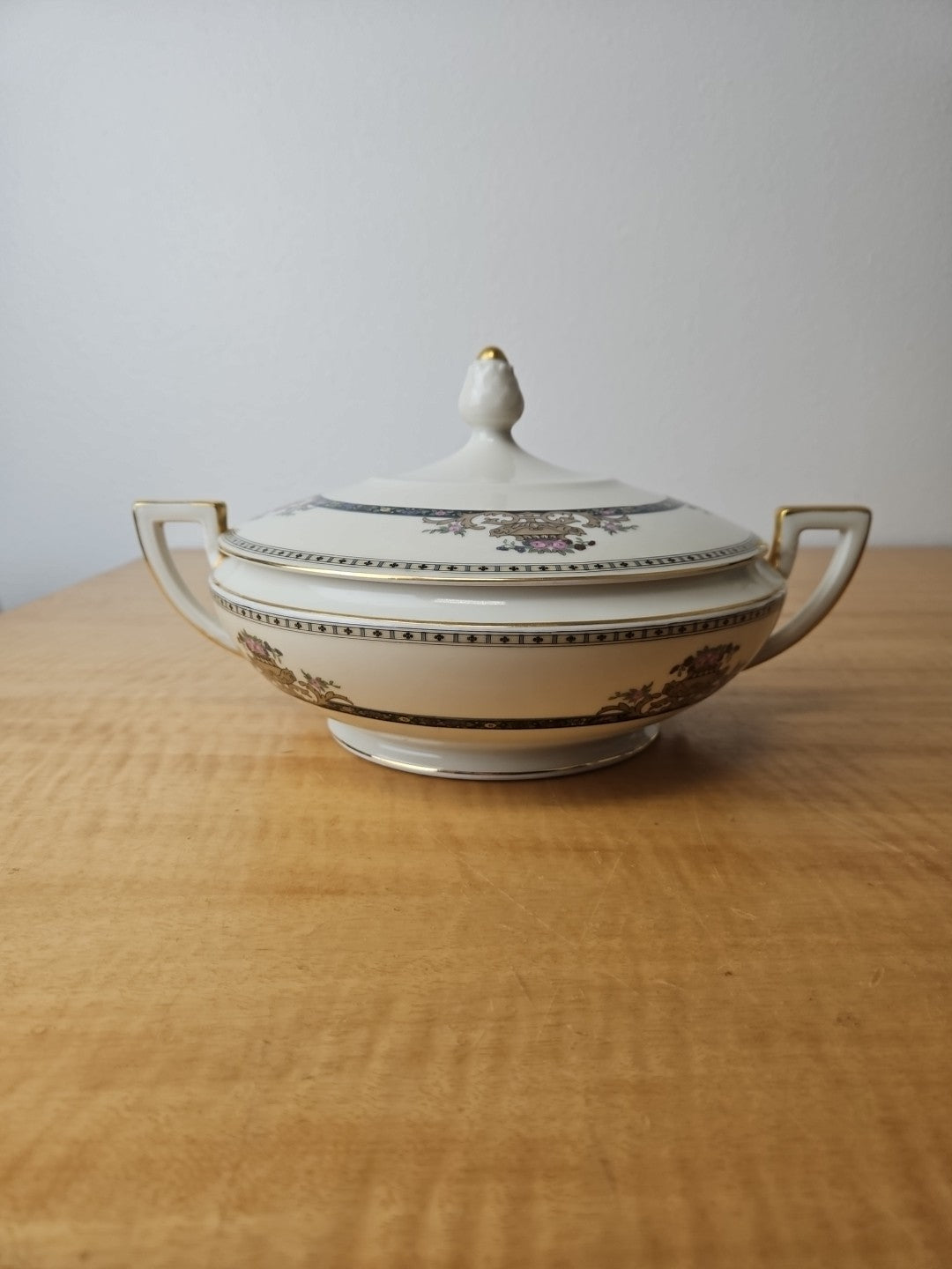Aladdin by Pirkenhammer Oval Covered Vegetable Bowl Cream Body Black Band Floral