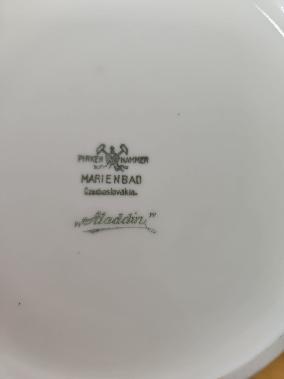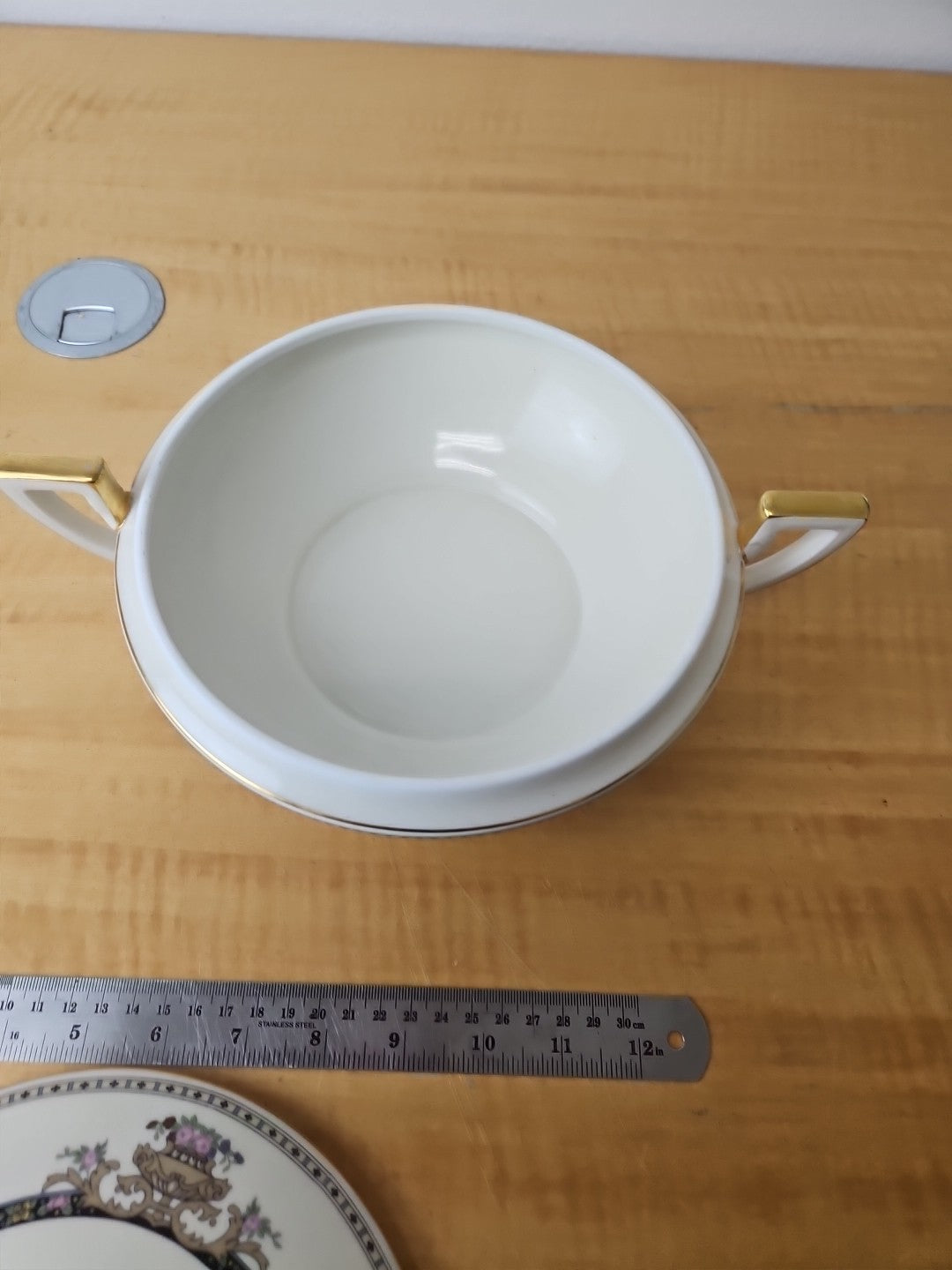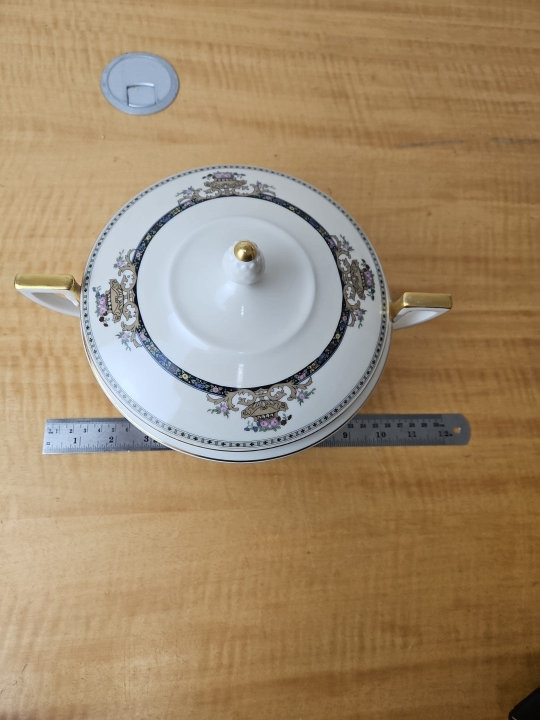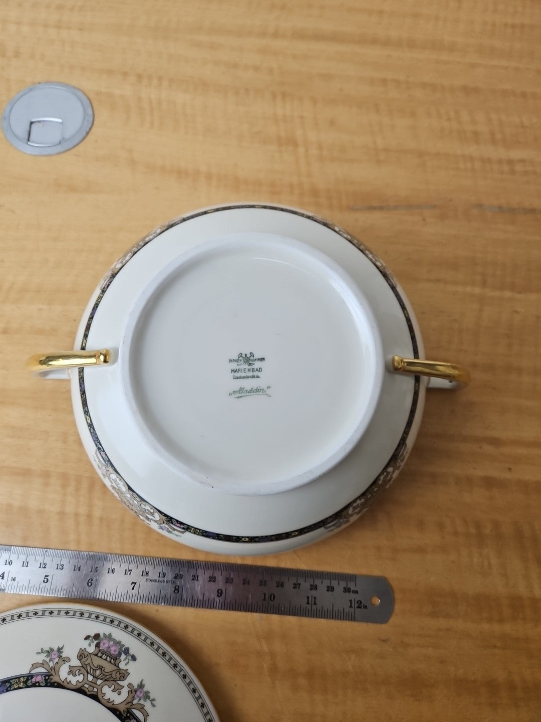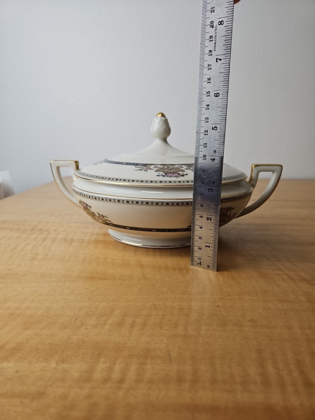 Aladdin by Pirkenhammer Oval Covered Vegetable Bowl Cream Body Black Band Floral