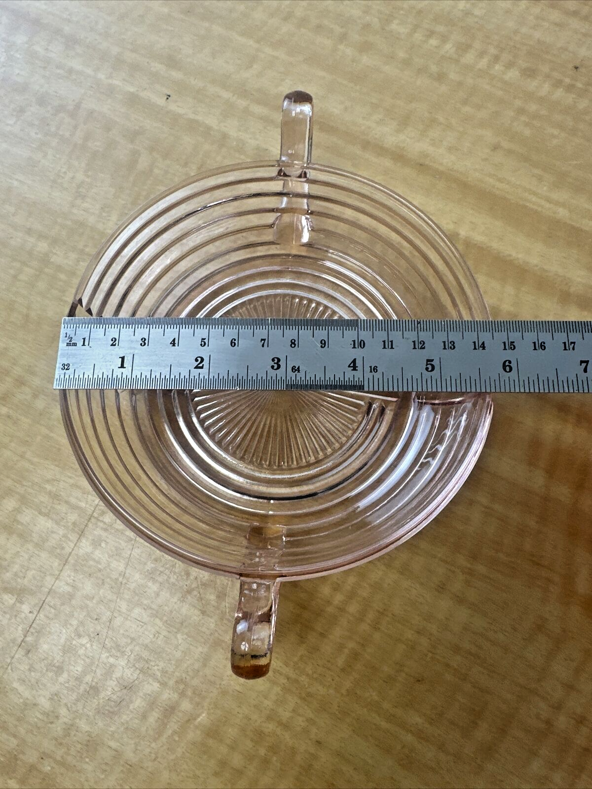 Anchor Hocking Manhattan Pink Depression Glass Ribbed Art Deco Handled Dish