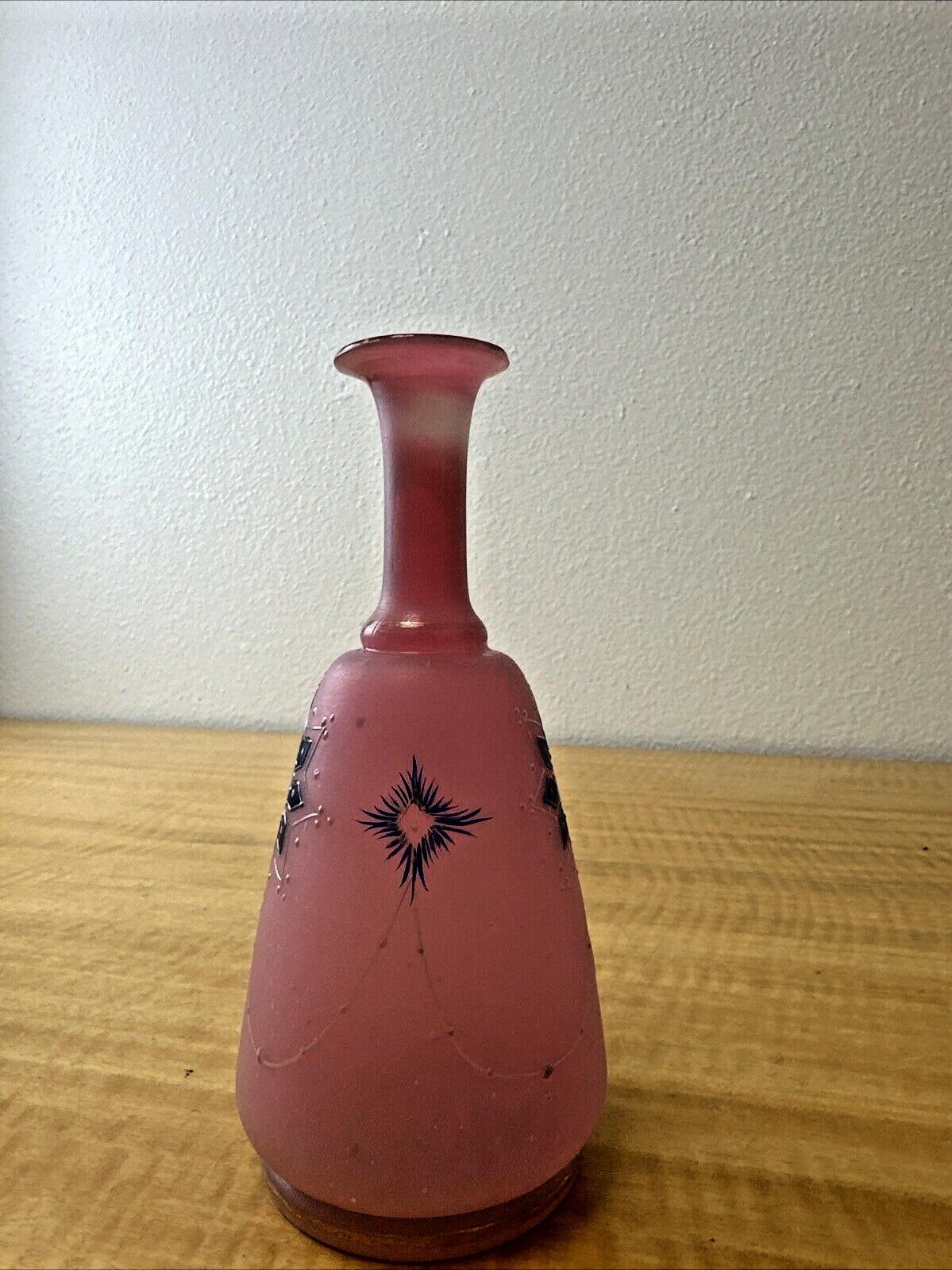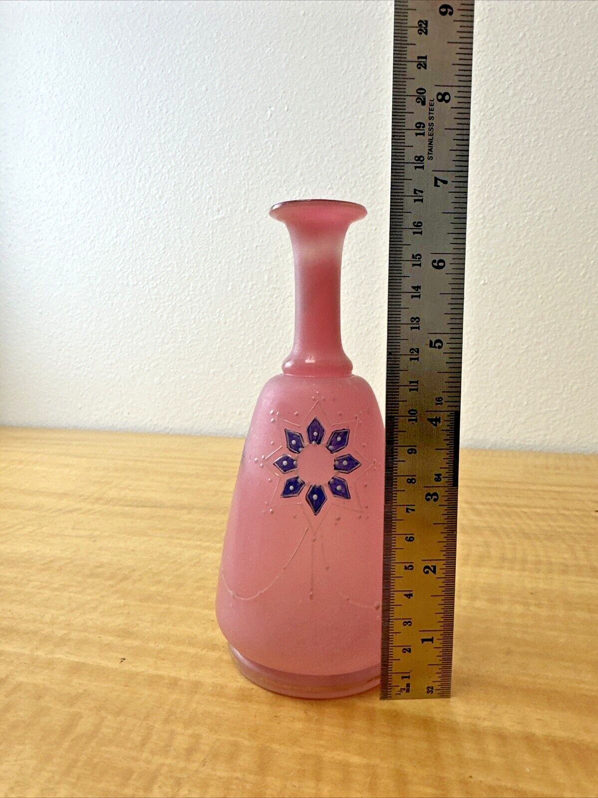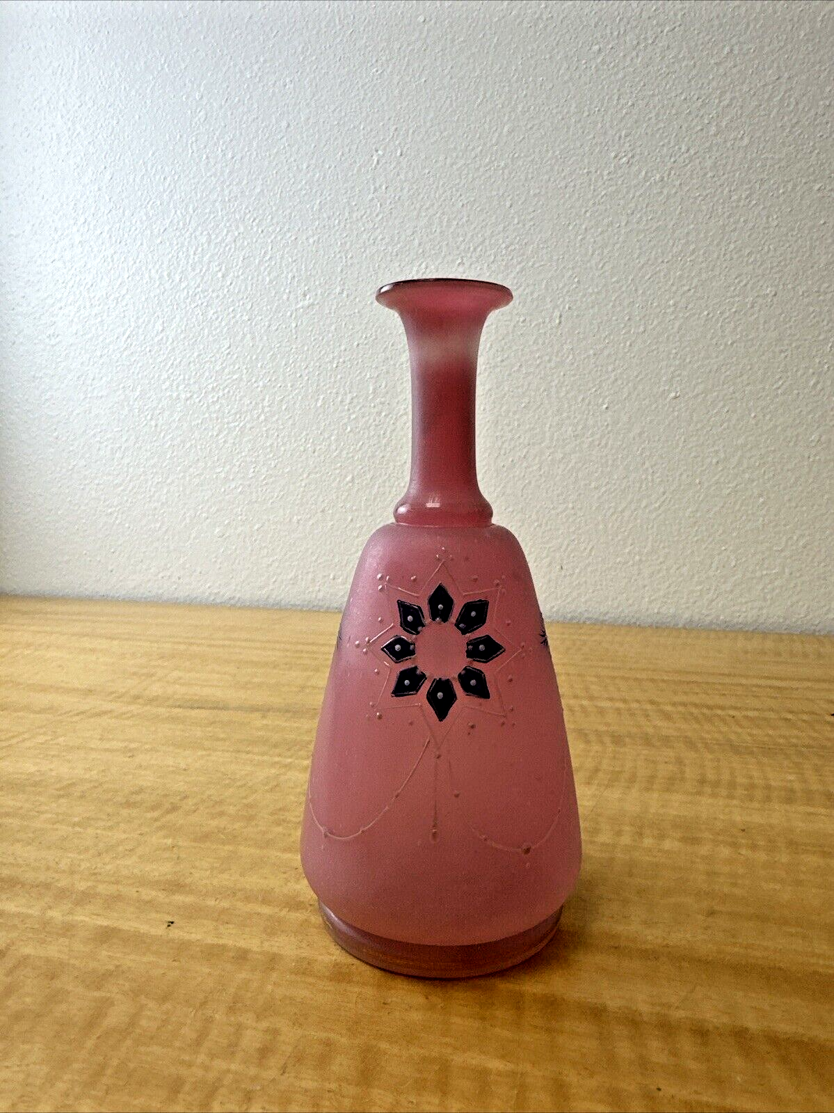Antique 1880’s Pink Hand Blown Glass Floral Barbershop Bottle Pontil Marked Rare