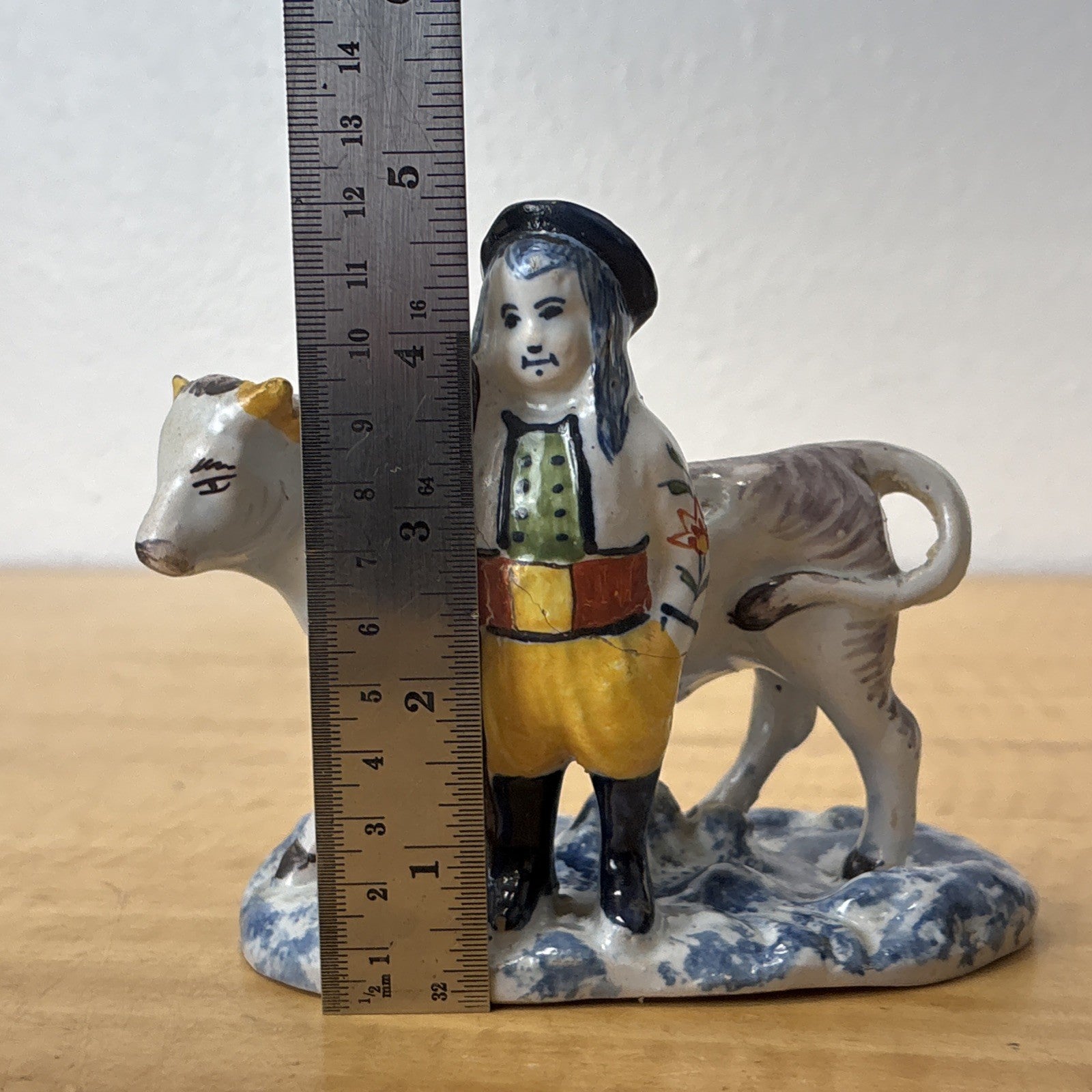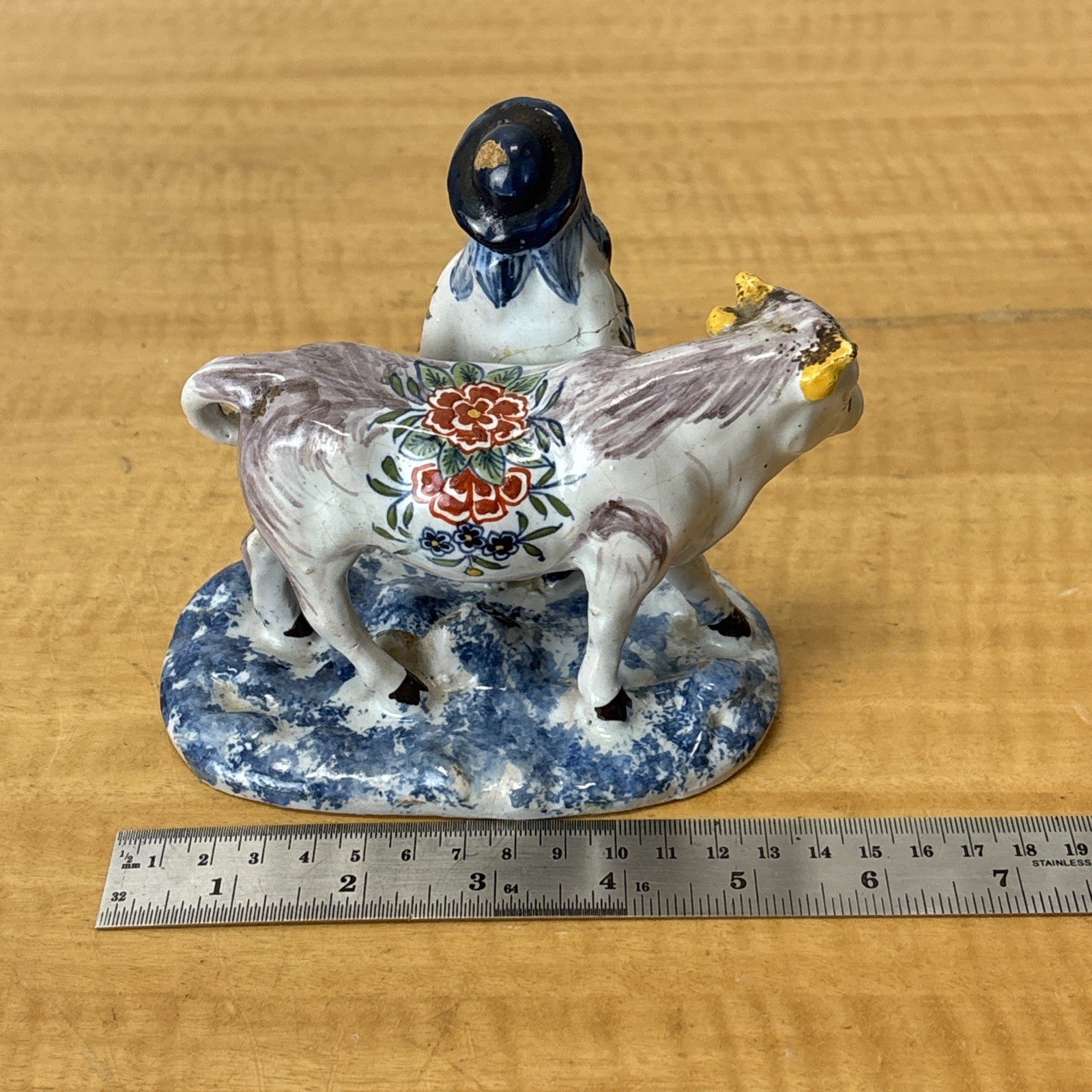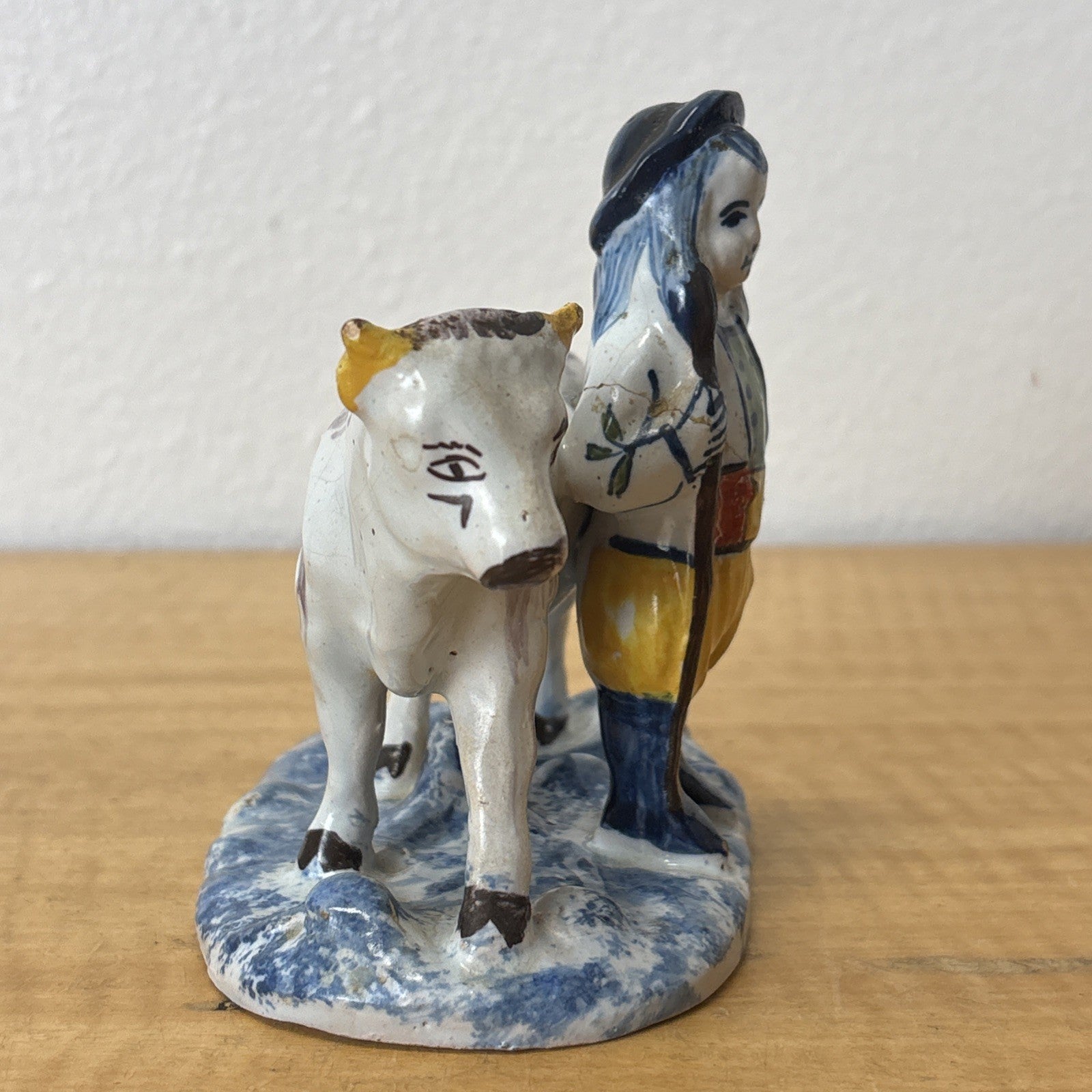 Antique 18th Century Delftware Cow and Boy Figurine Signed IHF