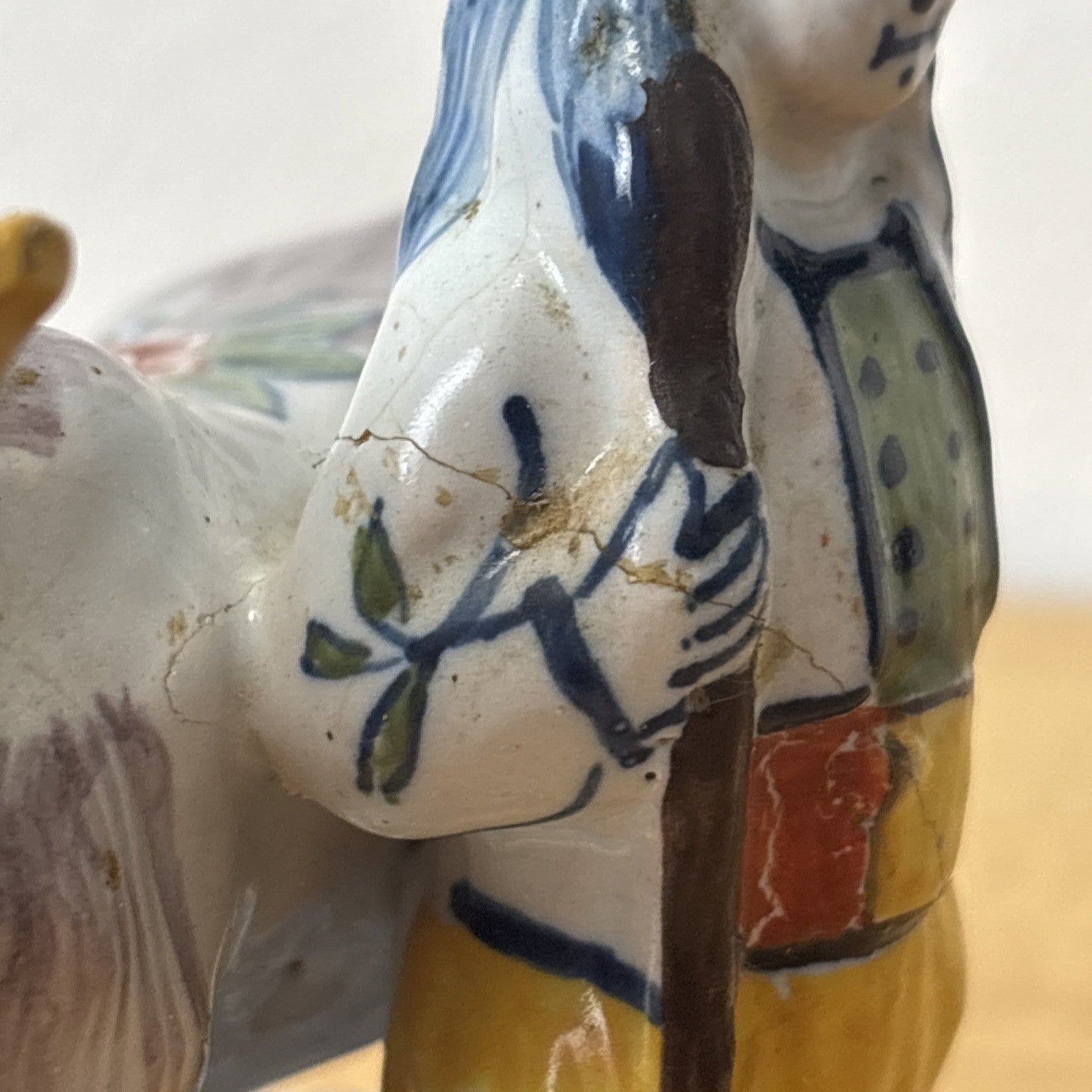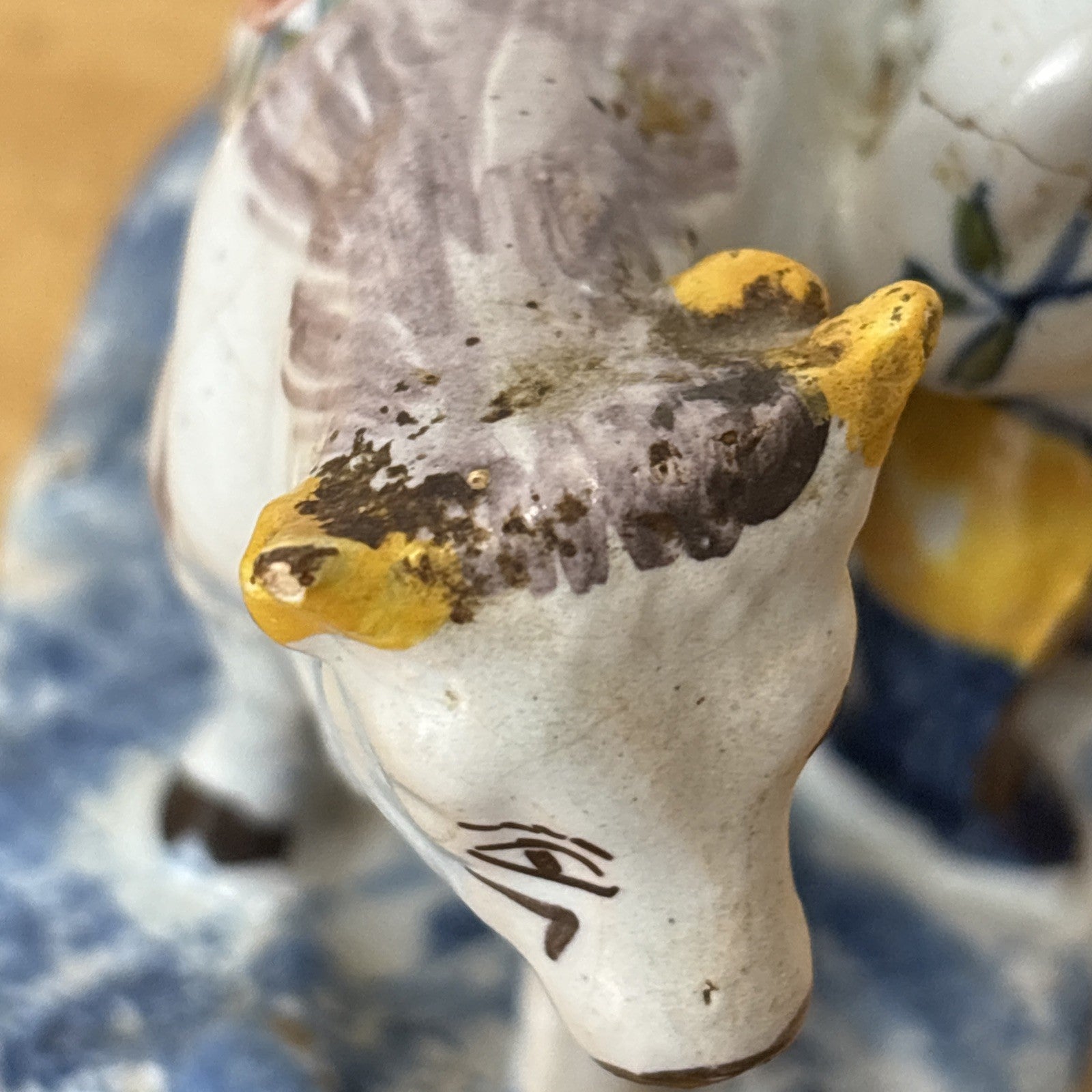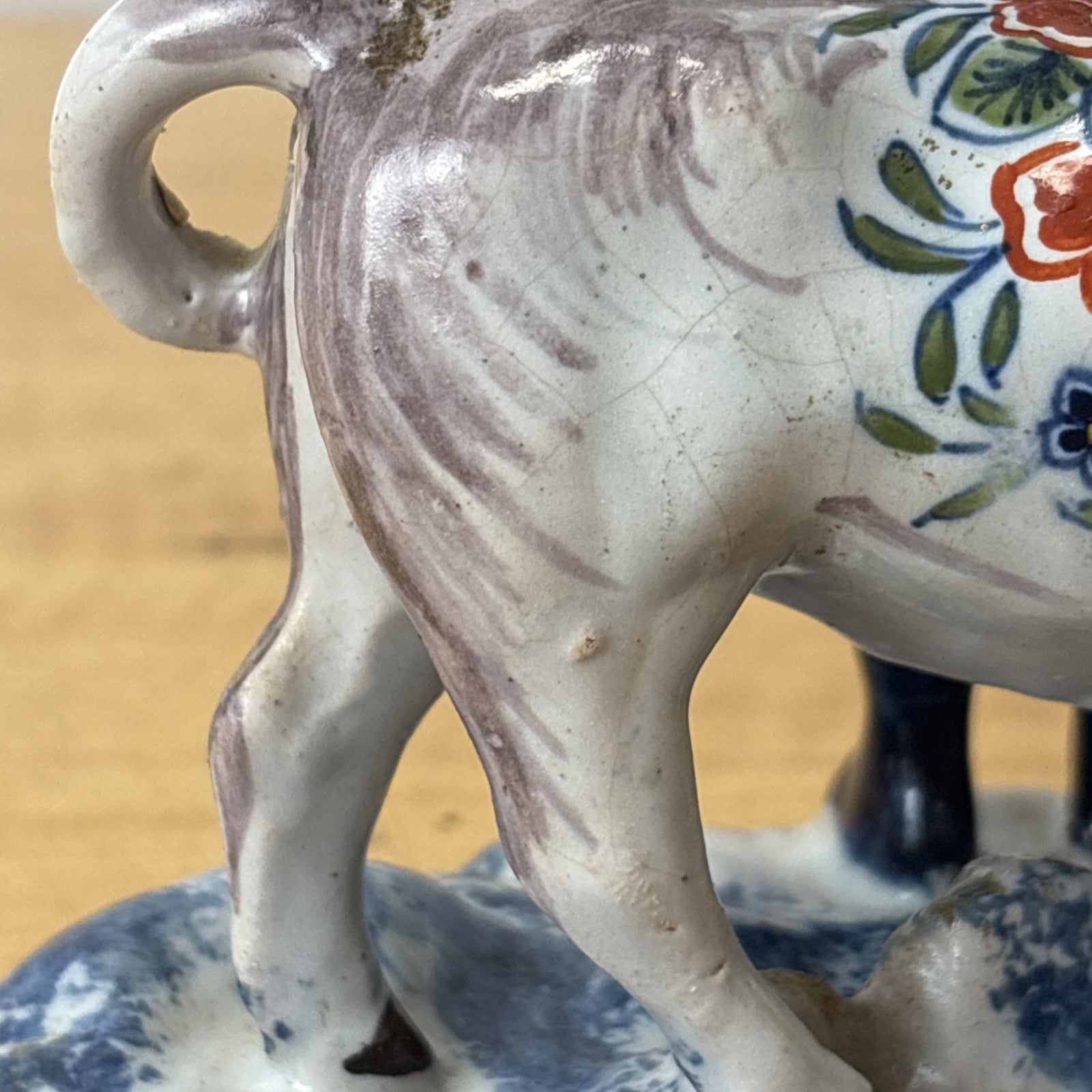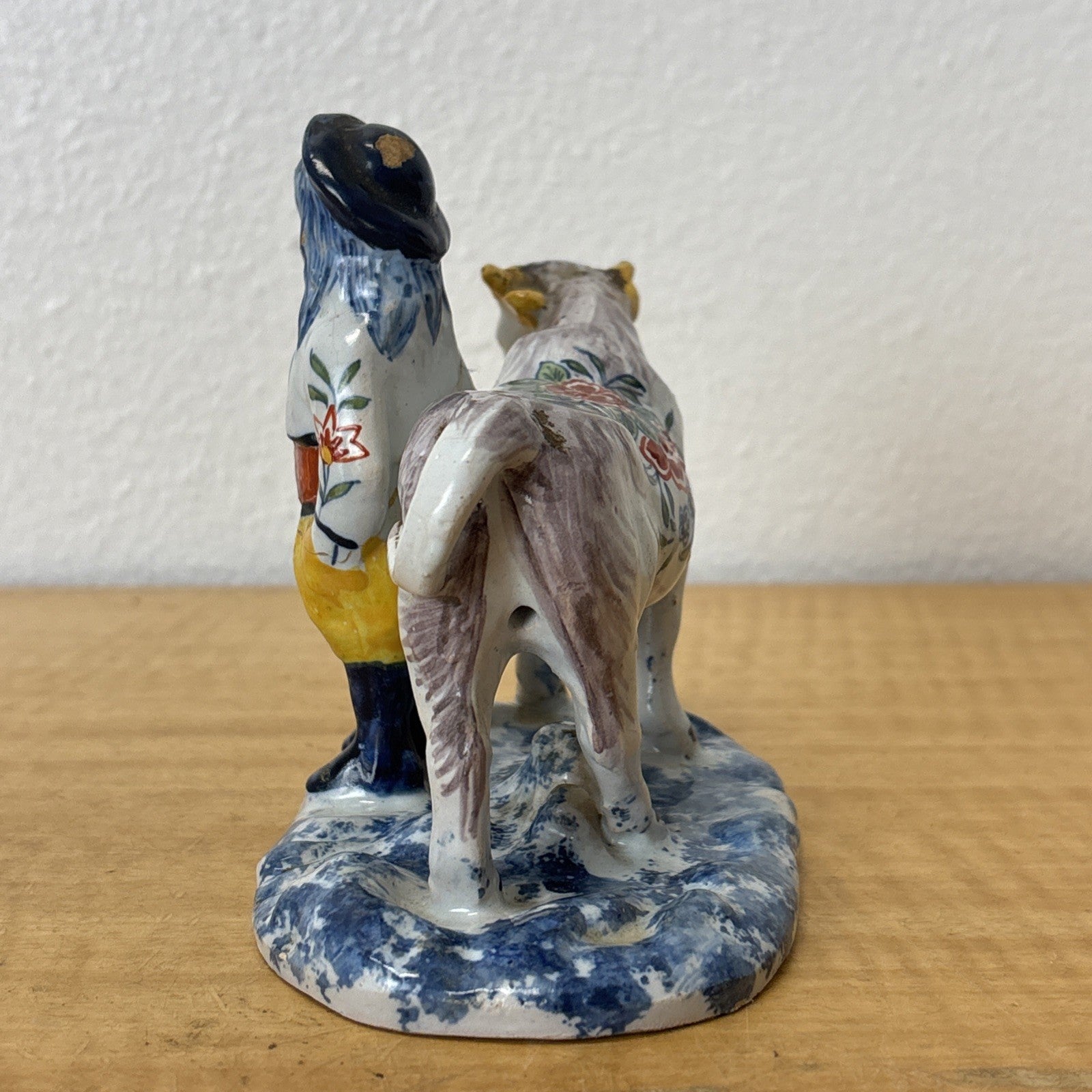 Antique 18th Century Delftware Cow and Boy Figurine Signed IHF