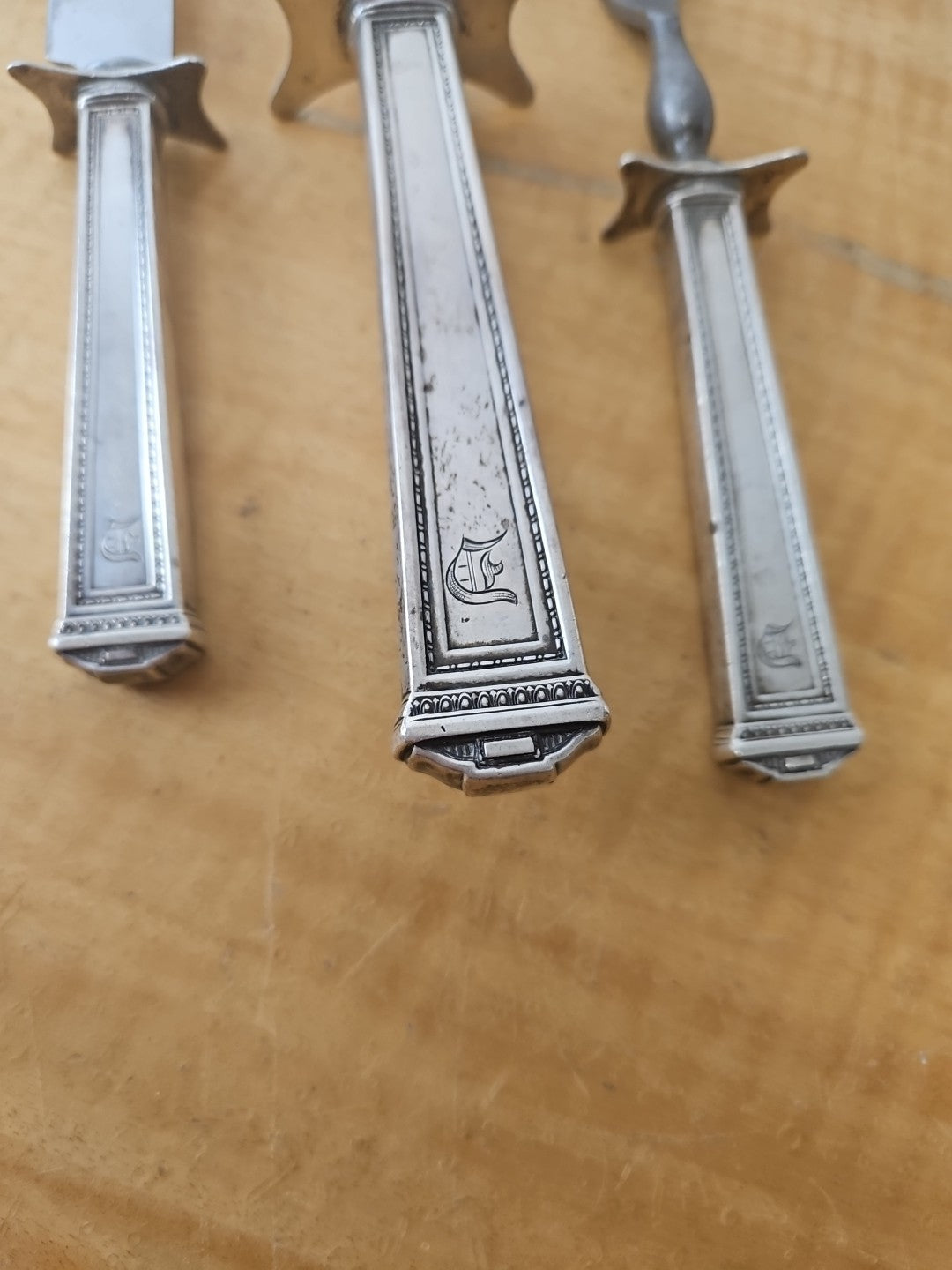 Antique 3-Piece Sterling Silver Handles Carving Set (Insico Stainless on Knife)