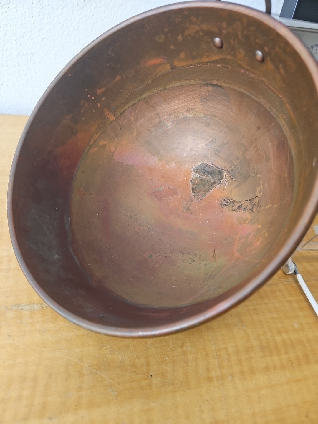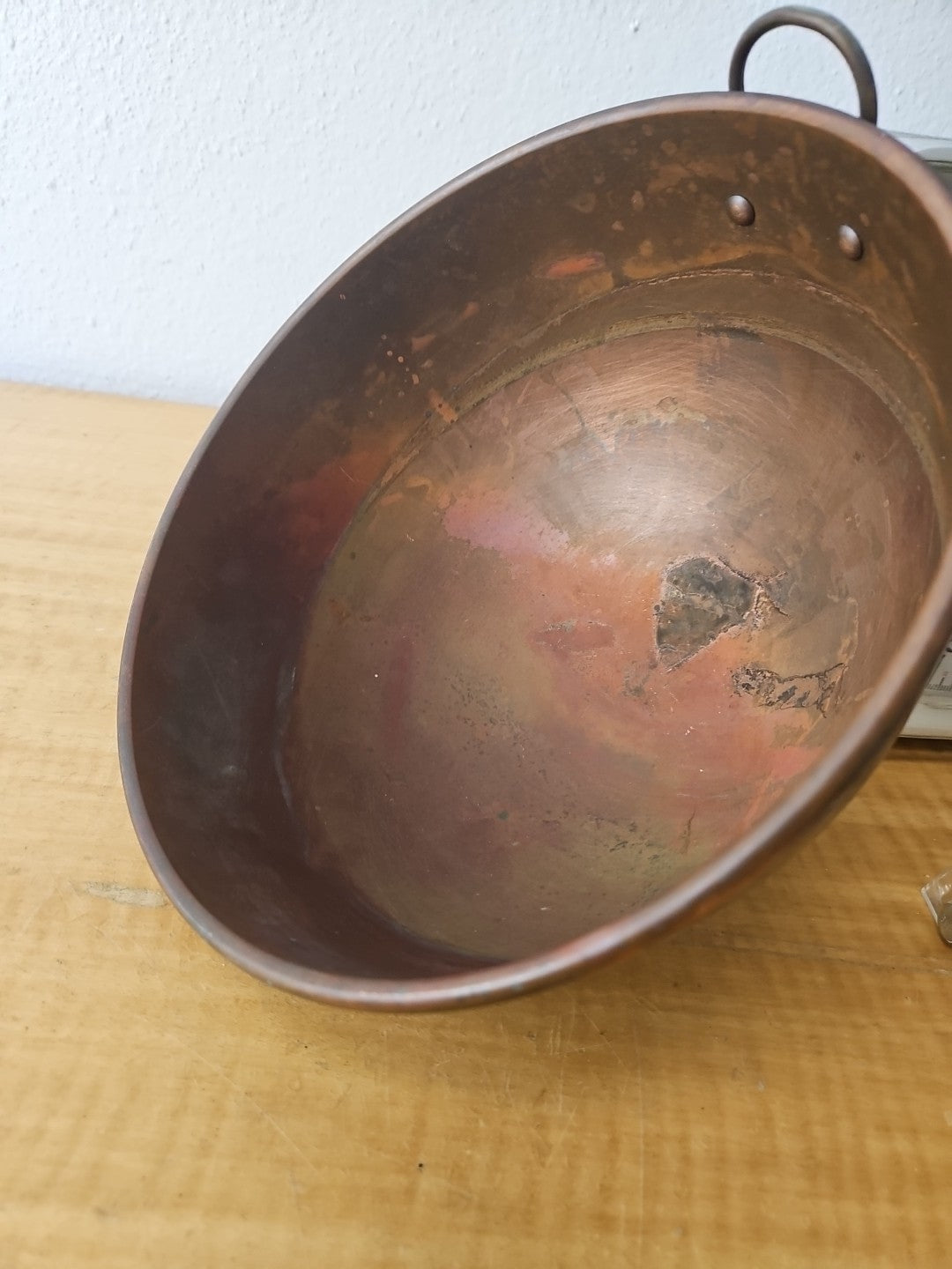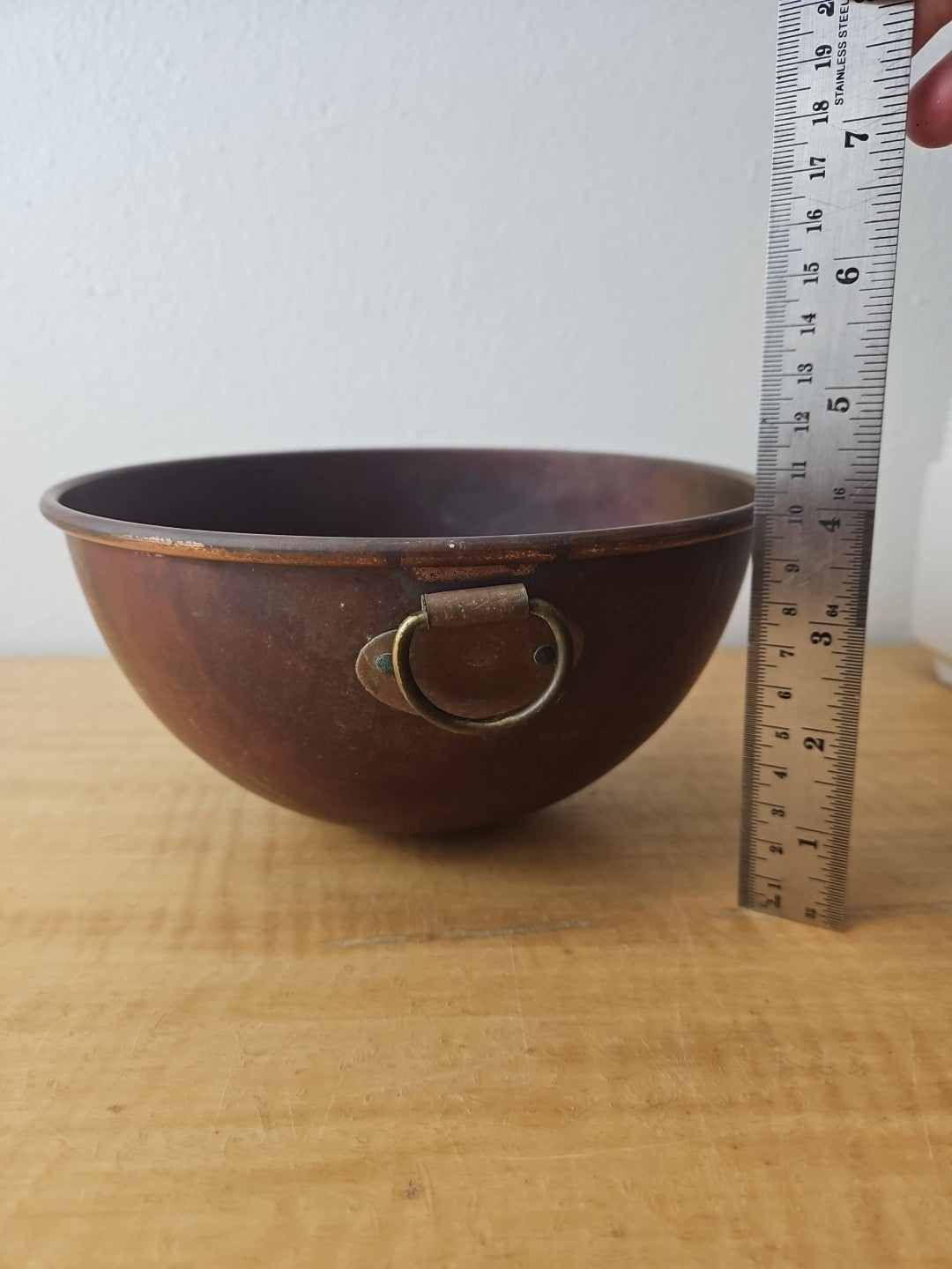 Antique Copper Rolled Rim Mixing Bowl 8 1/2 inch with Thumb Ring