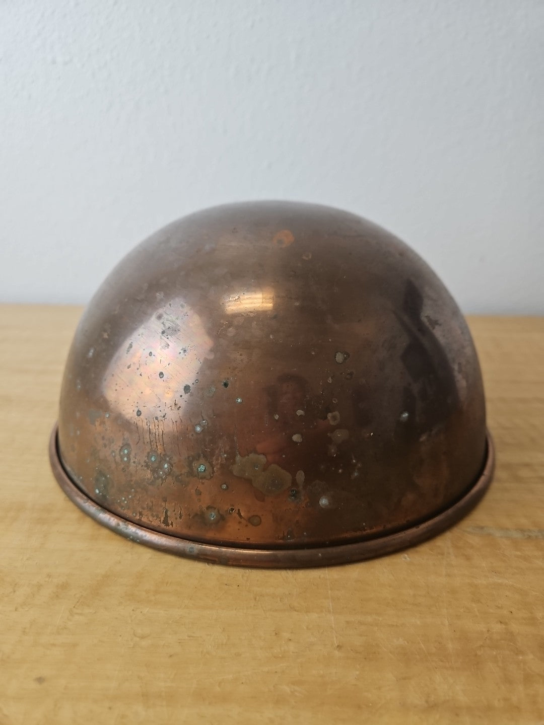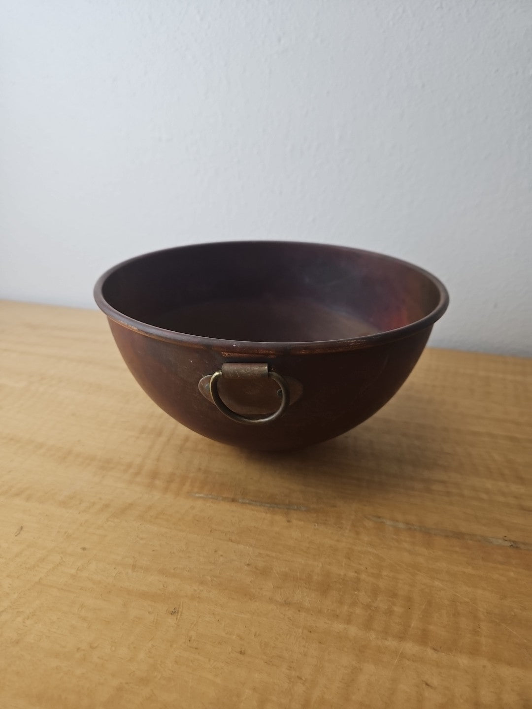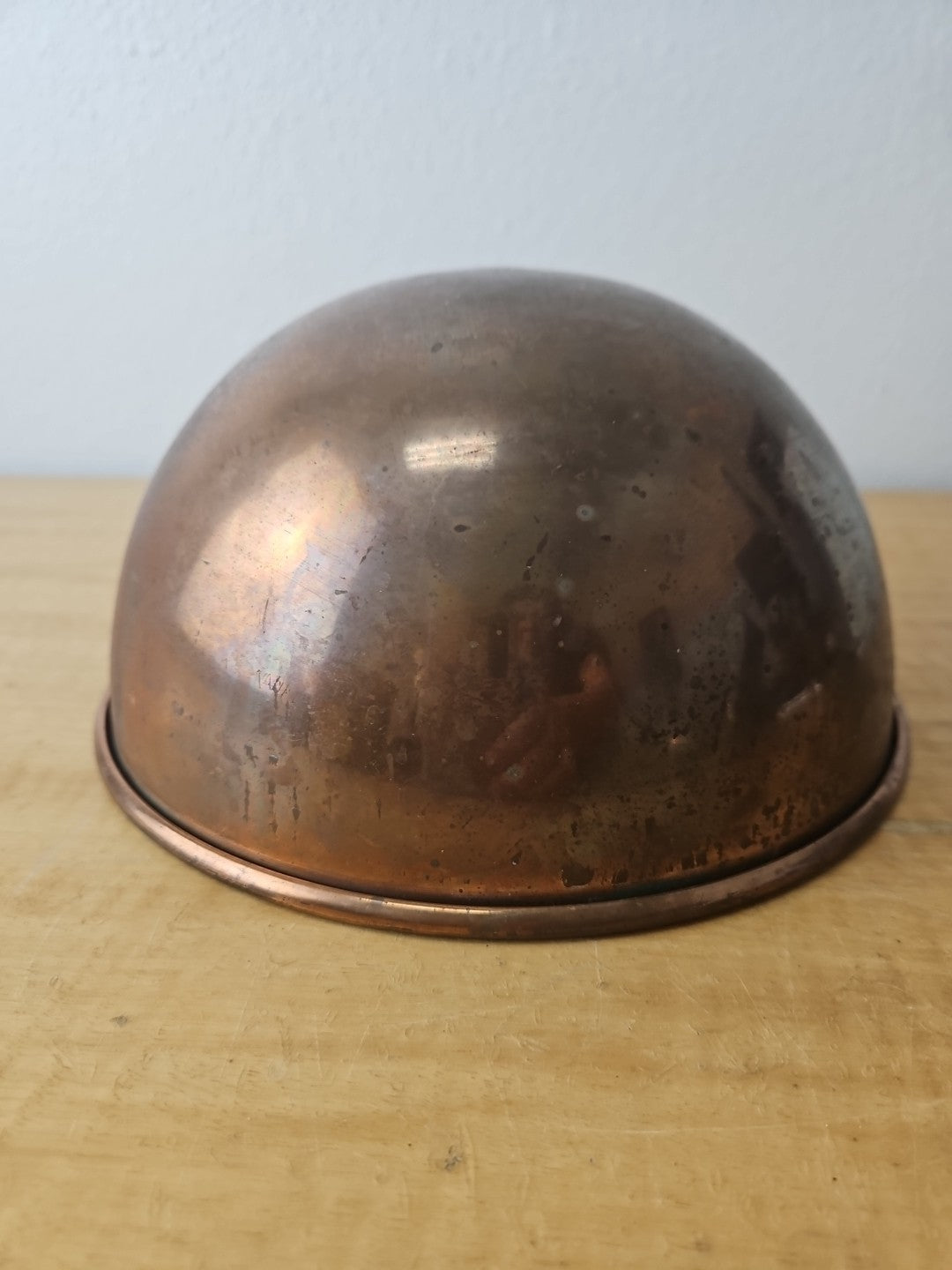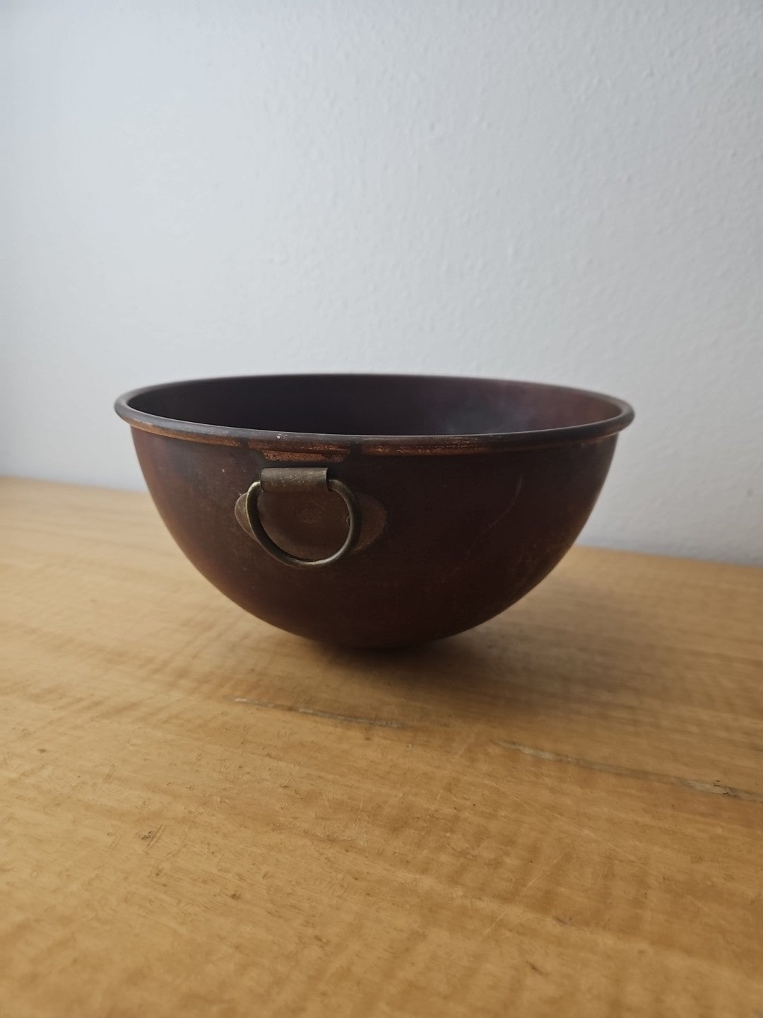 Antique Copper Rolled Rim Mixing Bowl 8 1/2 inch with Thumb Ring
