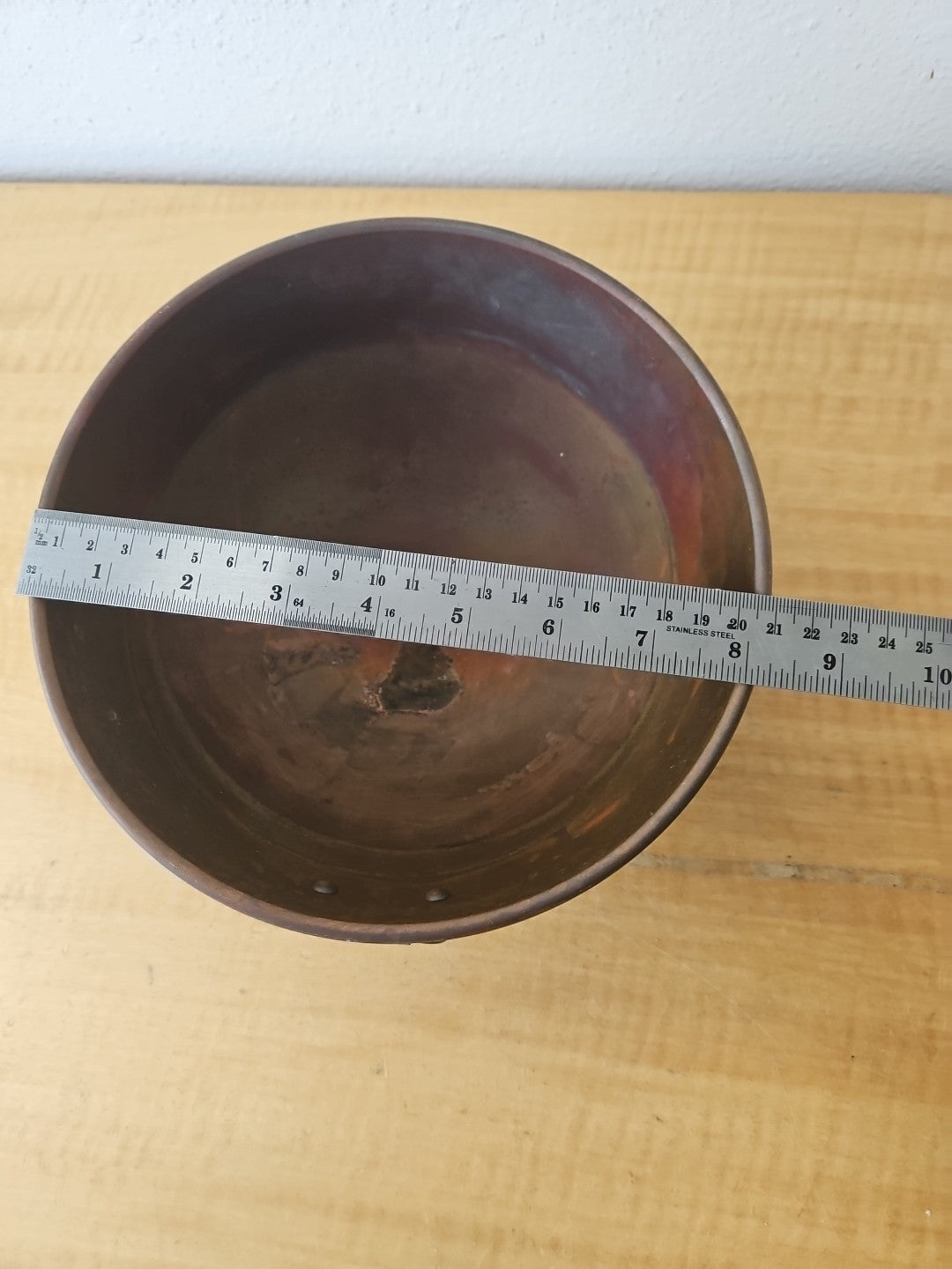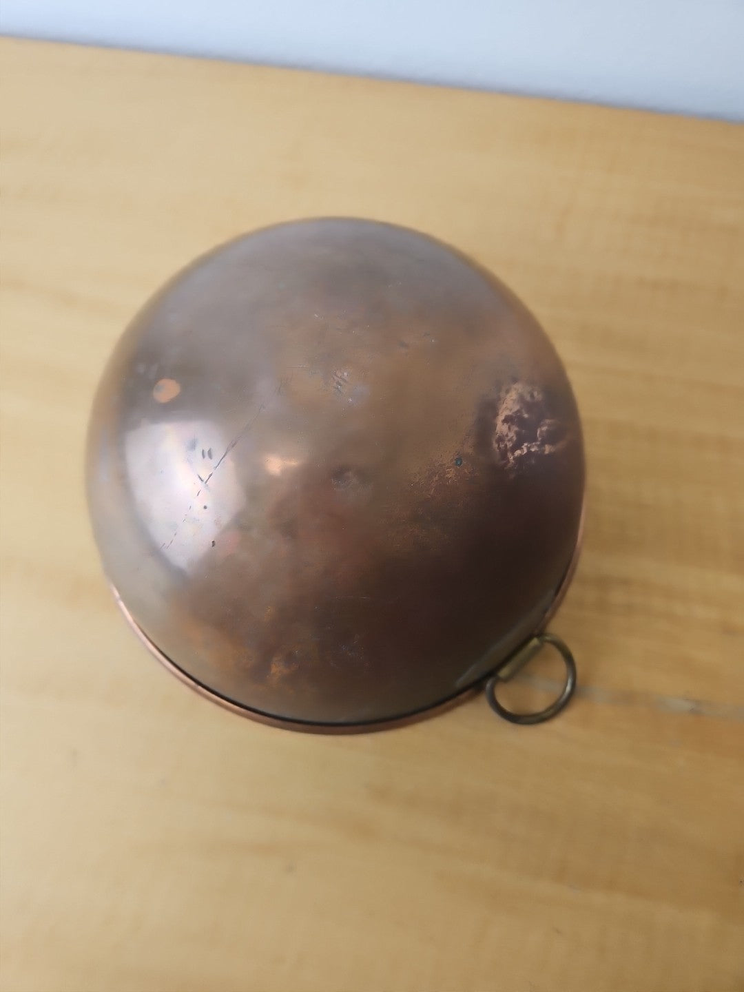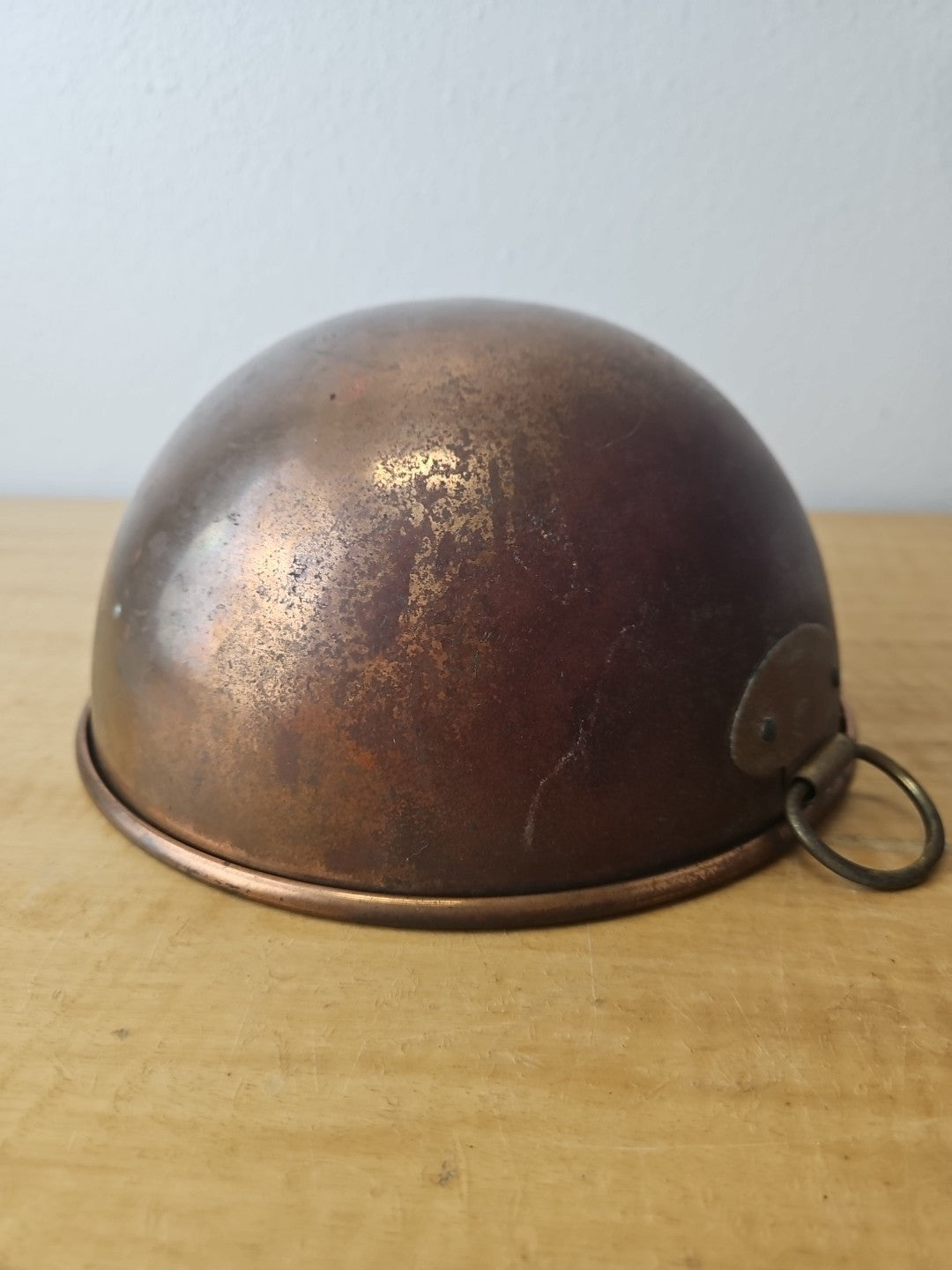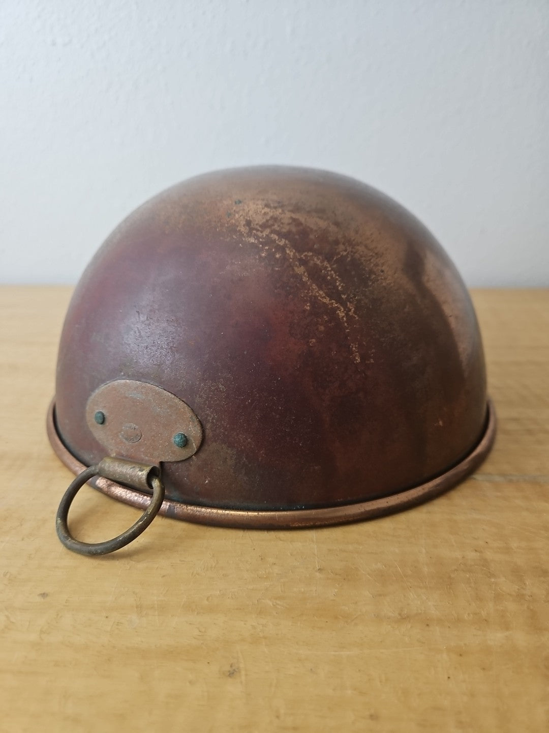 Antique Copper Rolled Rim Mixing Bowl 8 1/2 inch with Thumb Ring