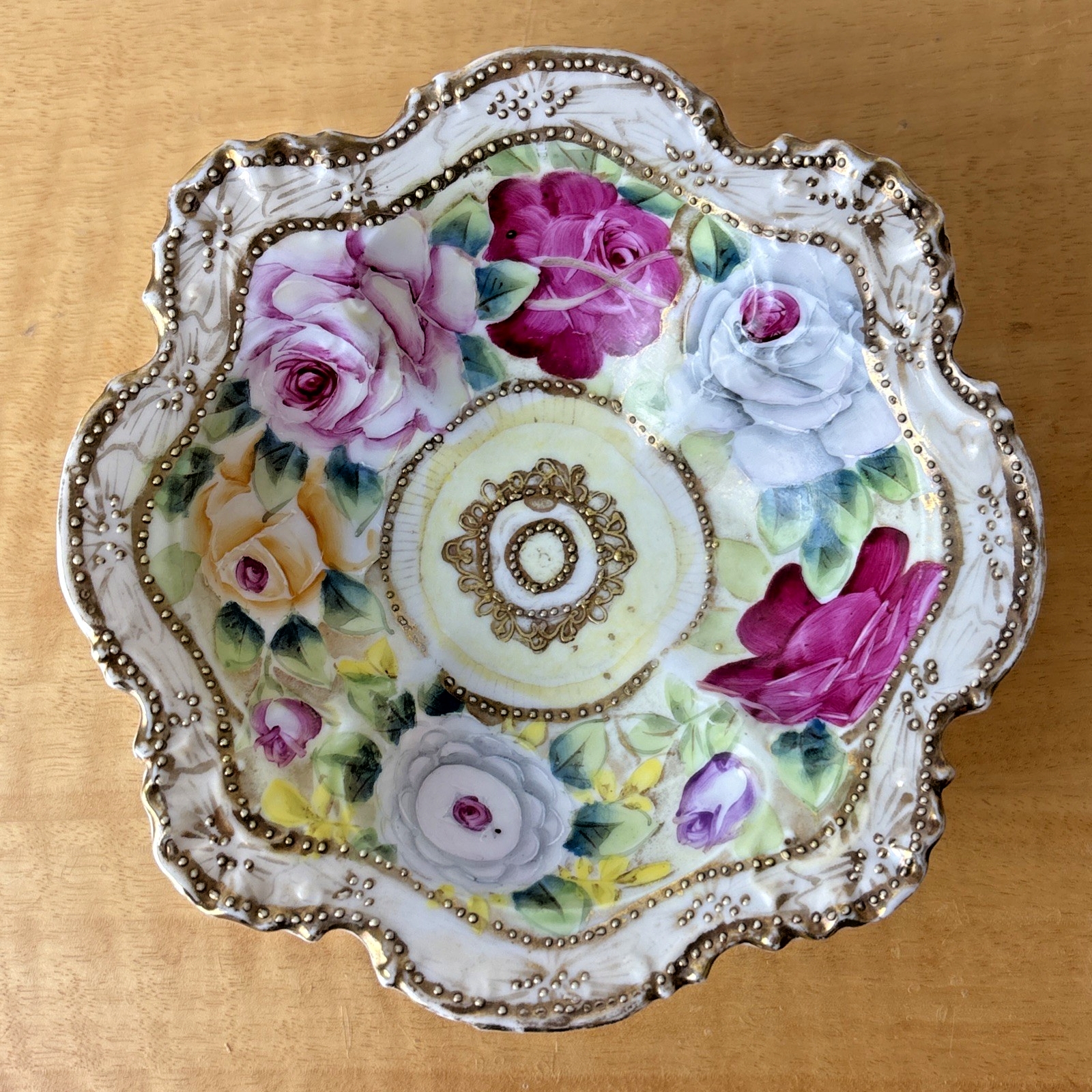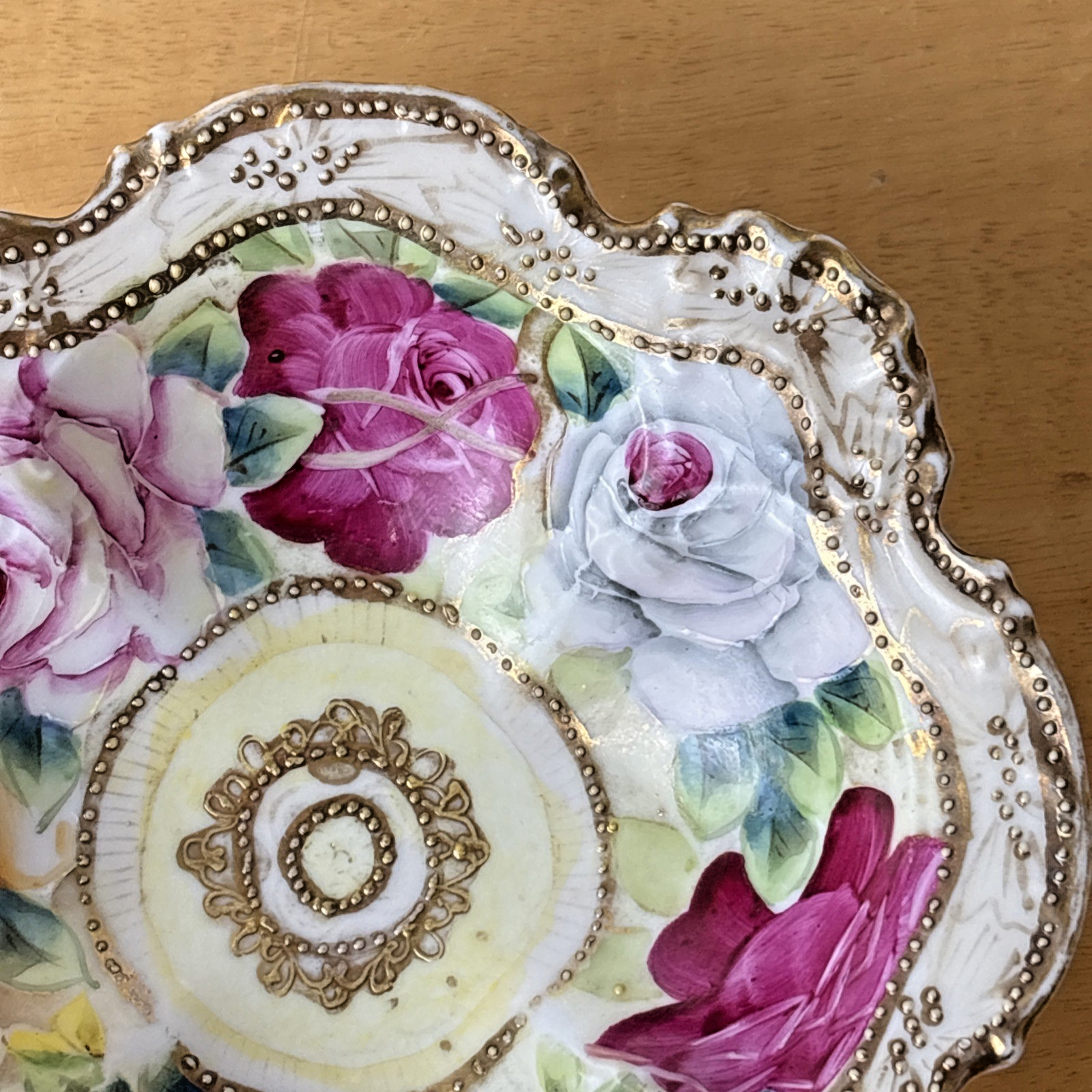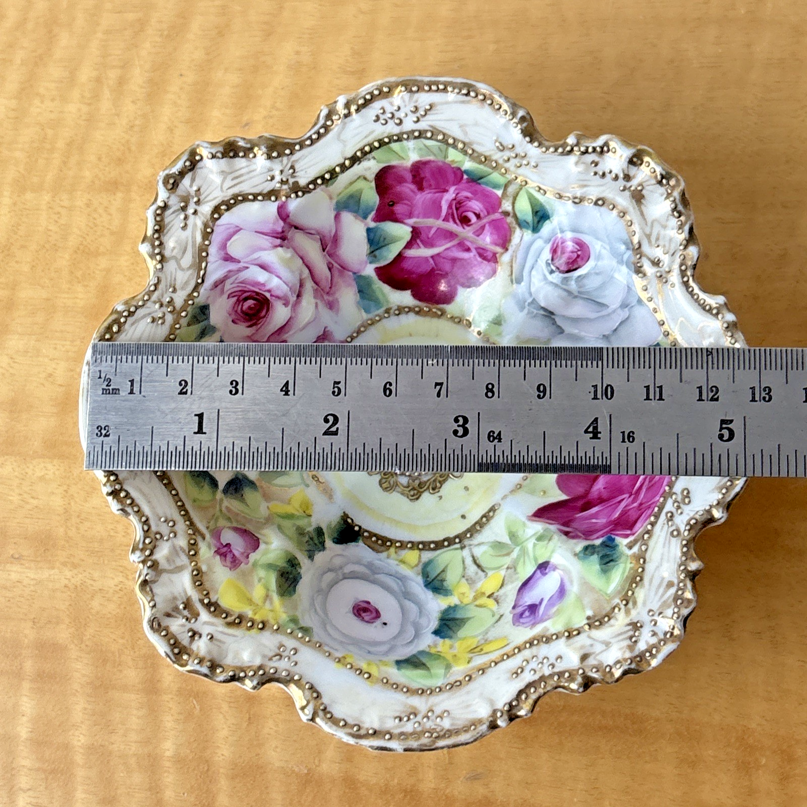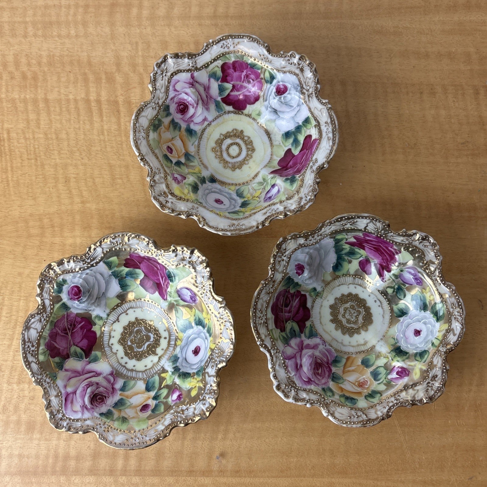 Antique Hand Painted Nippon Maple Leaf Blue Mark Floral Bowl Dish ( 3 Avail )