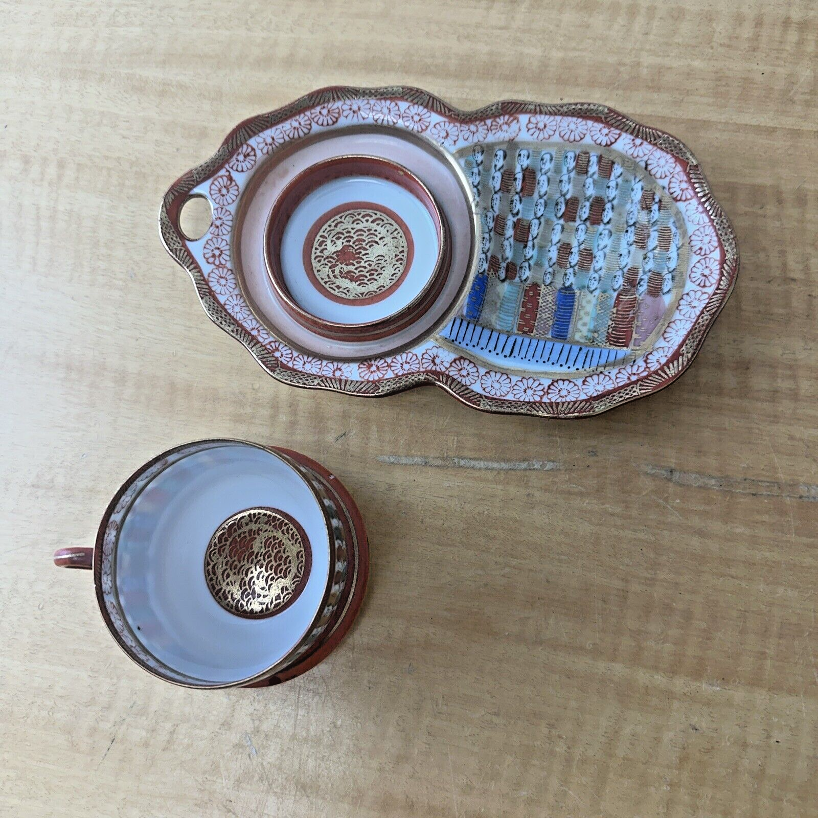 Antique Japanese Porcelain Teacups & Snack Plates