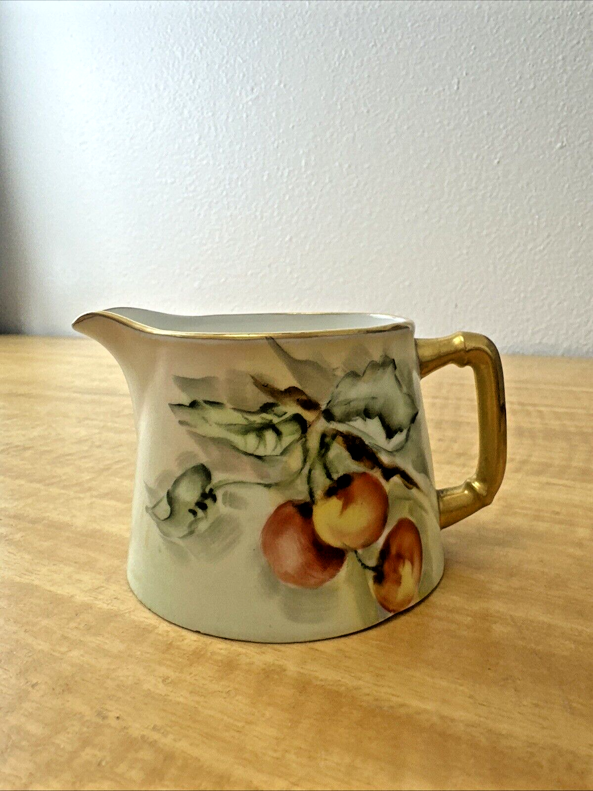 Antique Limoges Hand Painted Cherry Creamer with Gilt Handle