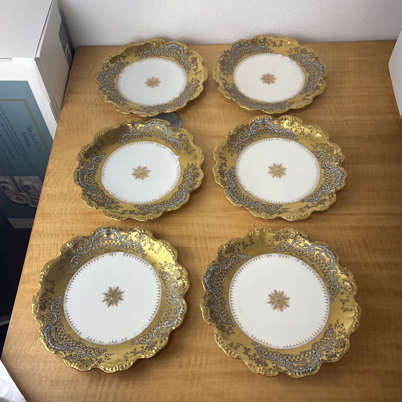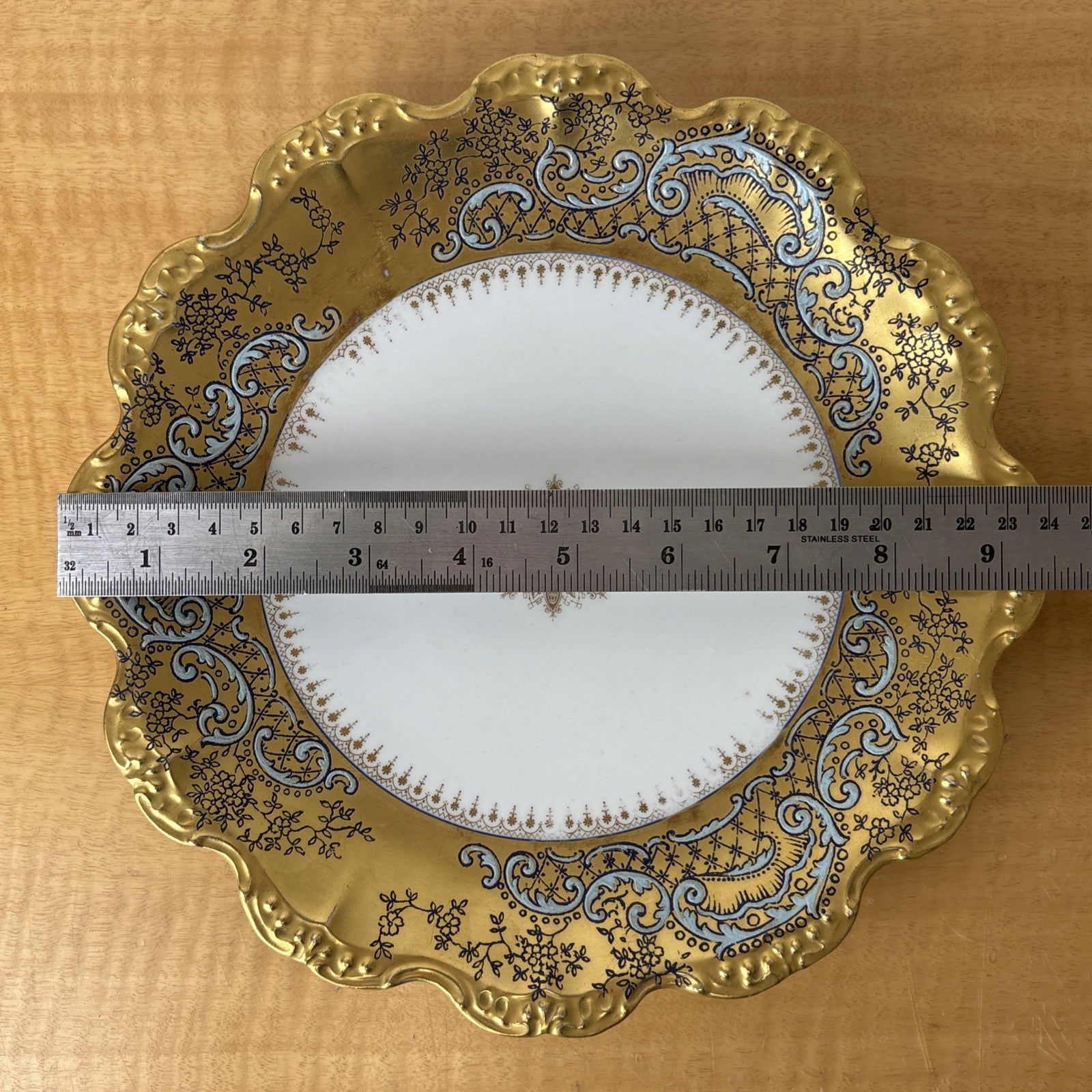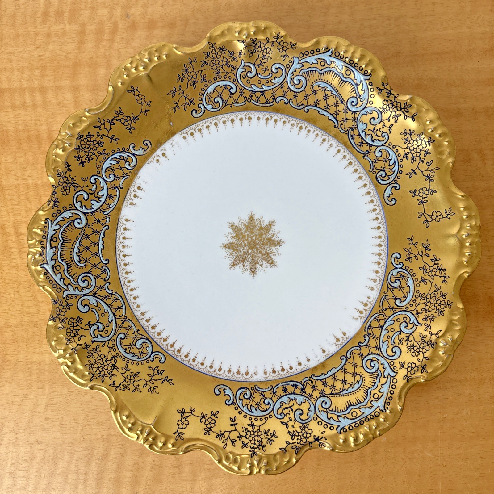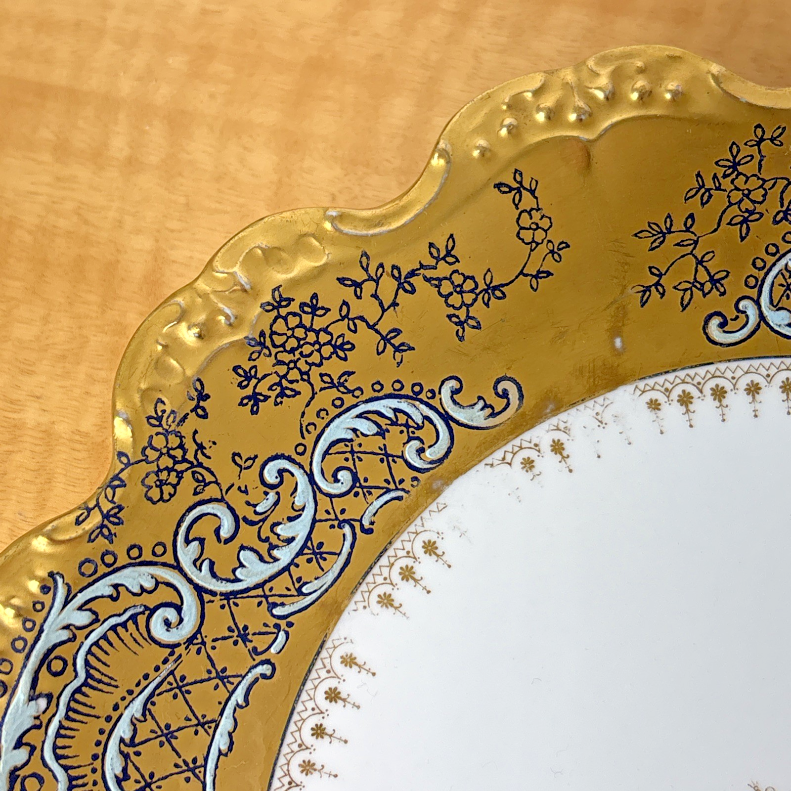 Antique LS & S Limoges Medallion Heavy Gilt Plate Turquoise Black Penwork