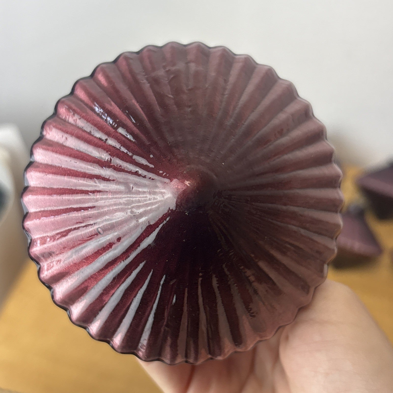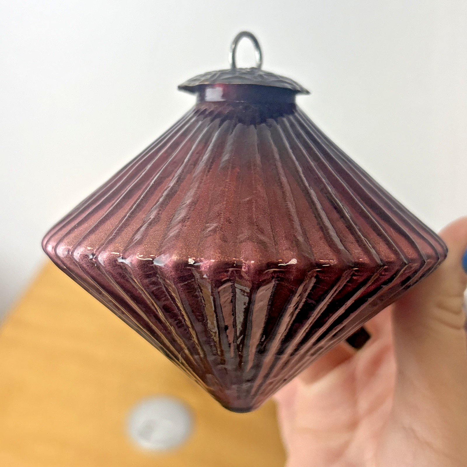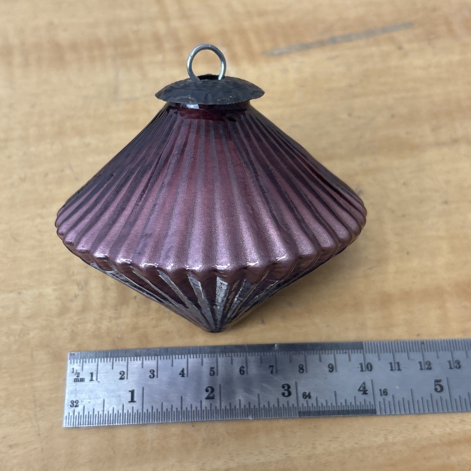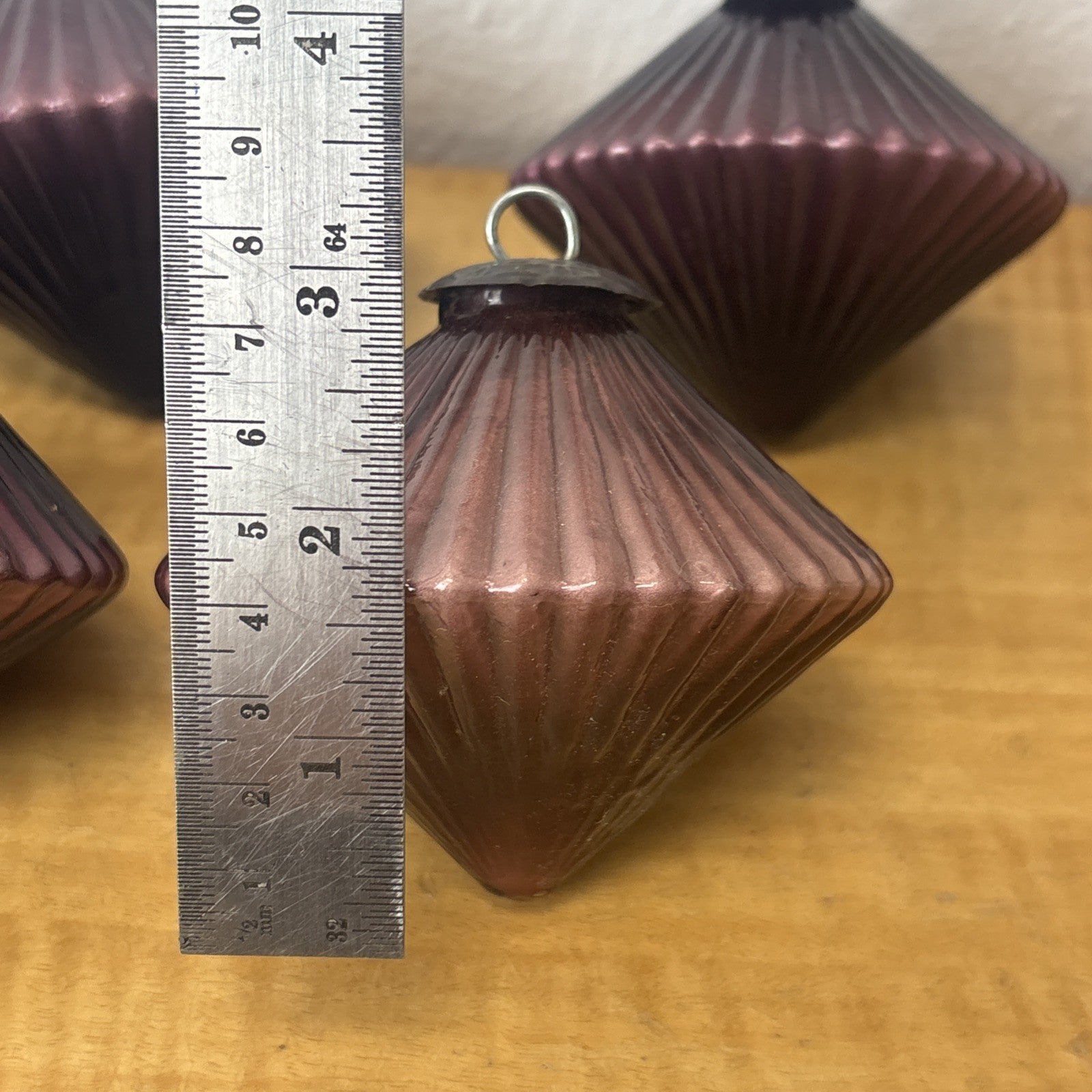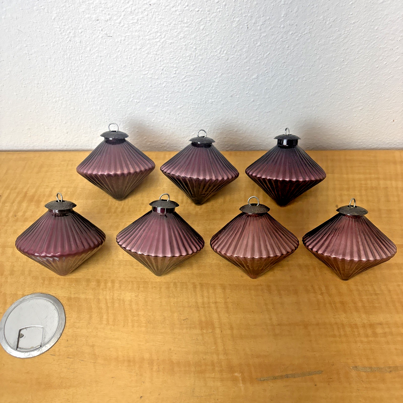 Antique Midwest Glass Kugel Ornament Heavy Ribbed Purple Set of 7