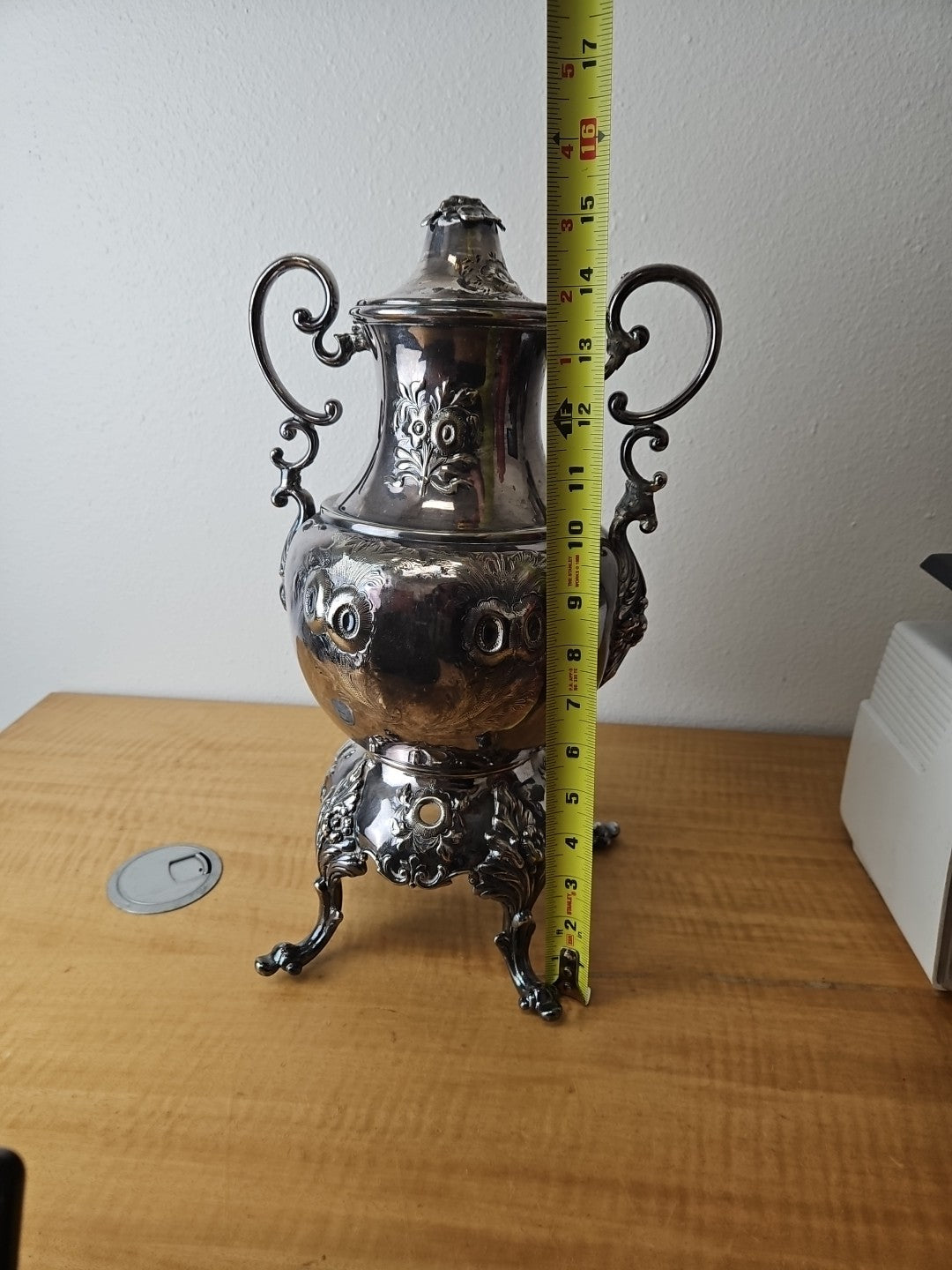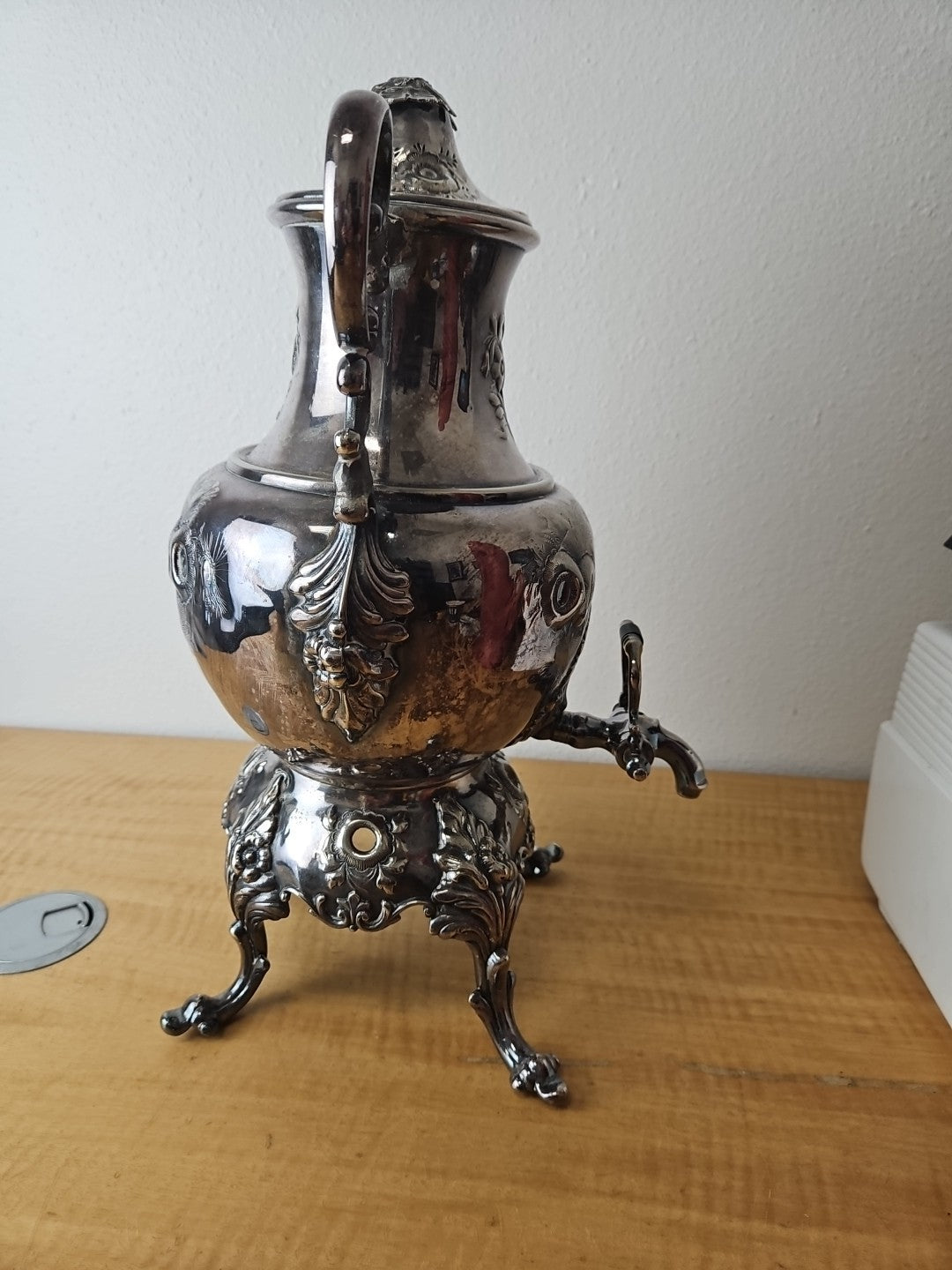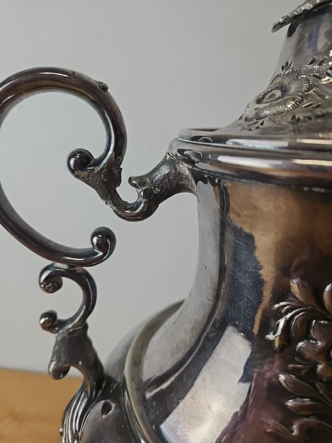 Antique Ornate Lidded Hot Water / coffee Silverplate Urn Server