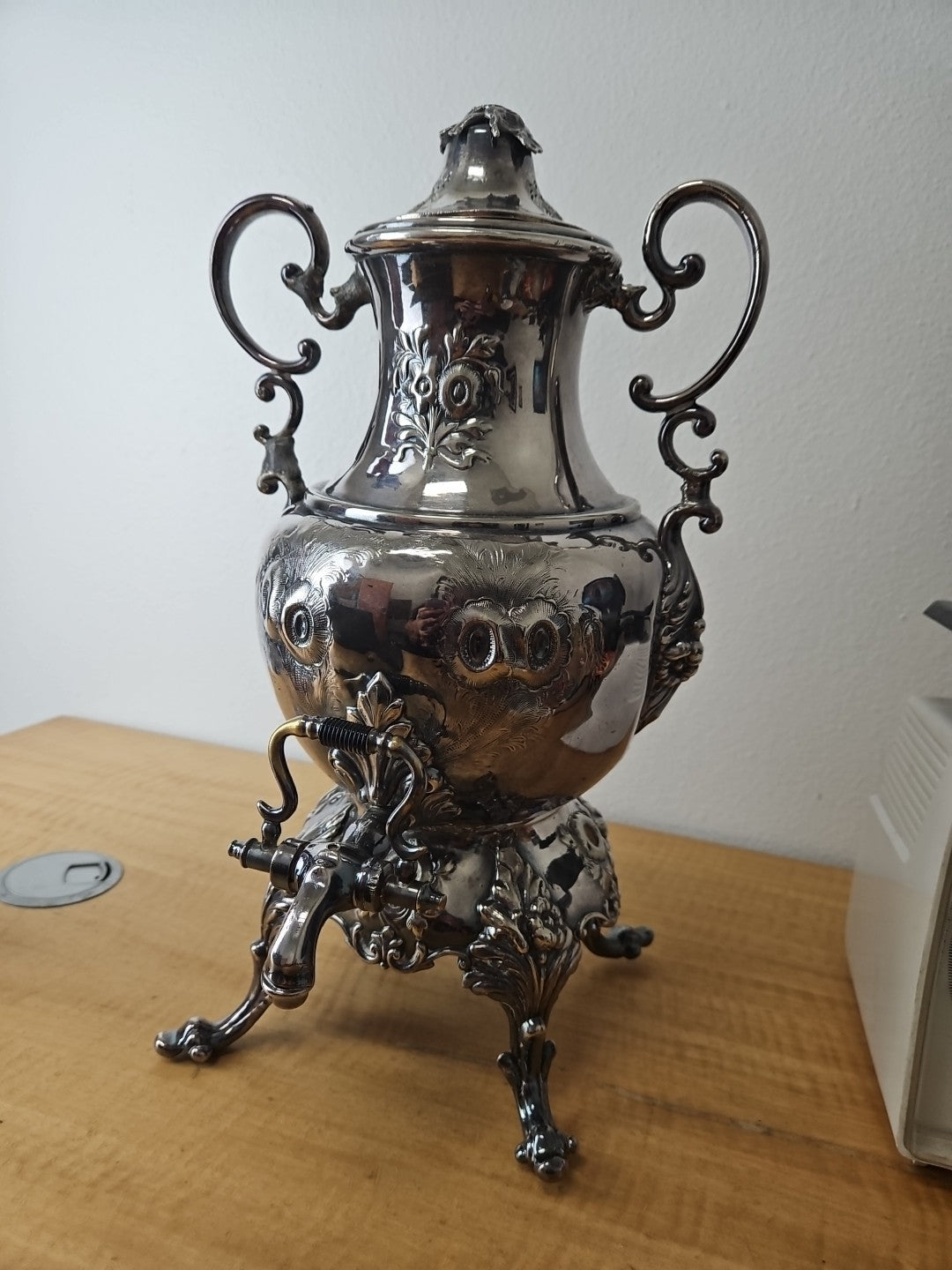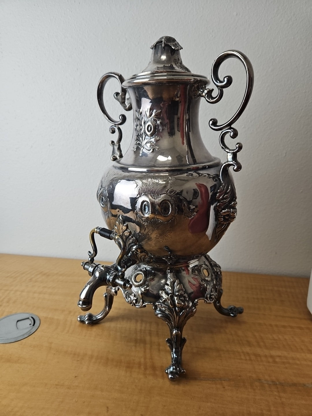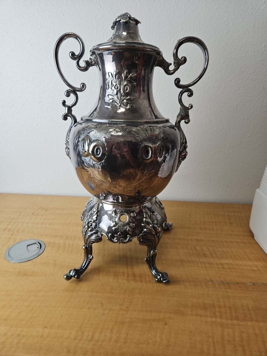 Antique Ornate Lidded Hot Water / coffee Silverplate Urn Server