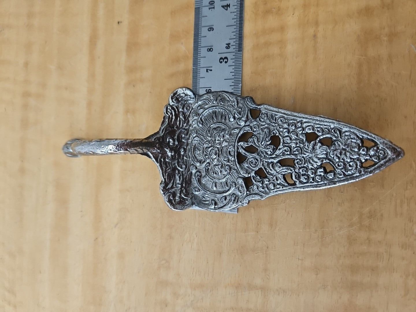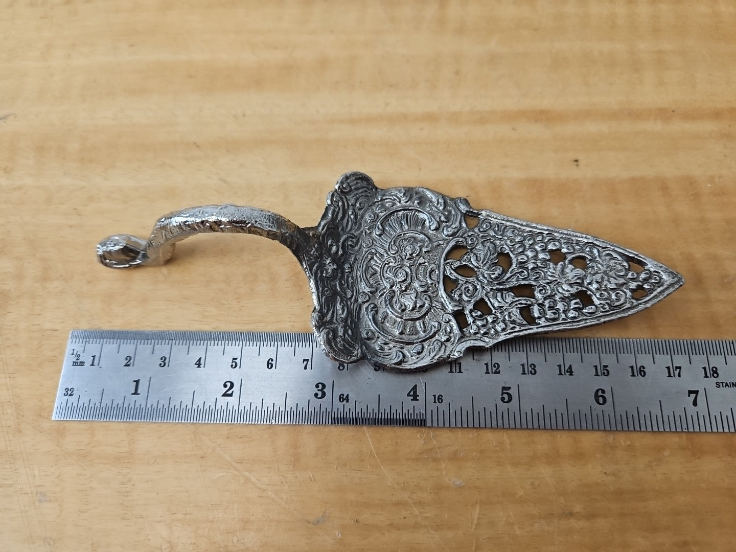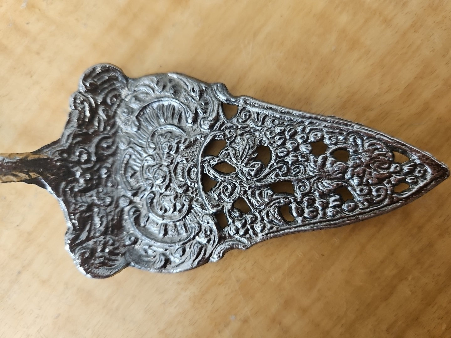 Antique Pierced Metal Cake Server with Mermaid Handle 6 1/2" x 2"