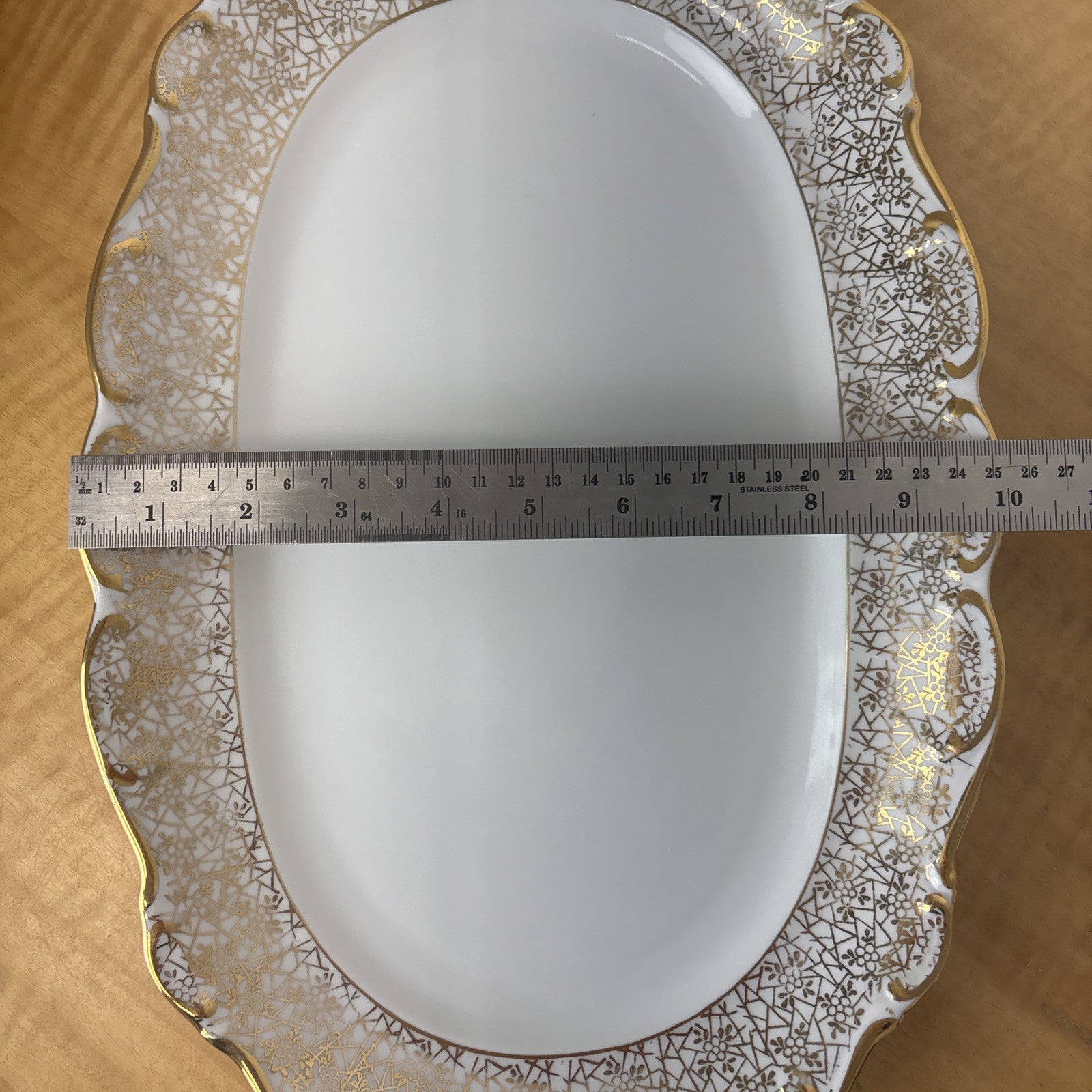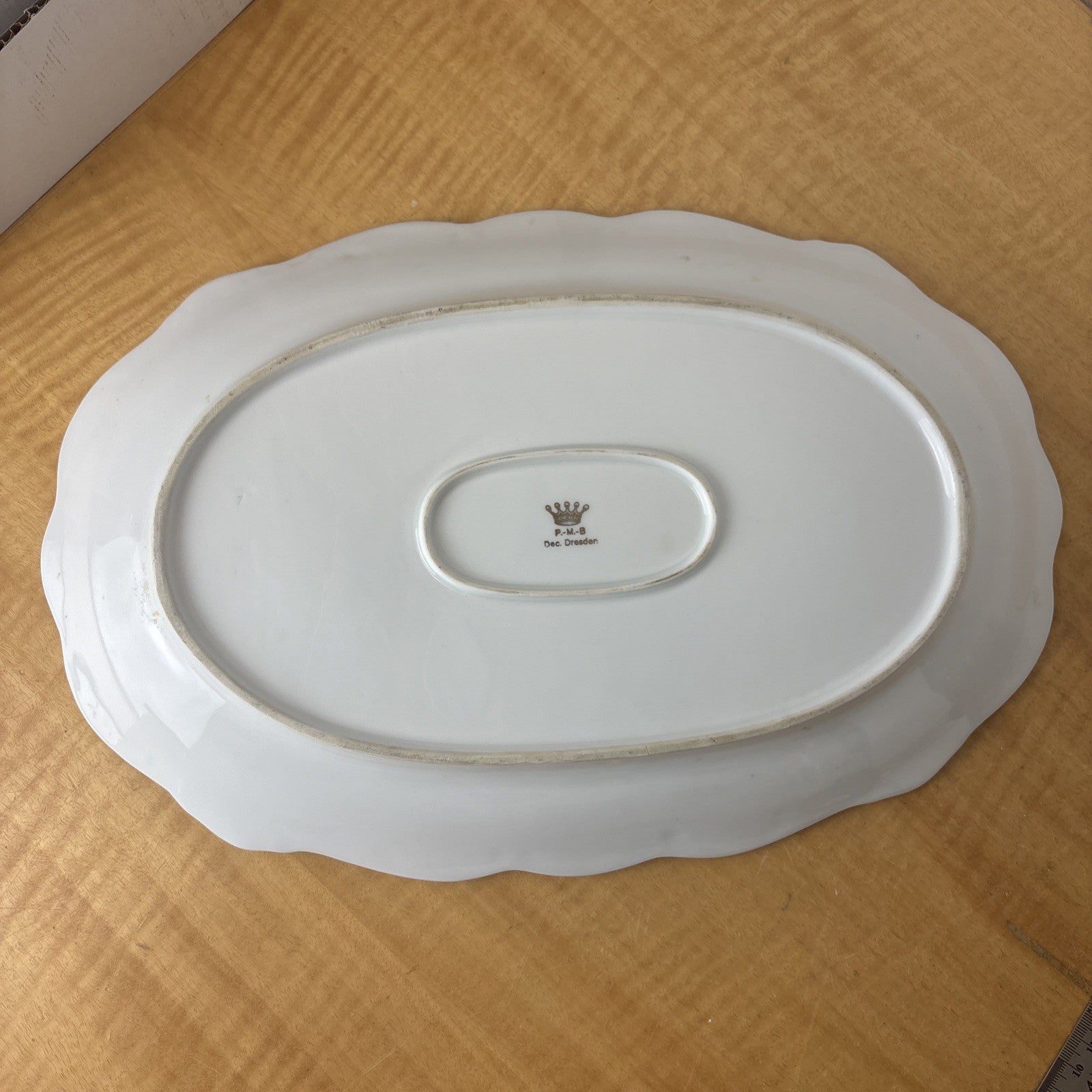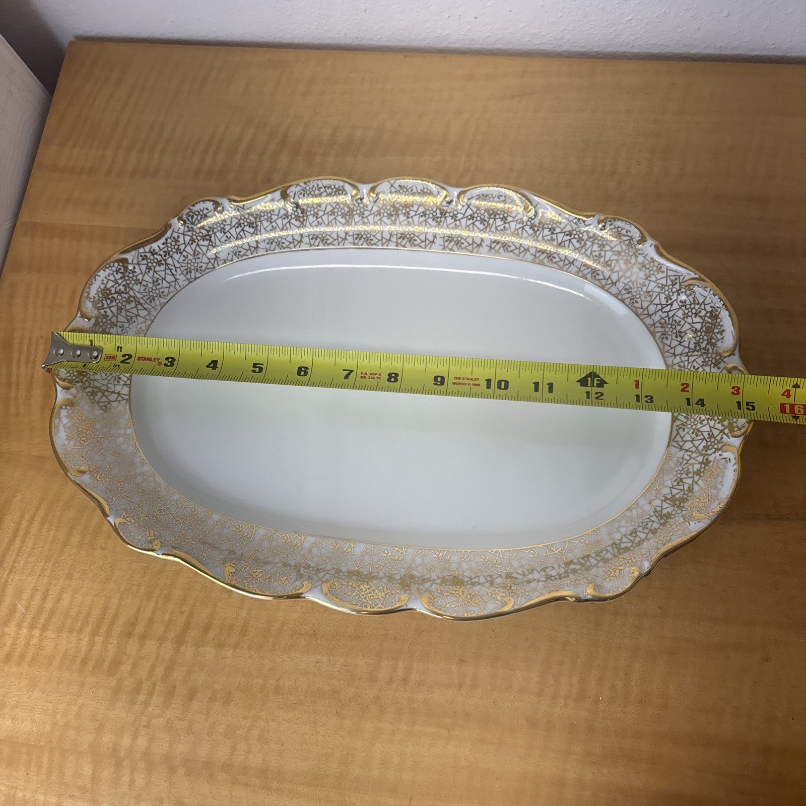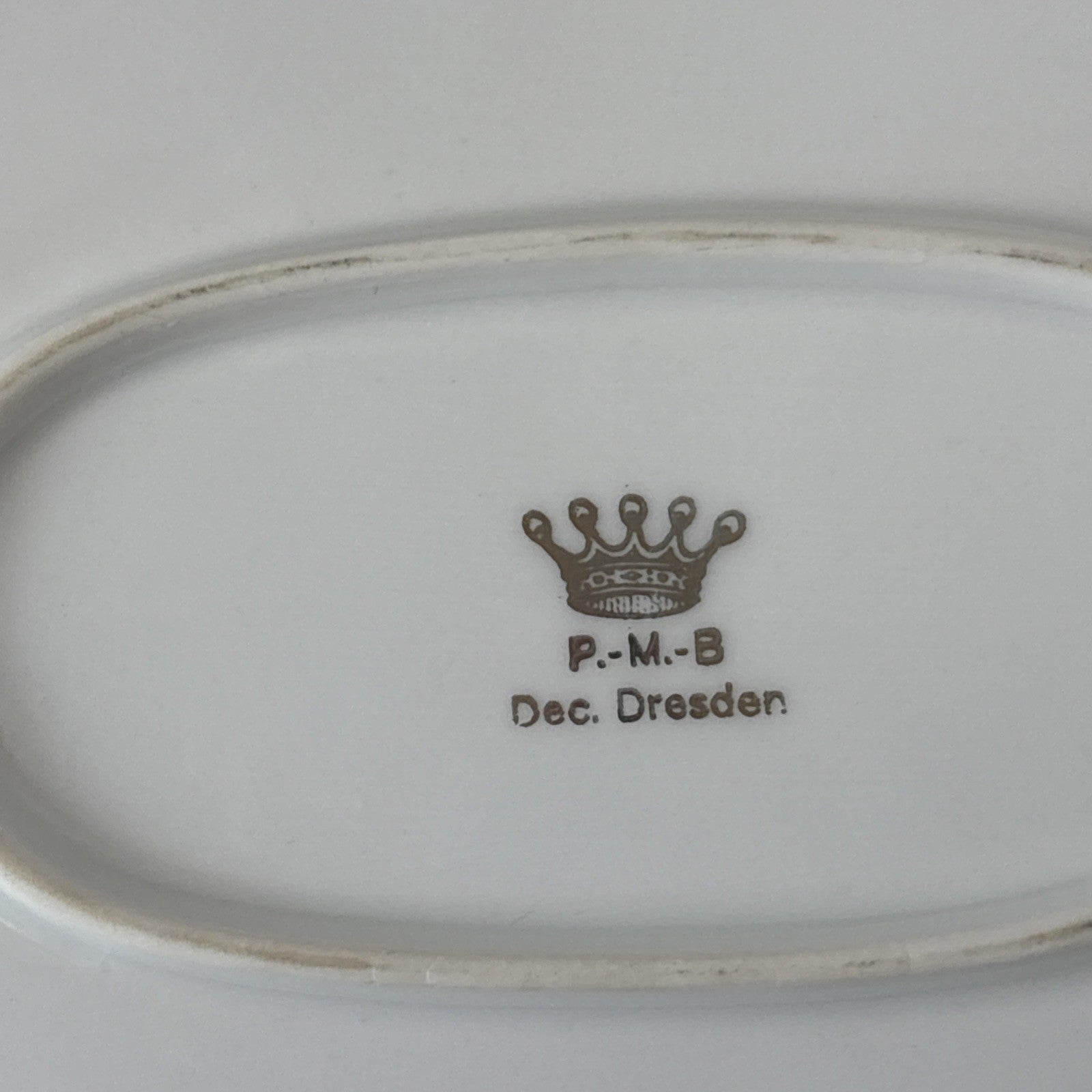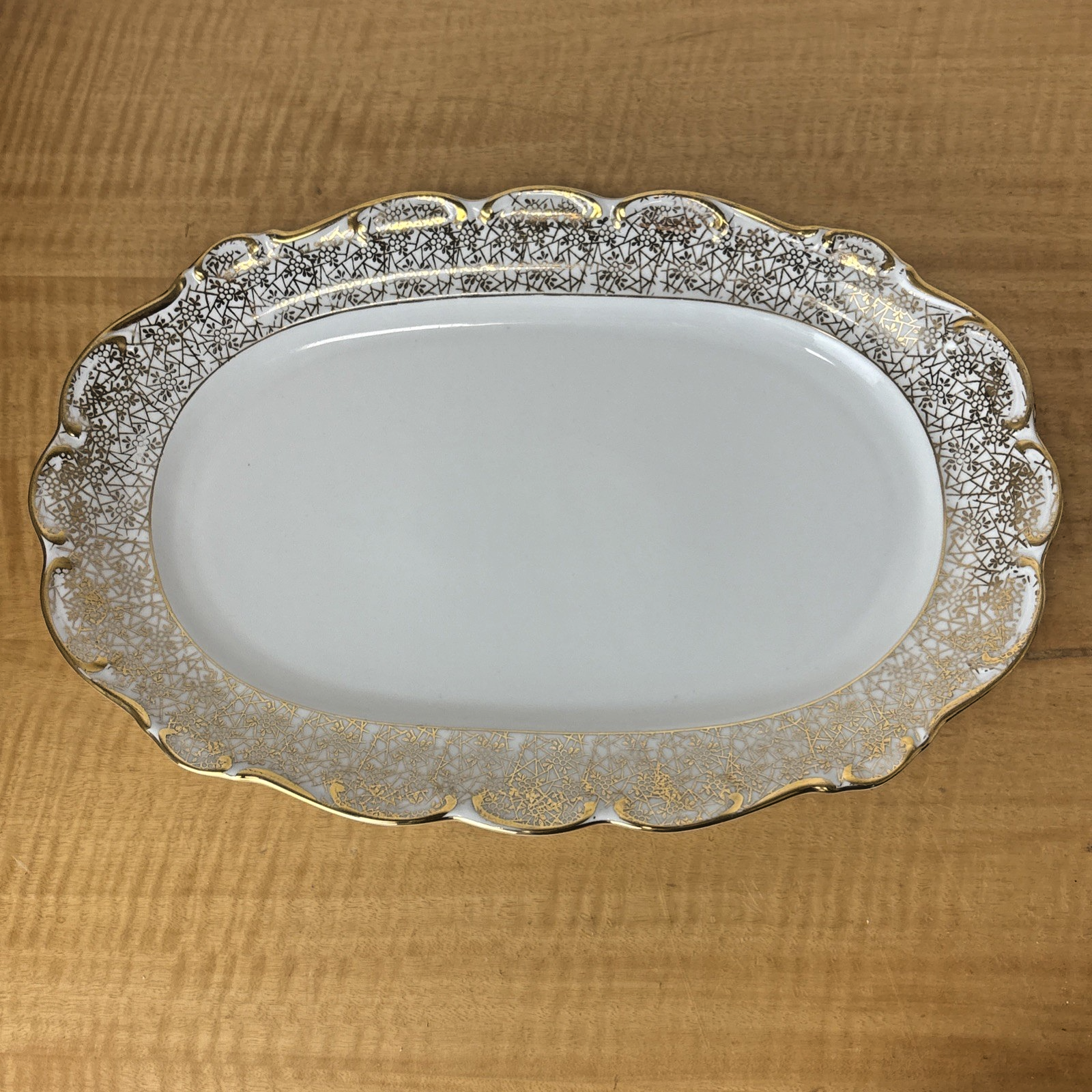 Antique PMB House of Dresden Gold Filigree 15.25" Oval Serving Dish / Platter