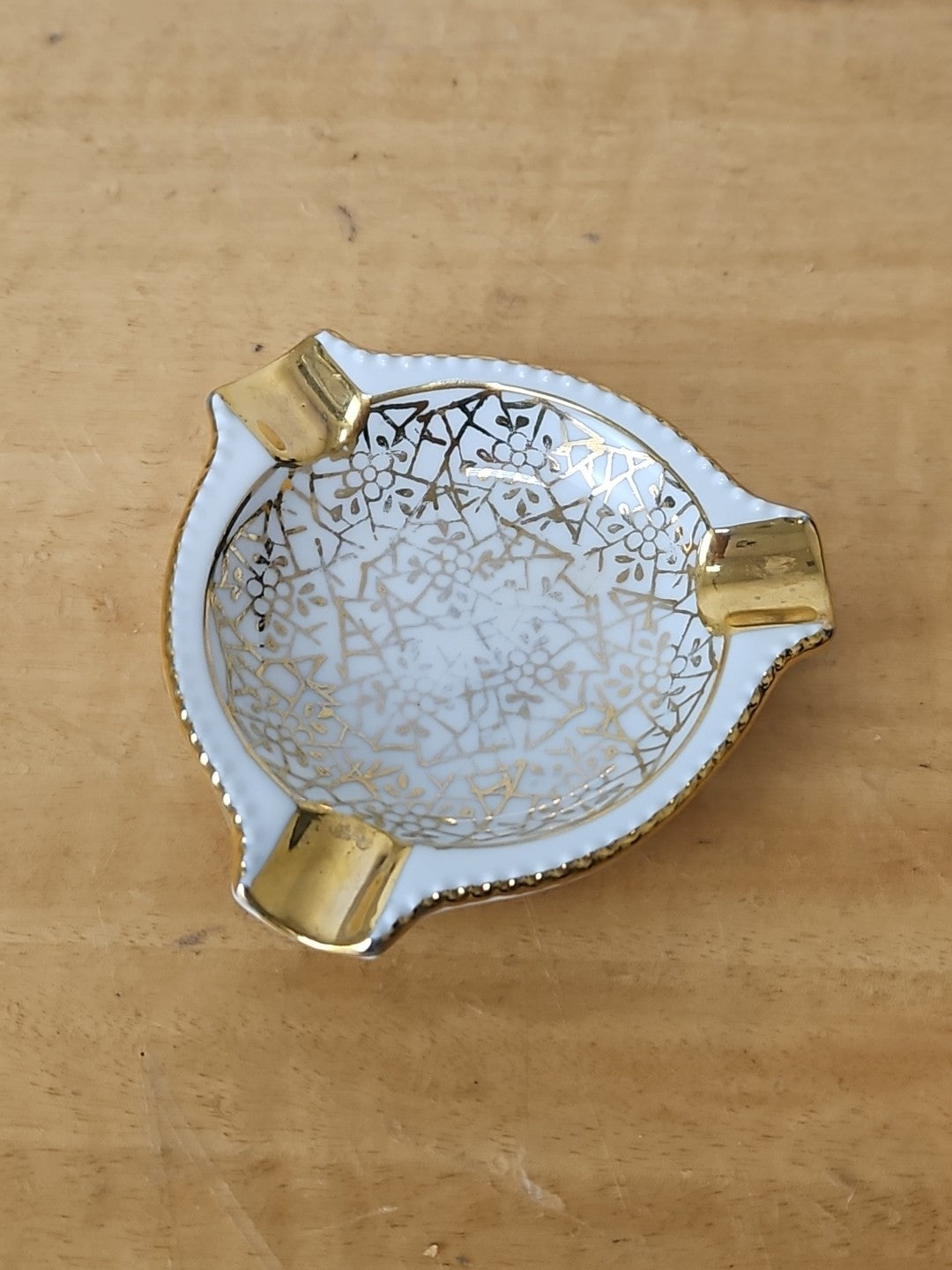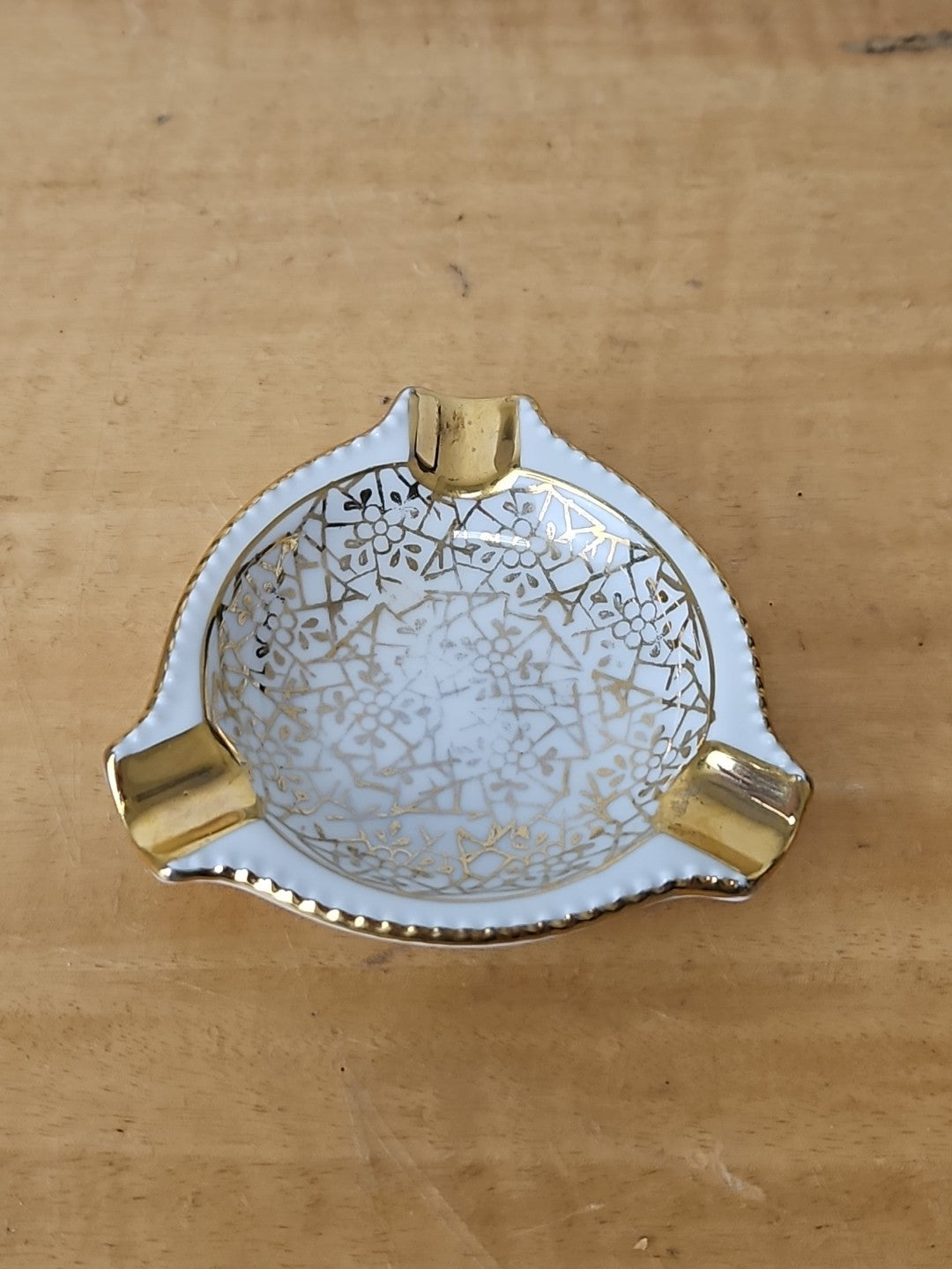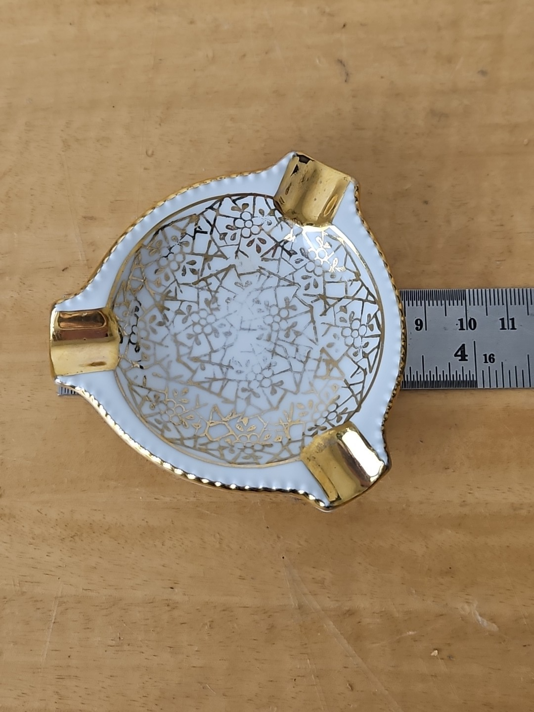 Antique PMB House of Dresden Gold Filigree round ashtray 3 inch