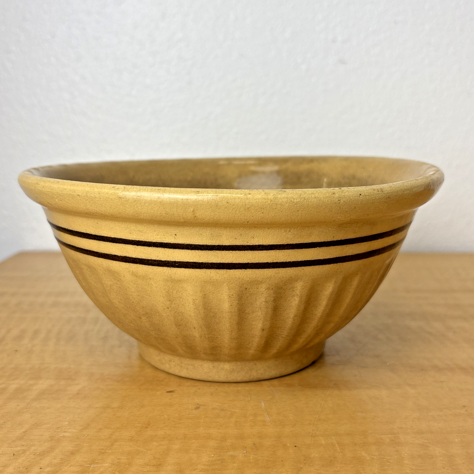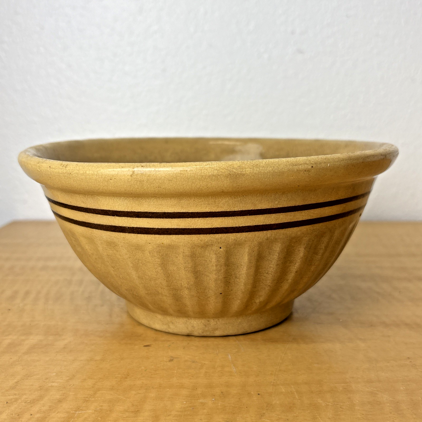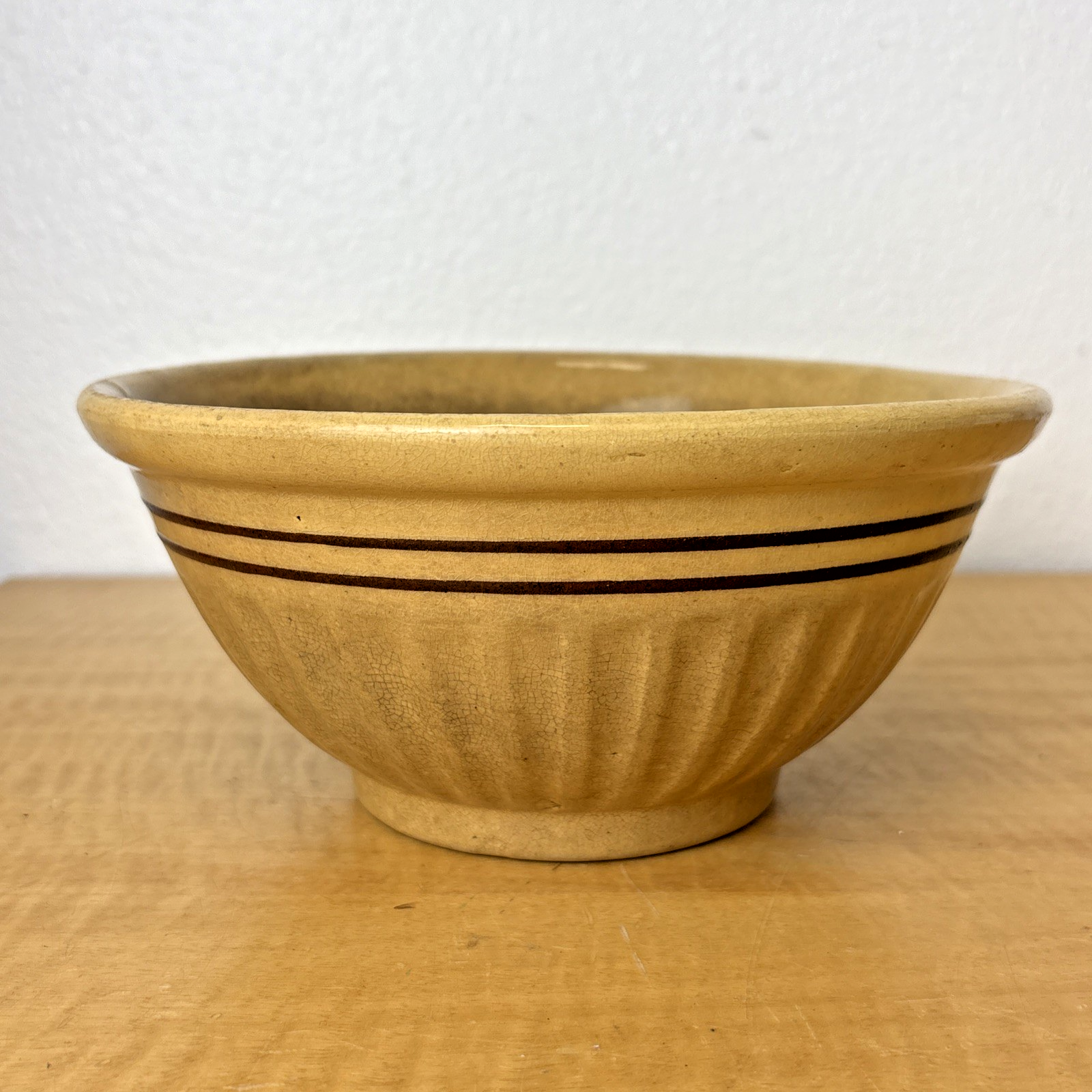 Antique Yellowware Stoneware Mixing Bowl w/ Brown Bands
