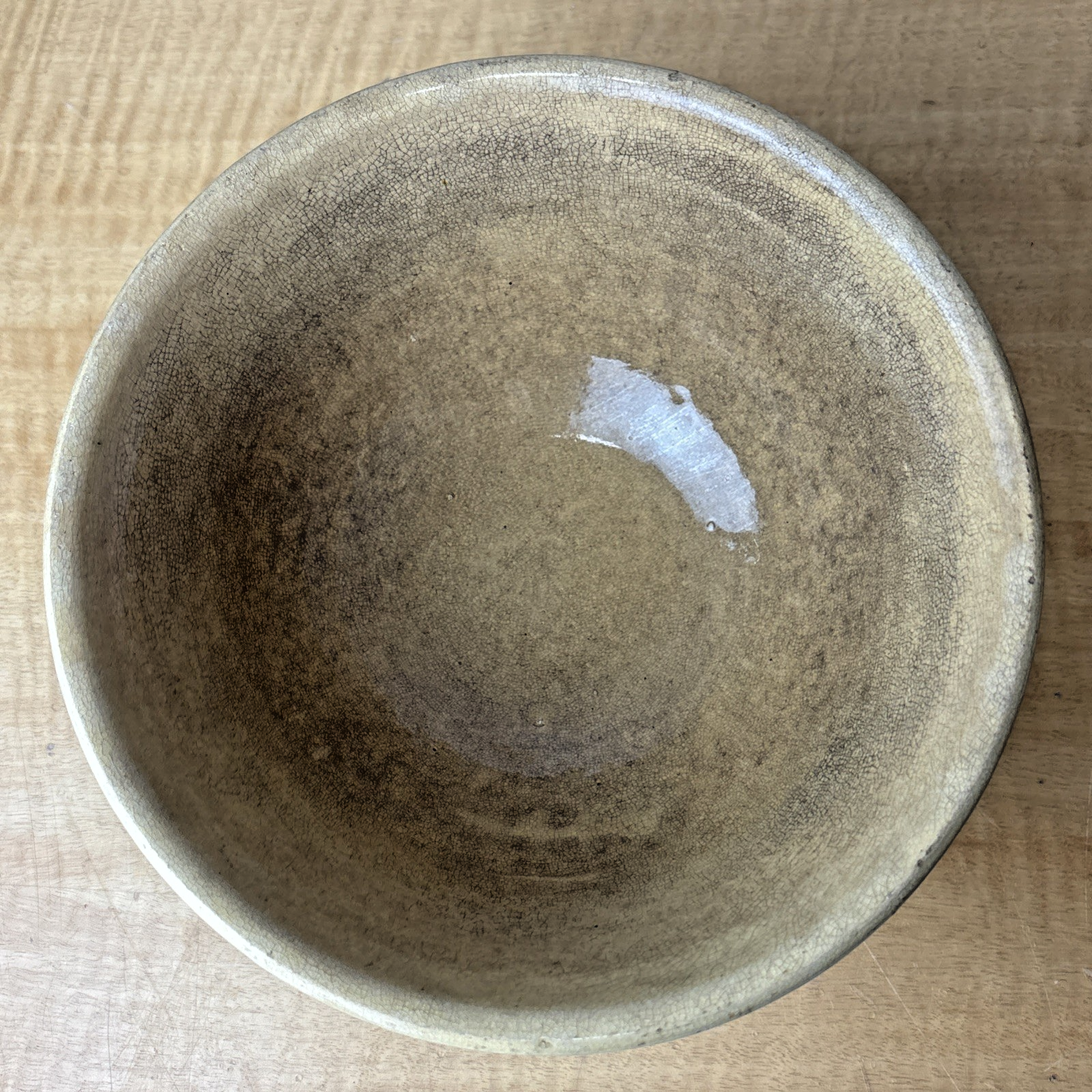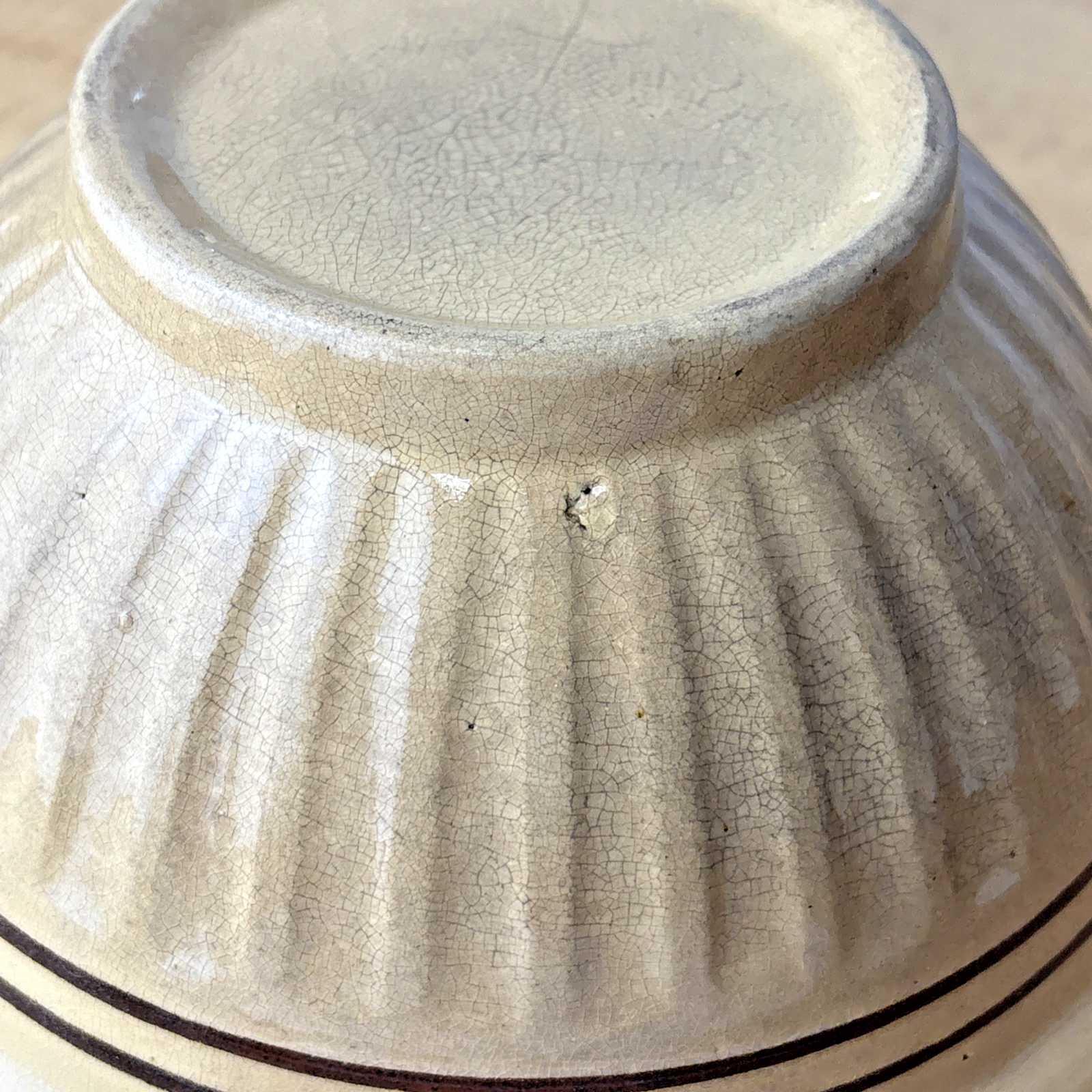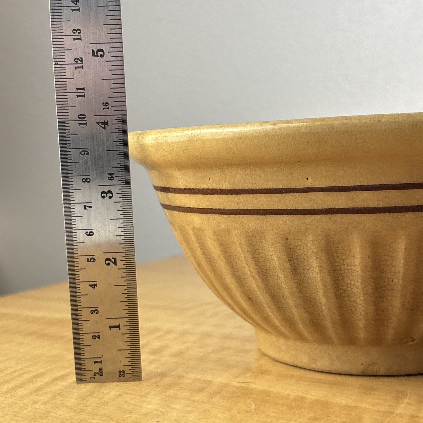 Antique Yellowware Stoneware Mixing Bowl w/ Brown Bands