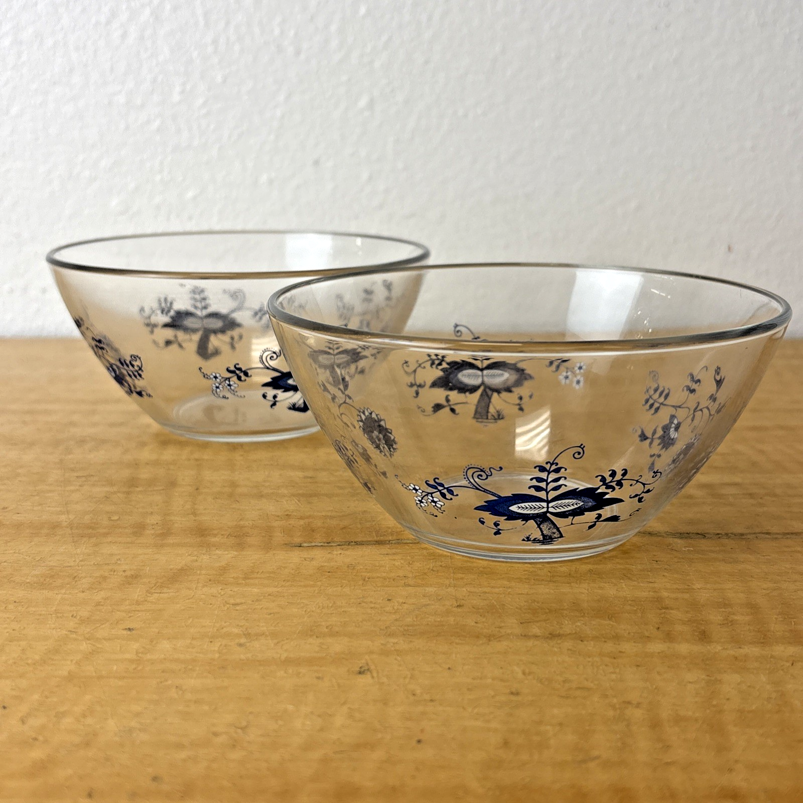 Arcoroc France Blue Danube Blue Onion Set of 2 Glass Bowls