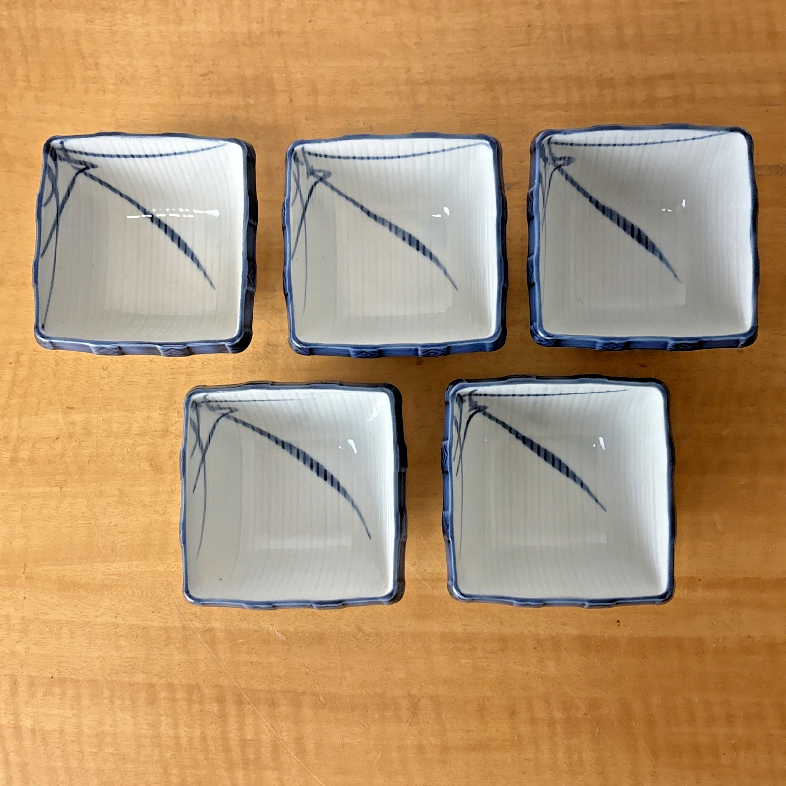 Arita Ware Old Imari Small Square Blue and White Bowl Japan Lot / Set Of 5