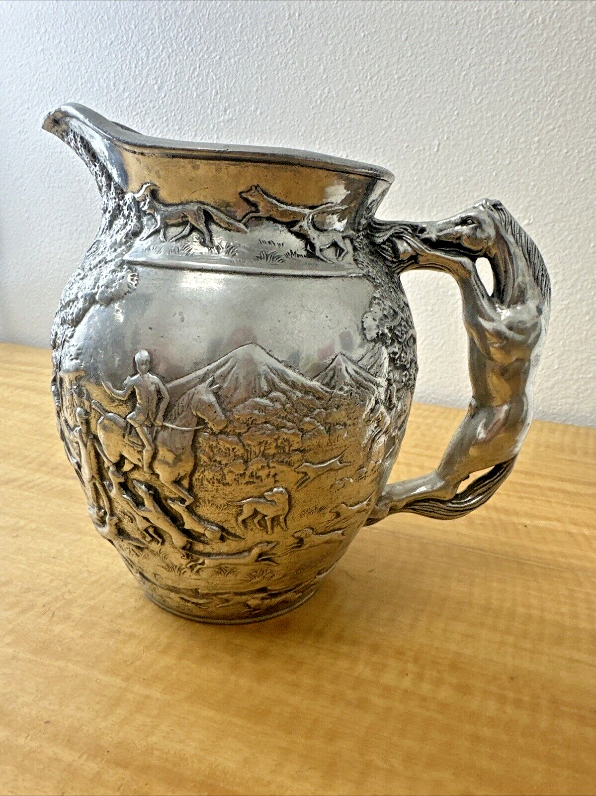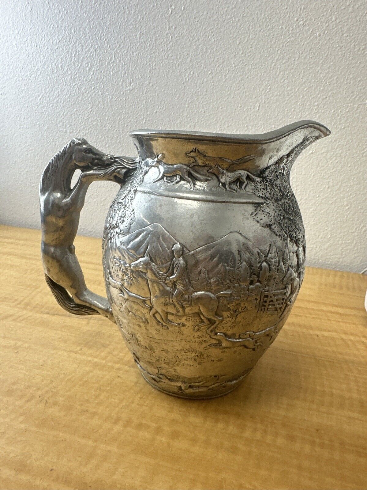 Arthur Court Horse Handle Cast Aluminum Pitcher Fox Hunting Equestrian 1989
