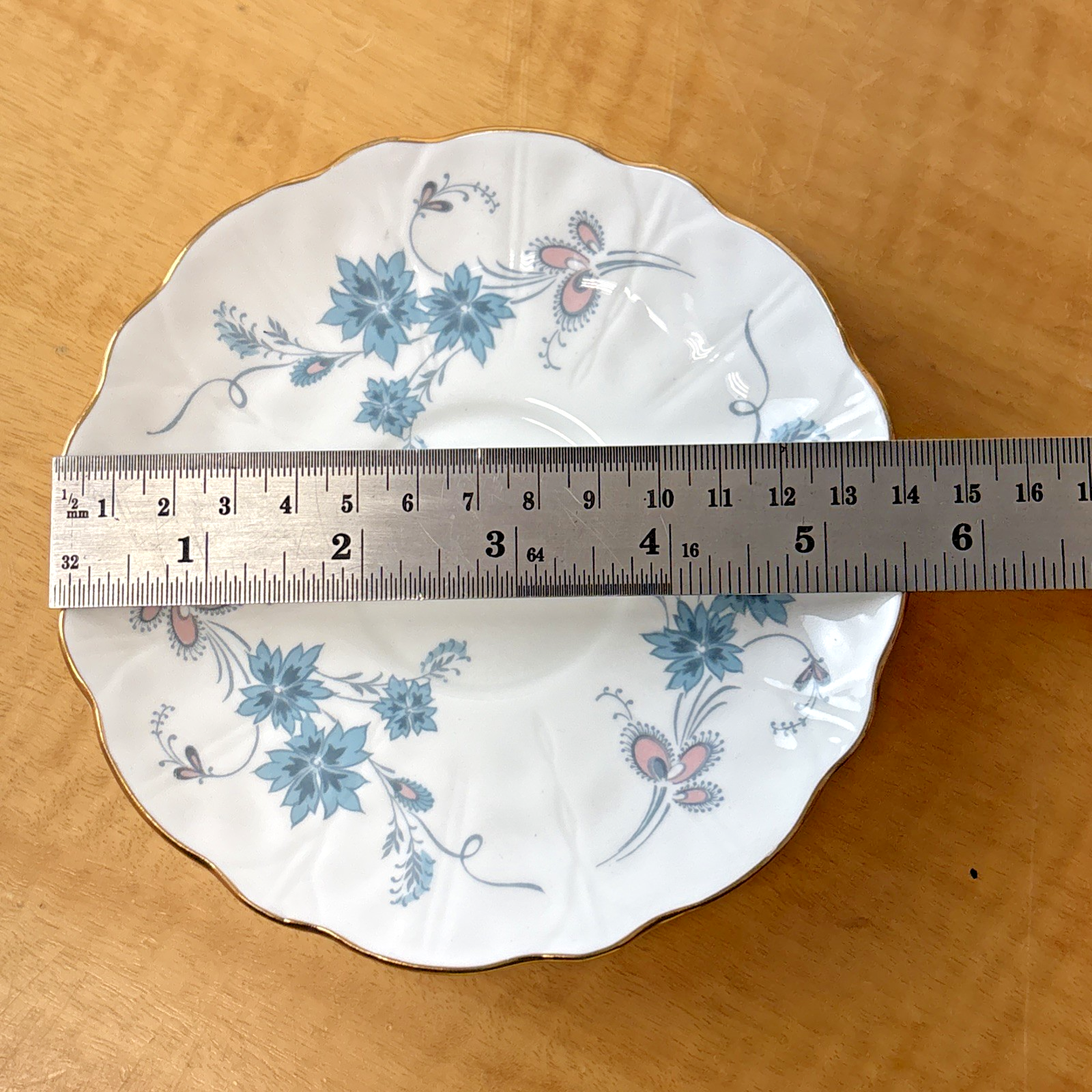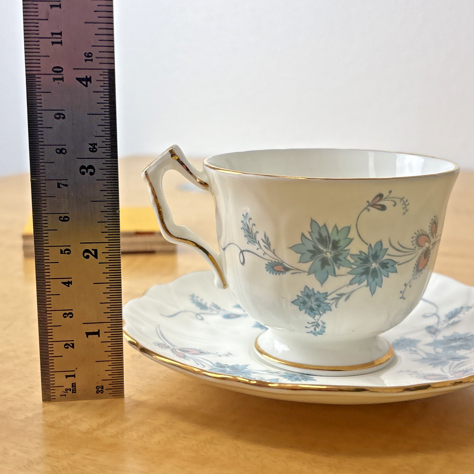 Aynsley Blue & Pink Floral Teacup & Saucer English Bone China