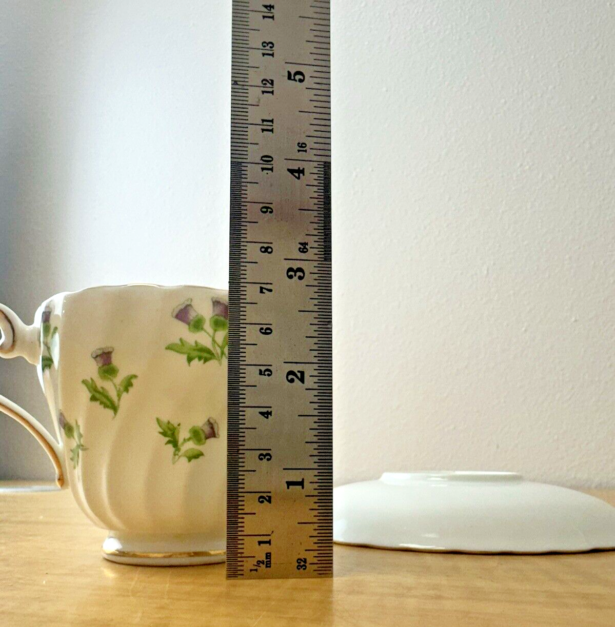 Aynsley Porcelain Cup Saucer Purple Thistle Made England