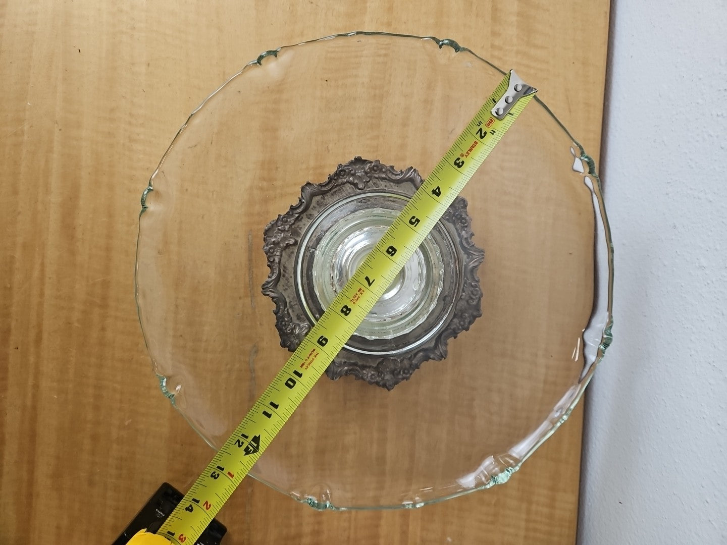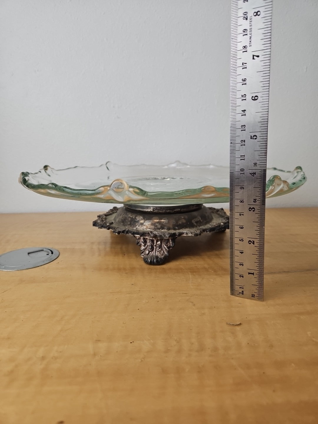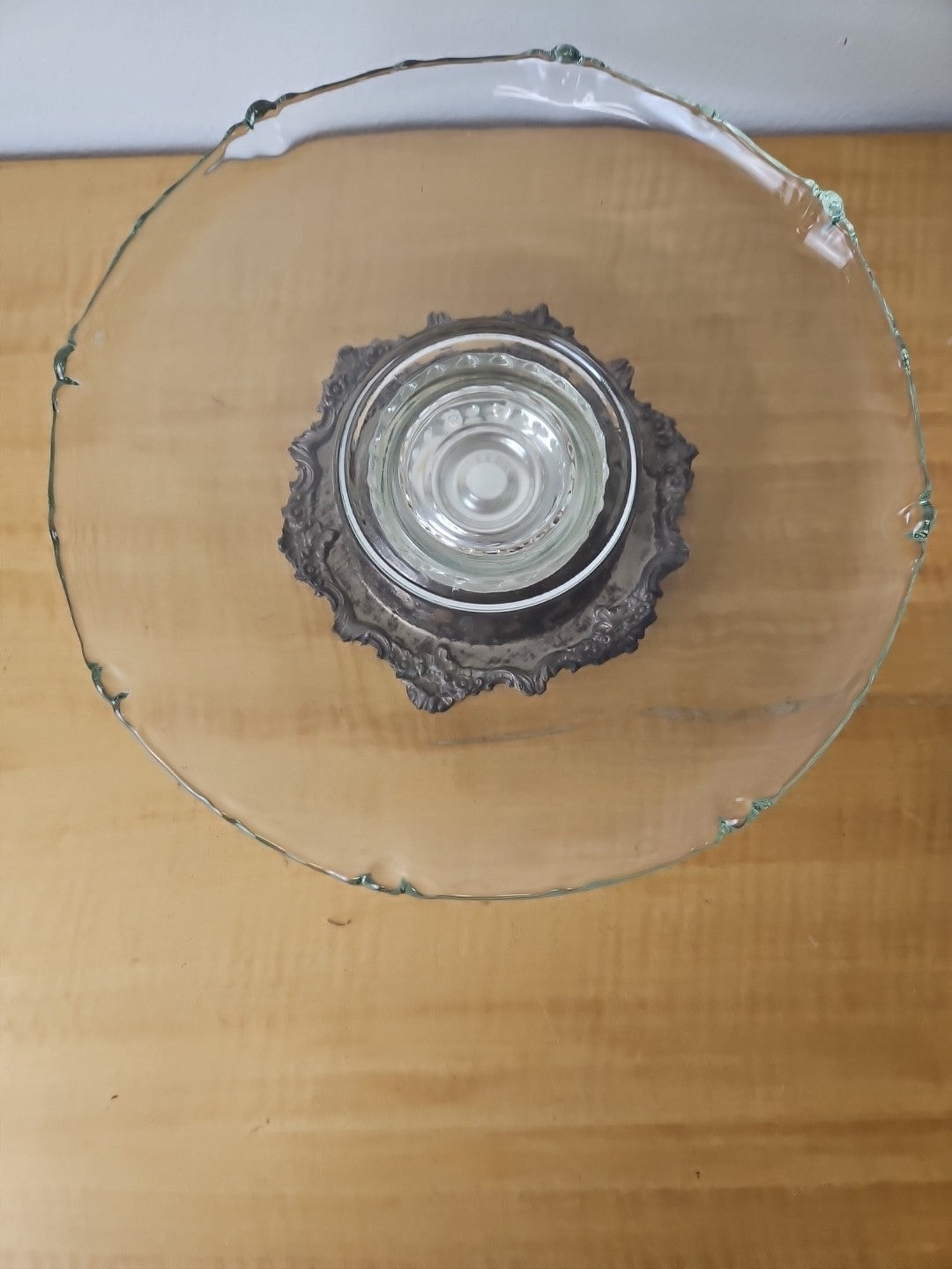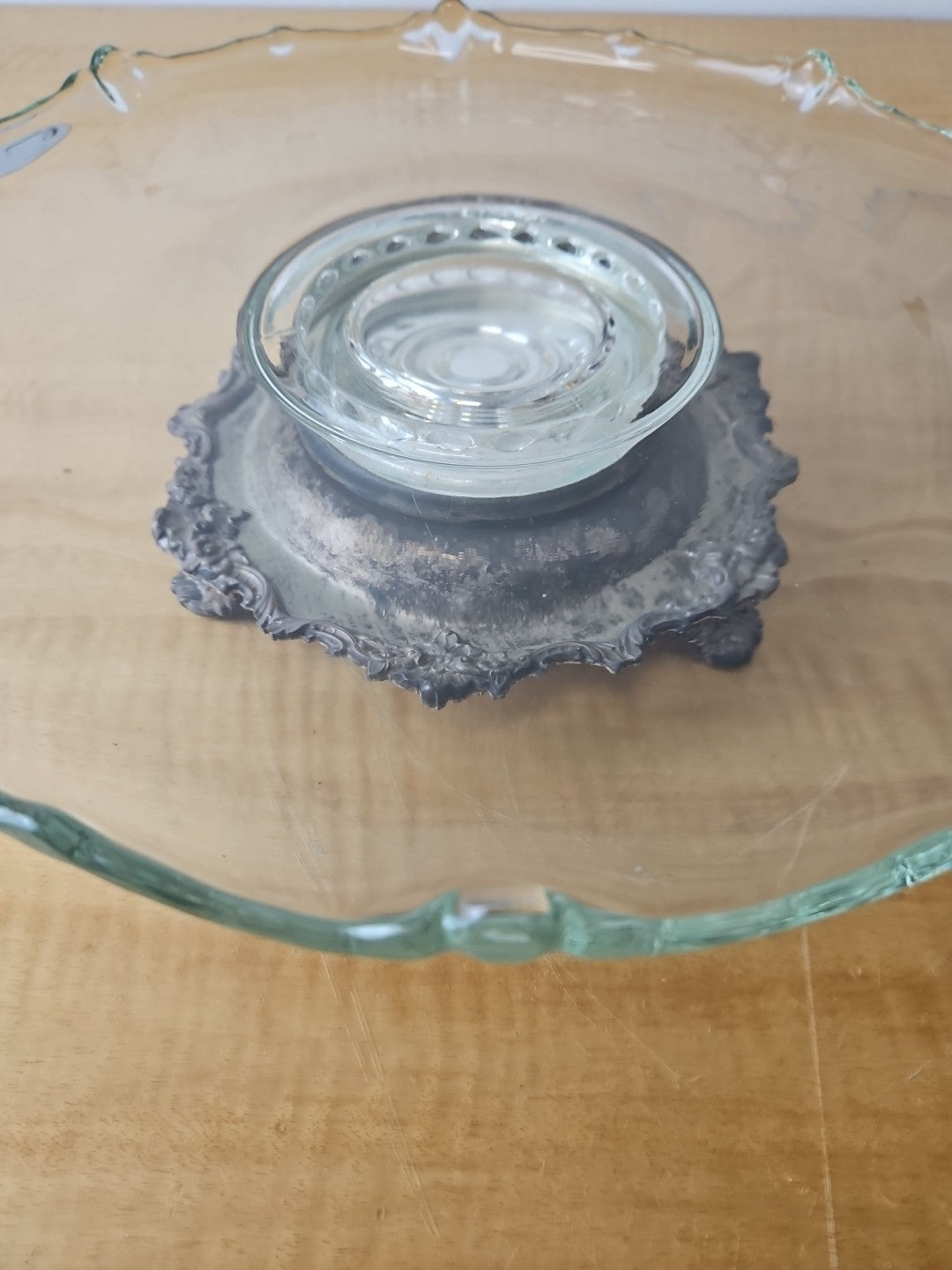 Beautiful Silver & Glass Lazy Susan Cake Plate -Logo of crown with C S- 13"