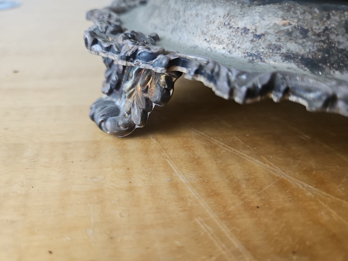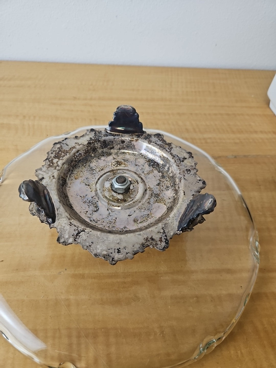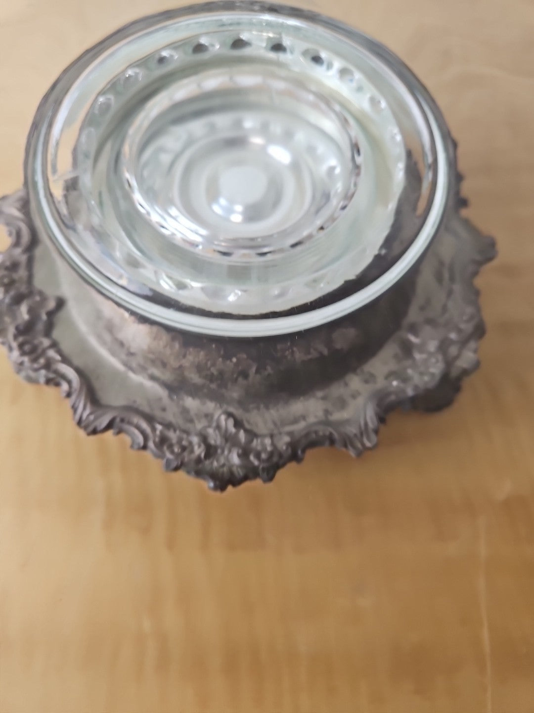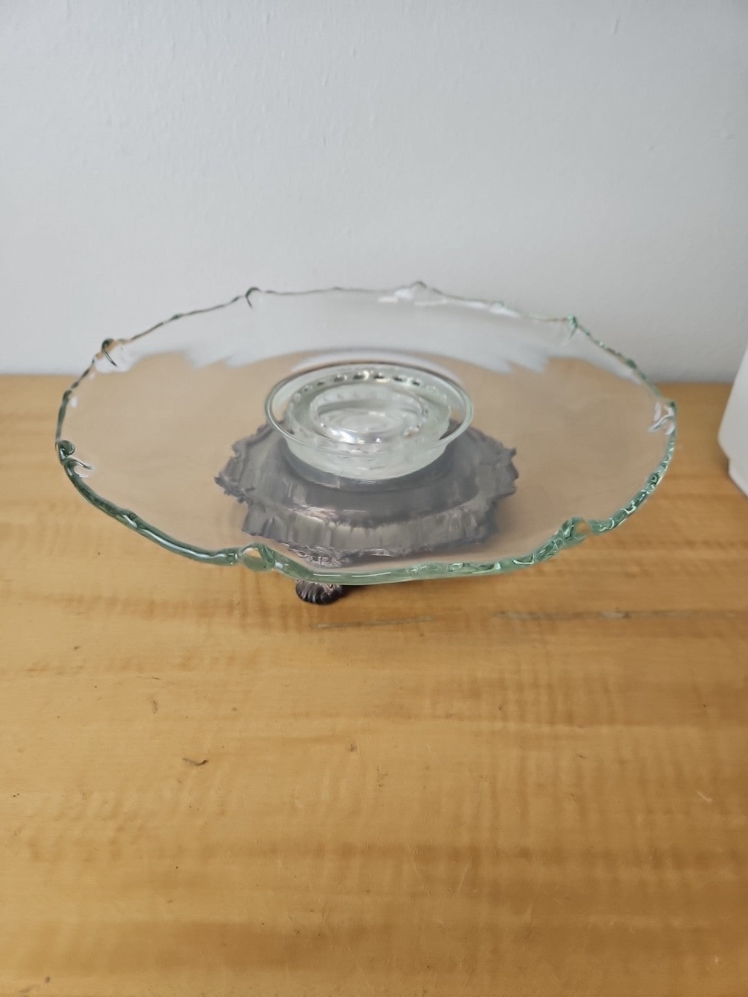 Beautiful Silver & Glass Lazy Susan Cake Plate -Logo of crown with C S- 13"