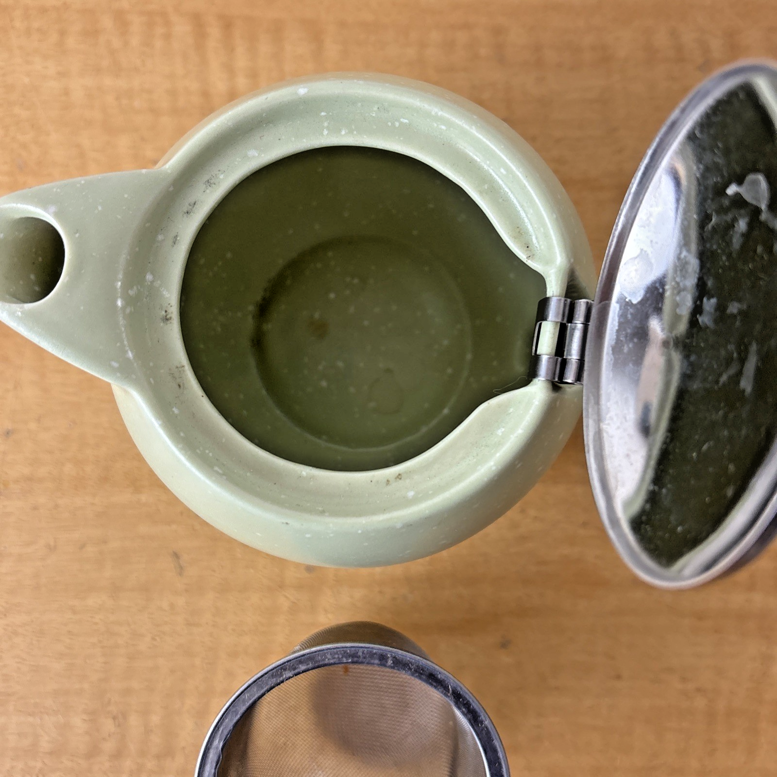 BEE HOUSE JAPAN ROUND SPECKLED GREEN 1 CUP CERAMIC TEAPOT WITH STRAINER