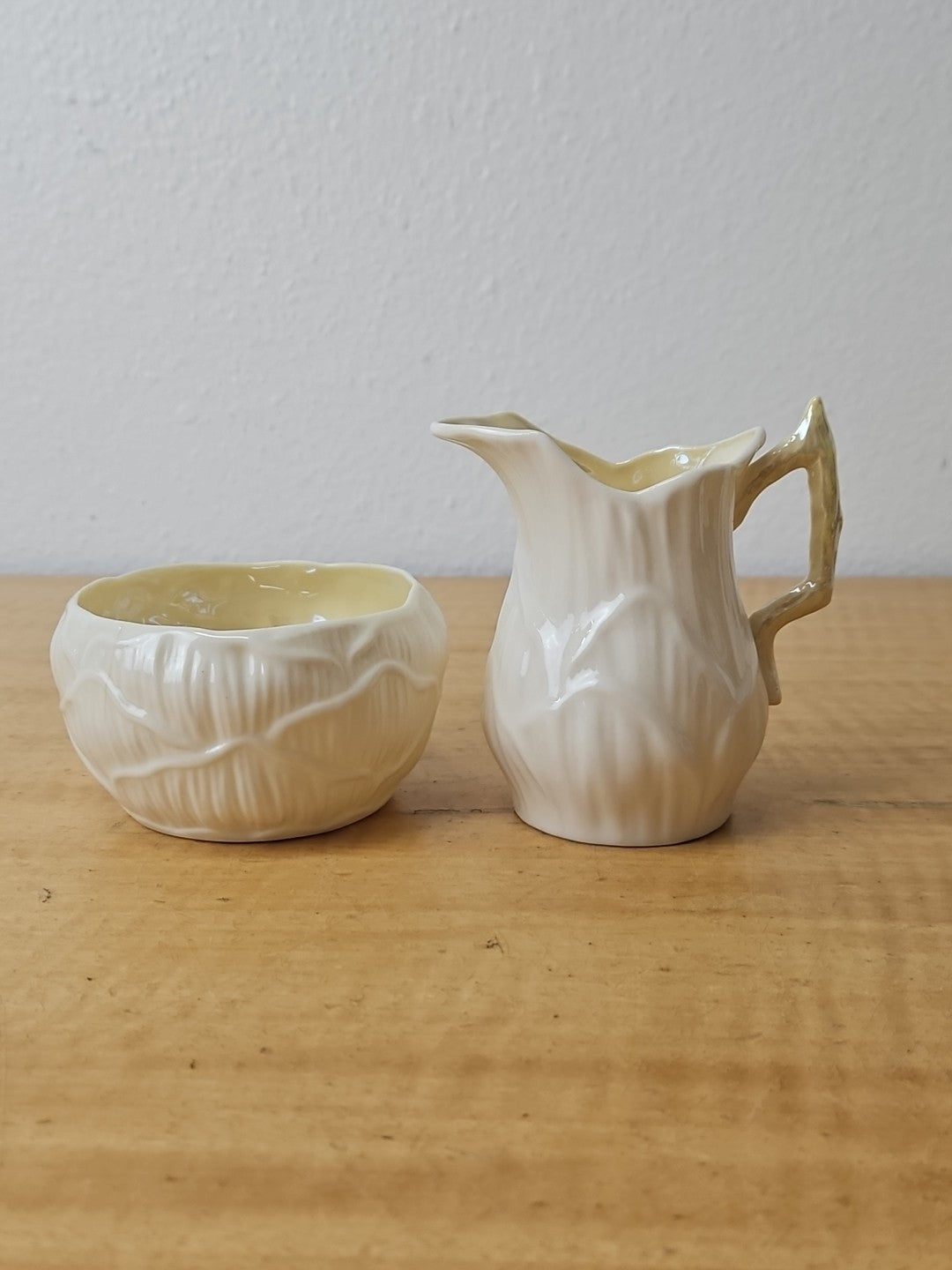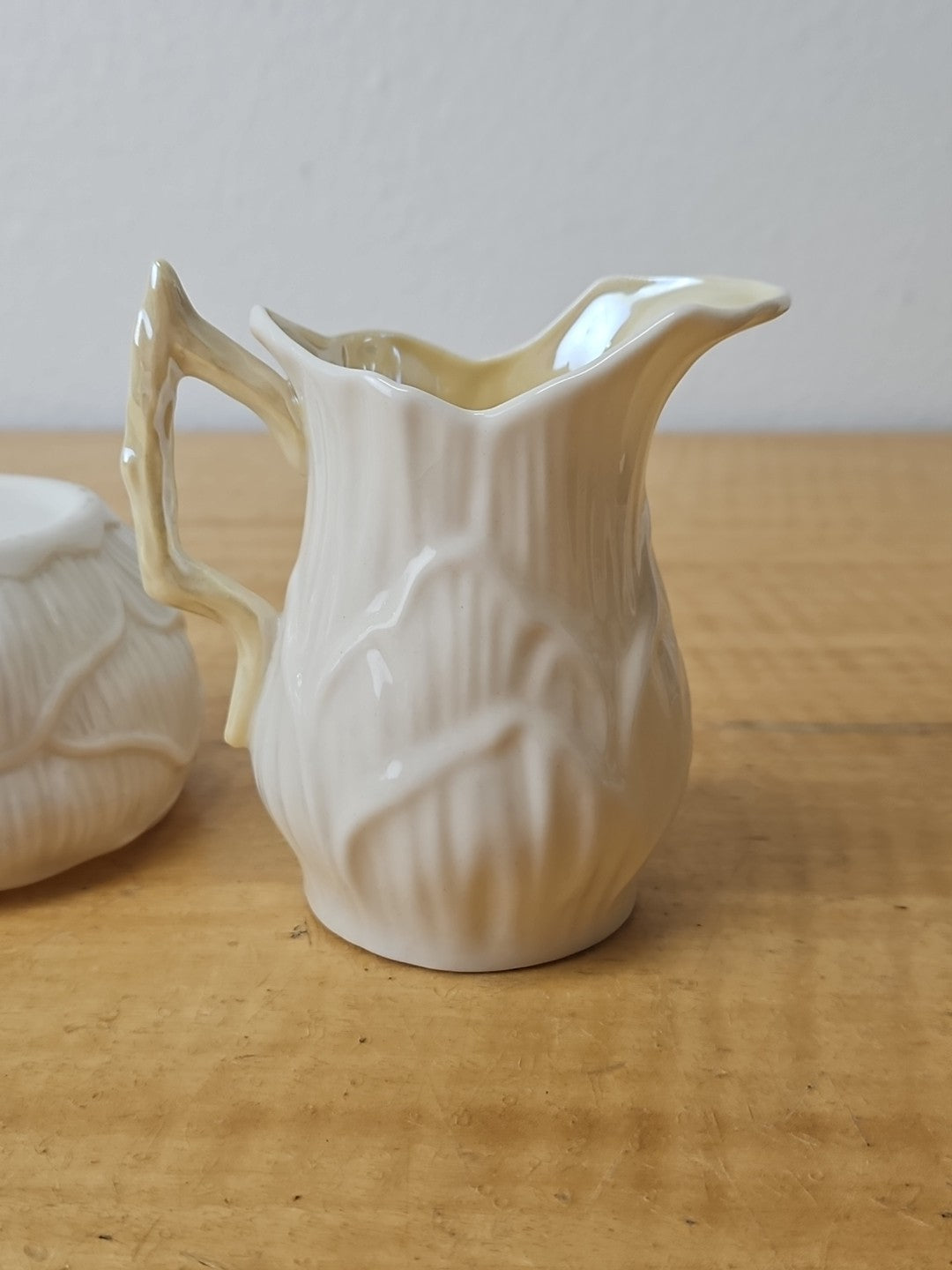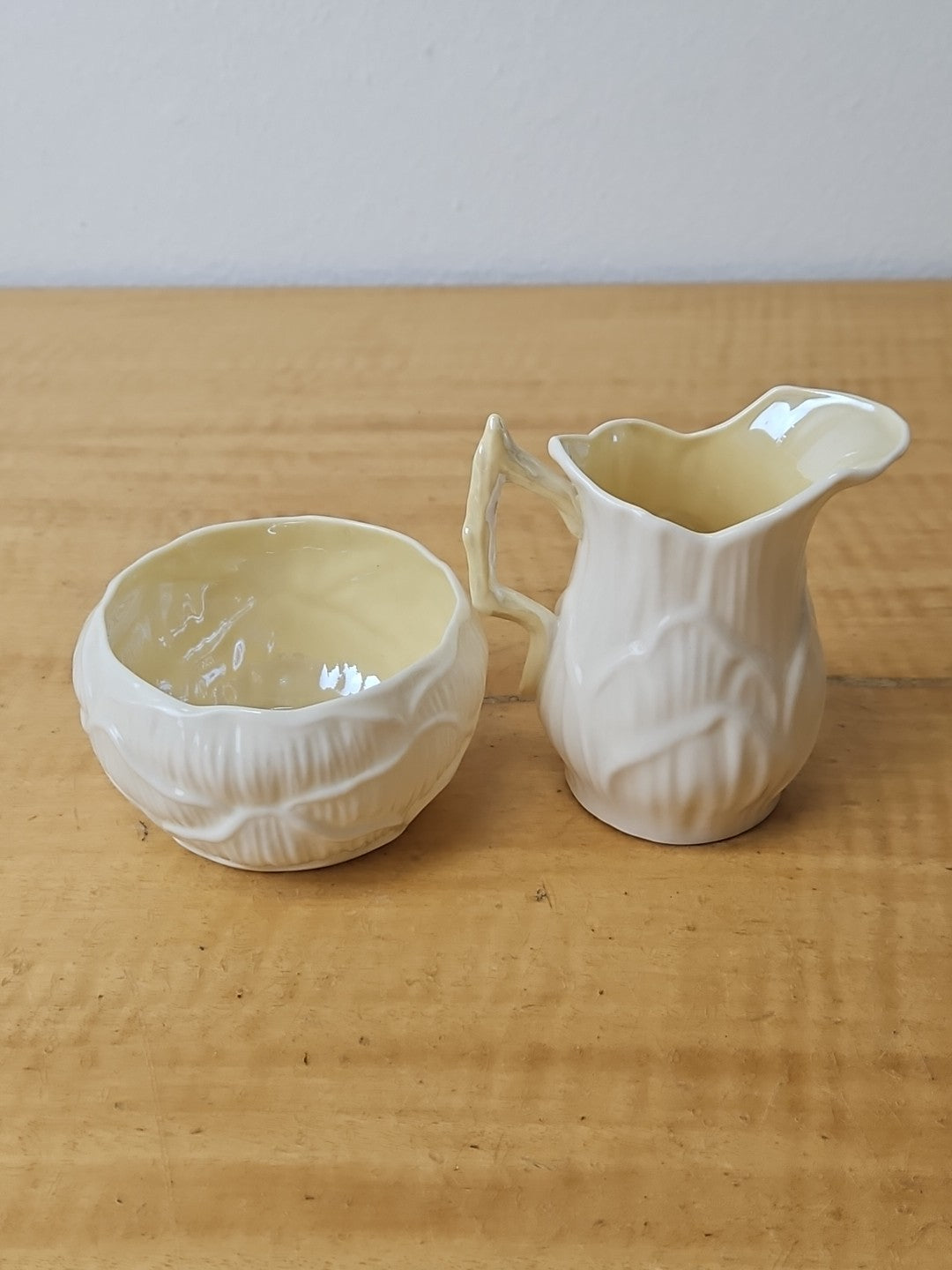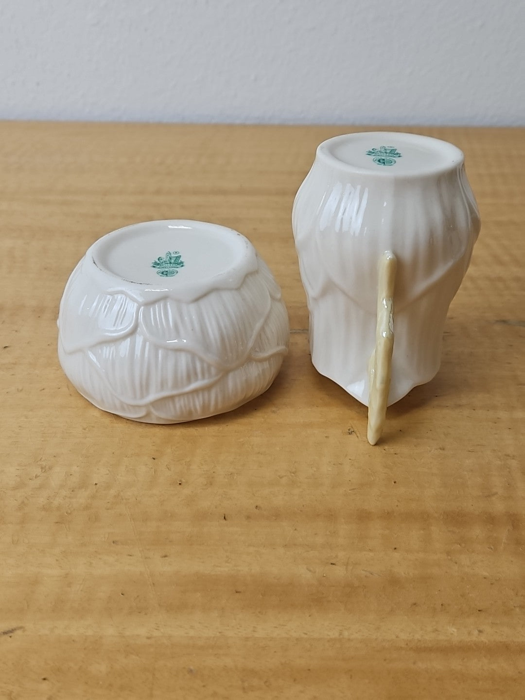 BELLEEK Porcelain Cream and Sugar set 6th Mark Green Made in Ireland (1965-1980)
