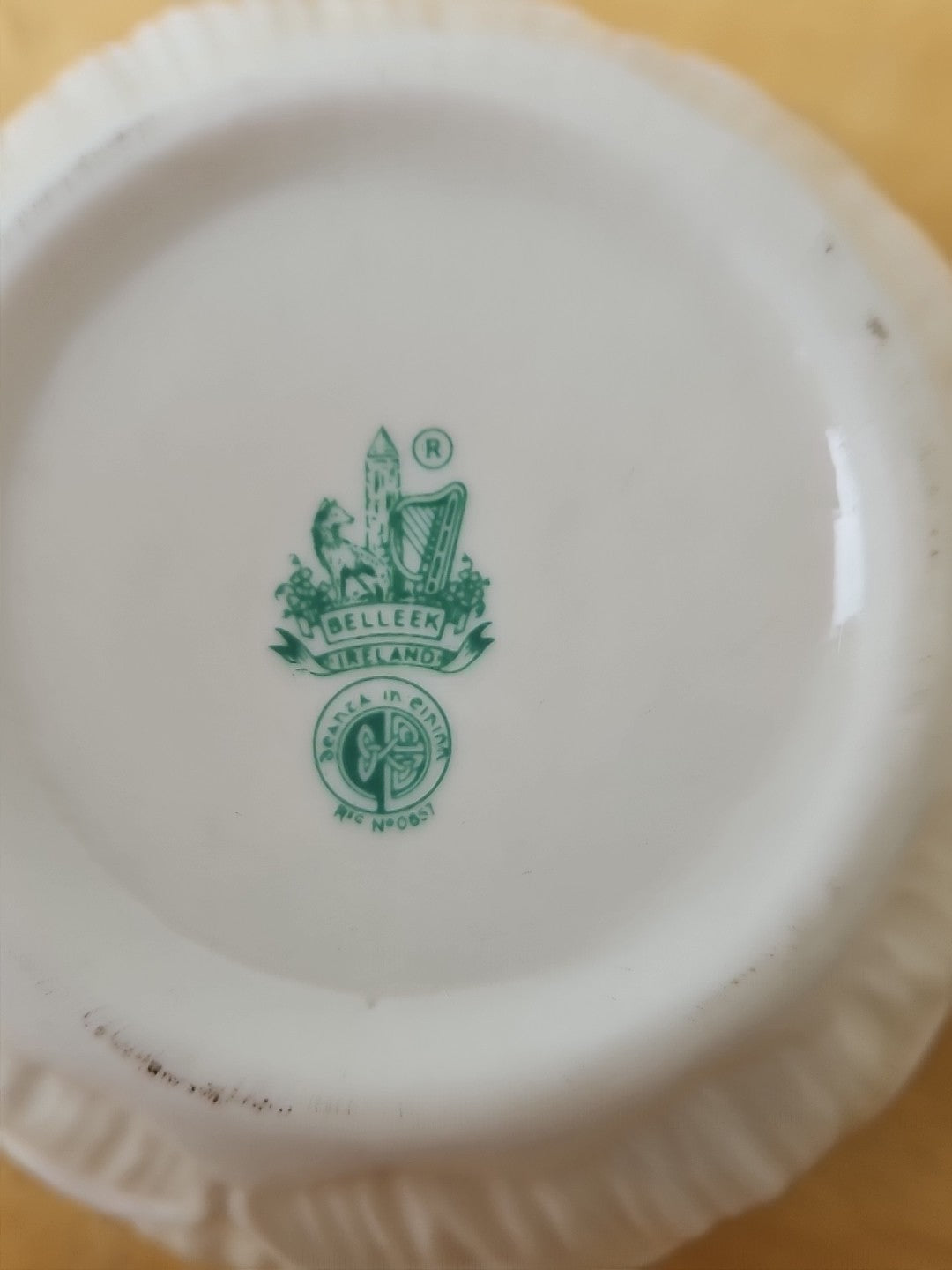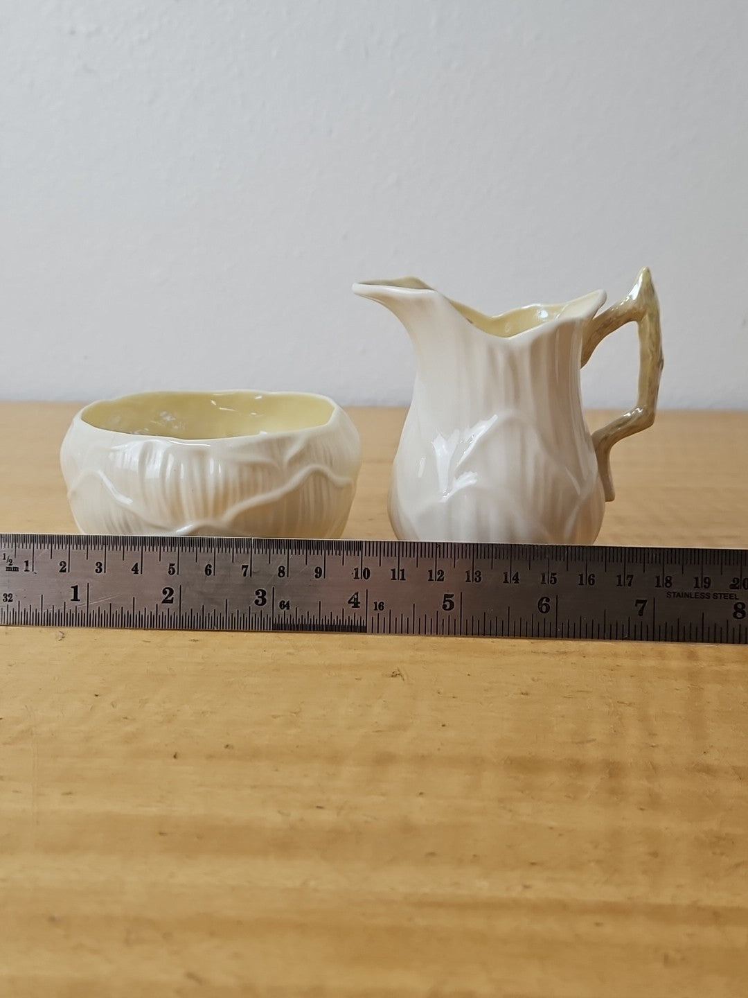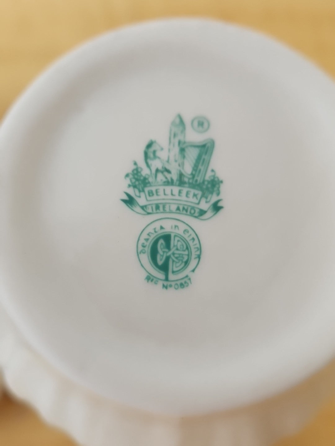 BELLEEK Porcelain Cream and Sugar set 6th Mark Green Made in Ireland (1965-1980)