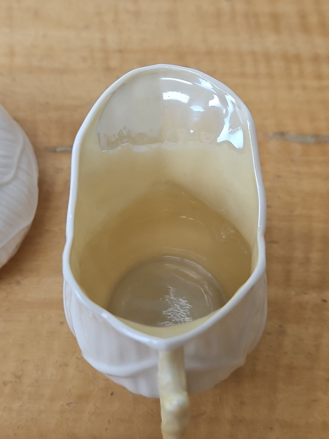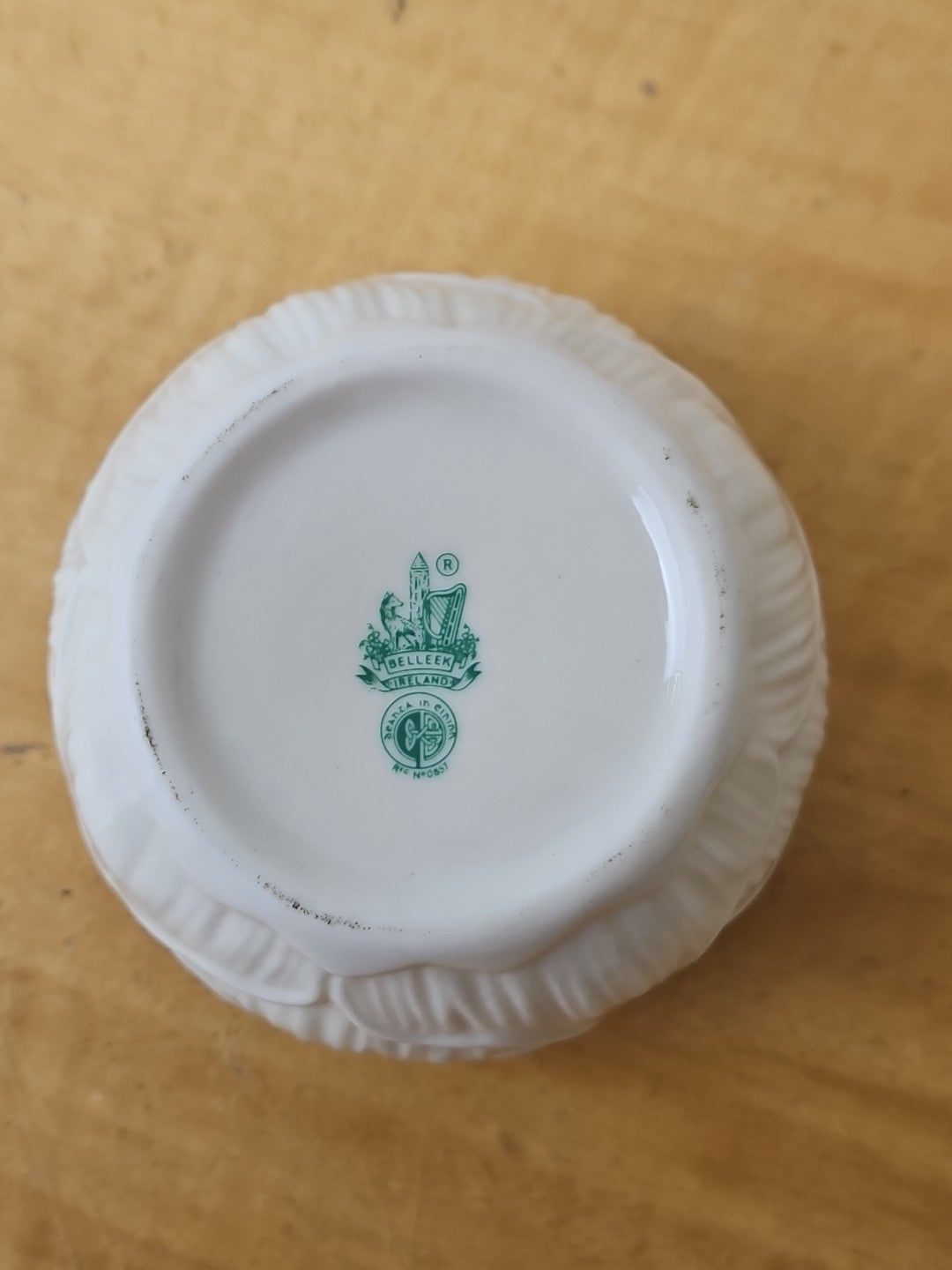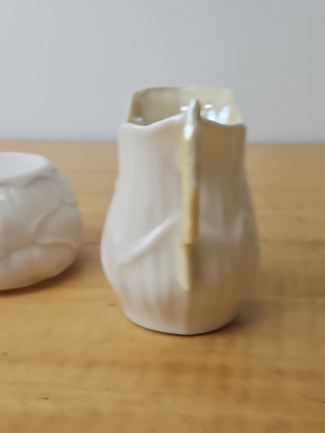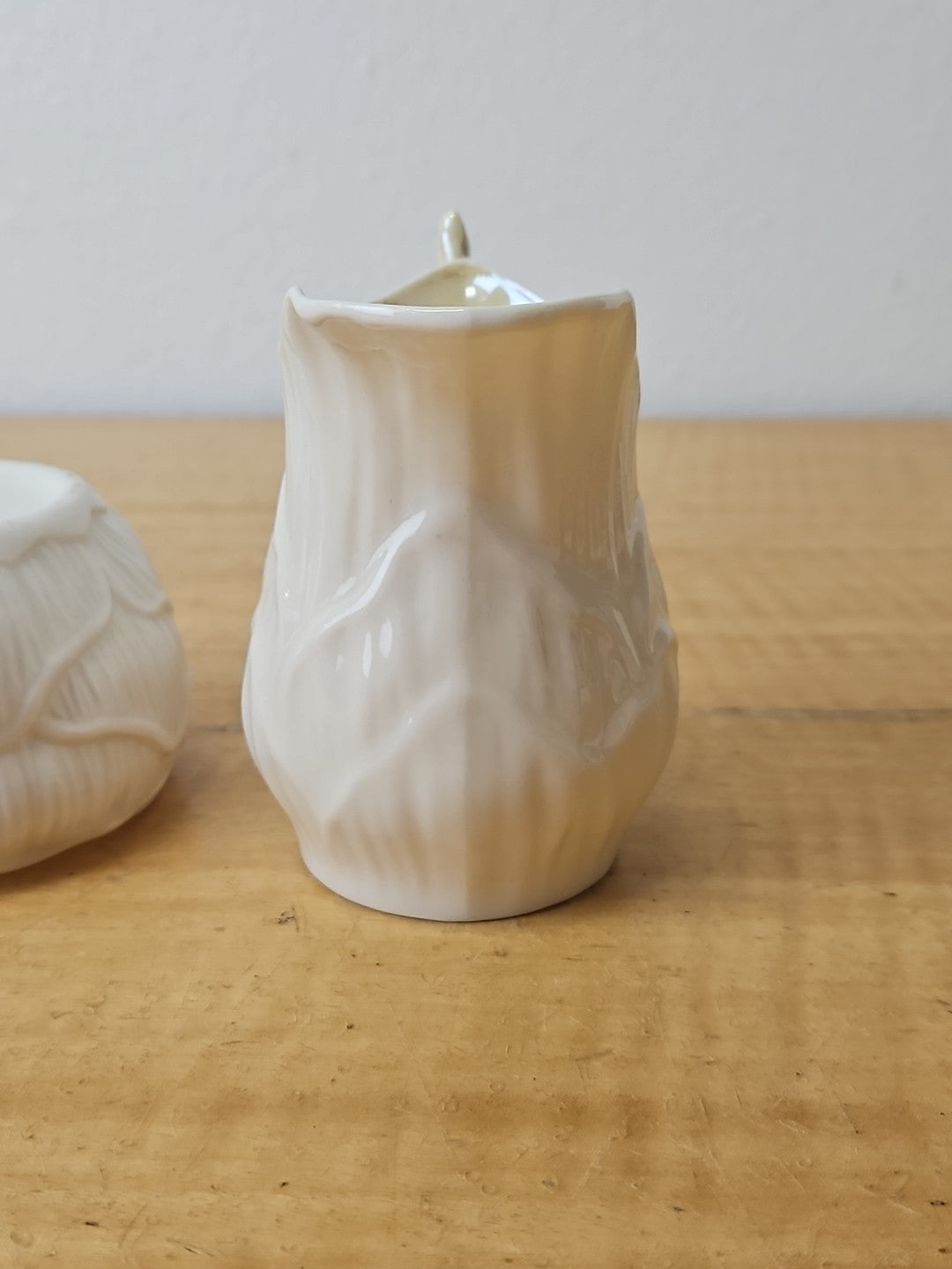 BELLEEK Porcelain Cream and Sugar set 6th Mark Green Made in Ireland (1965-1980)