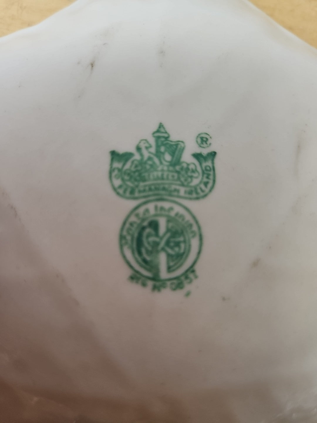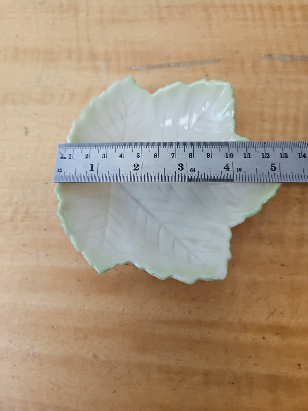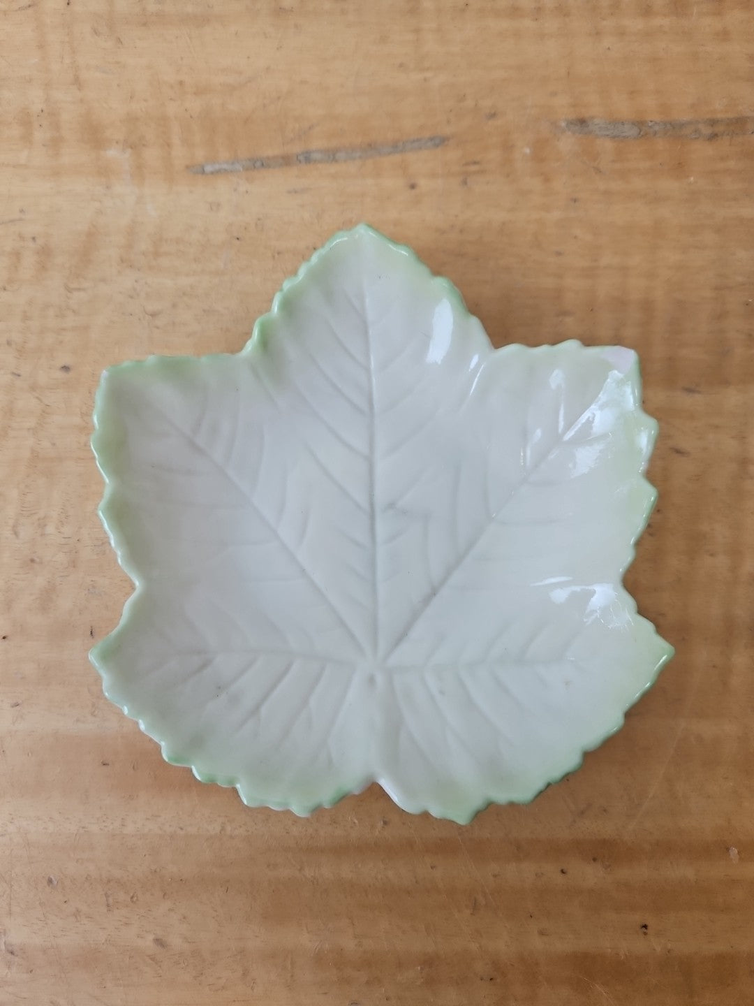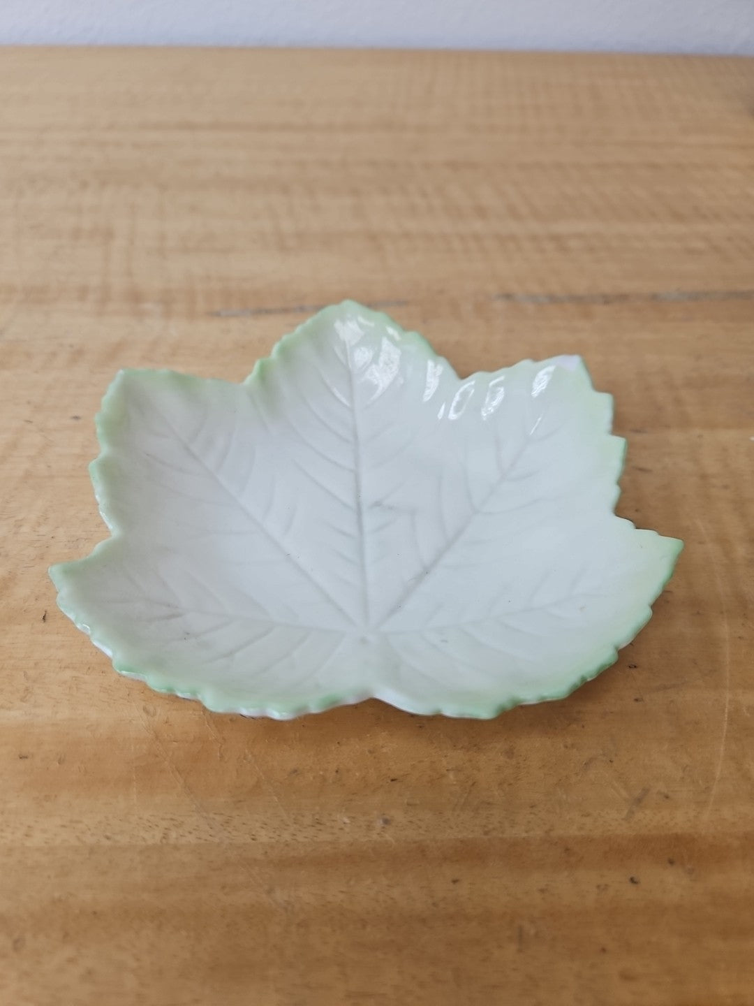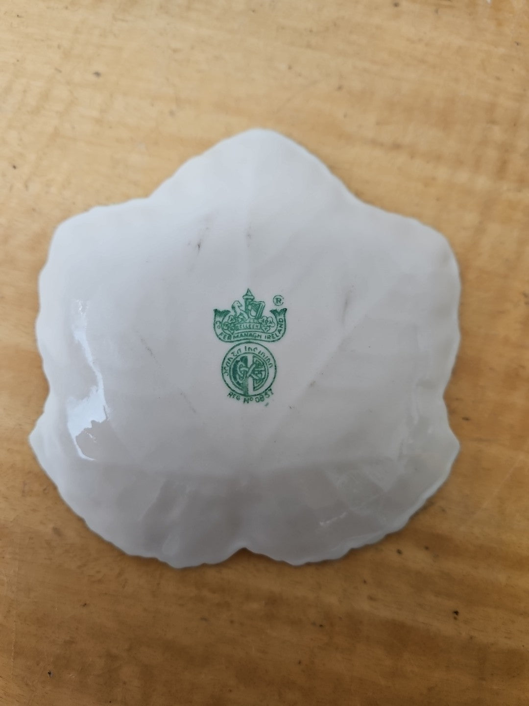 BELLEEK Porcelain leaf dish green edge 5th Mark Ireland (1955-1965) 5"