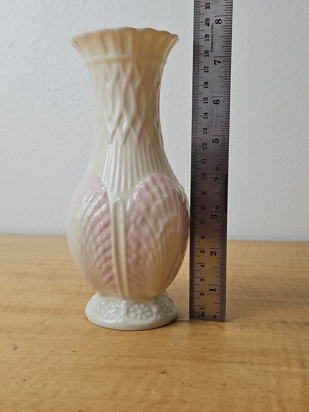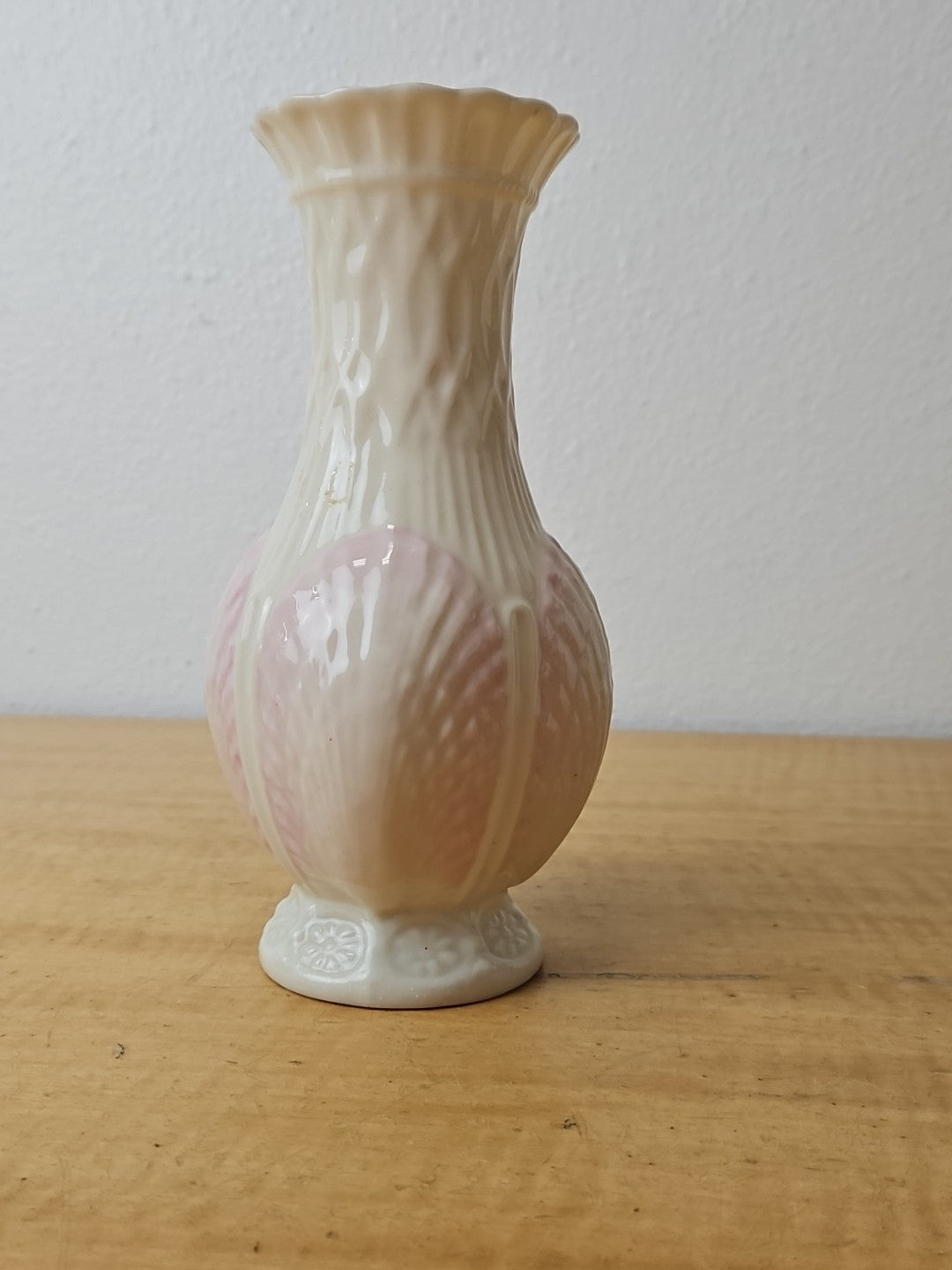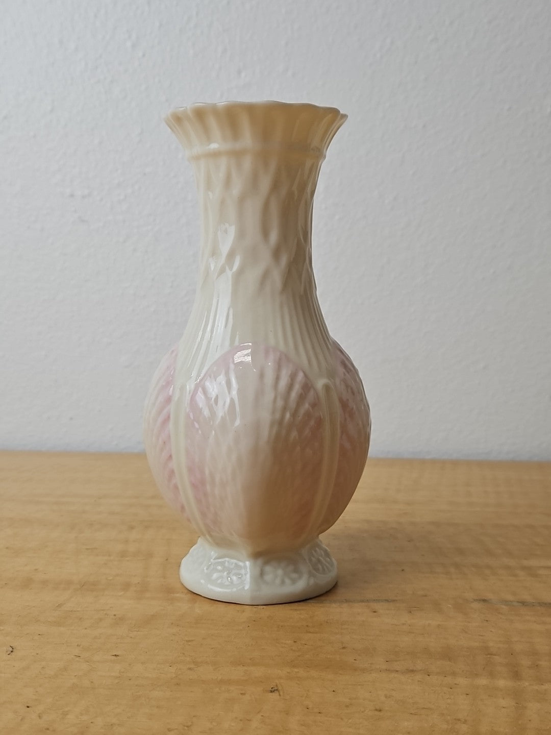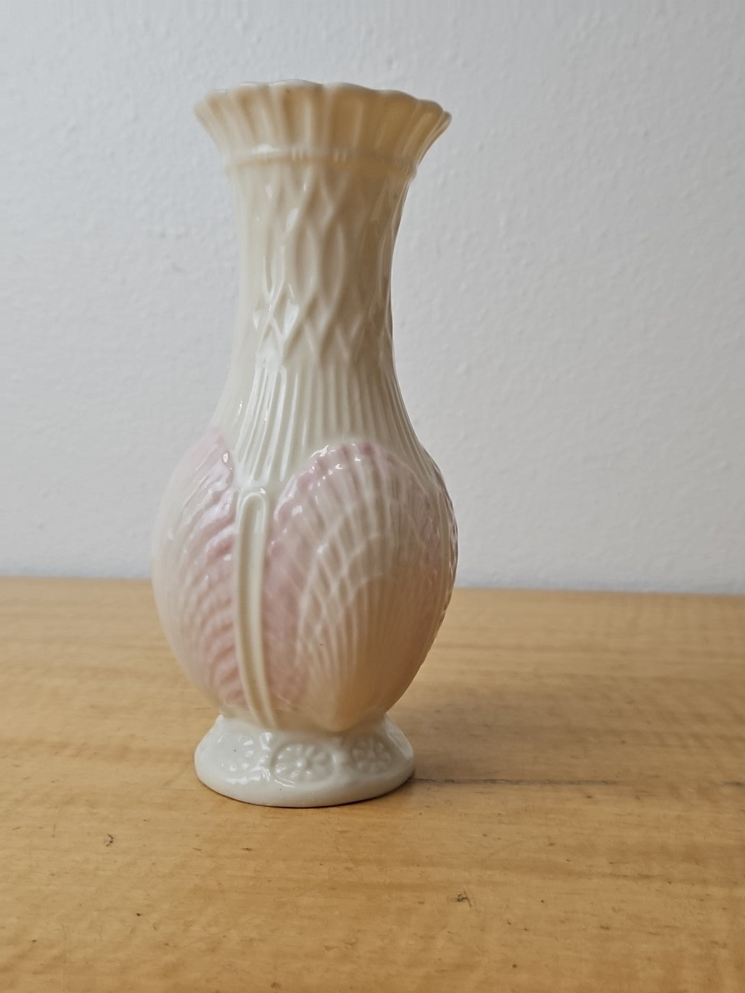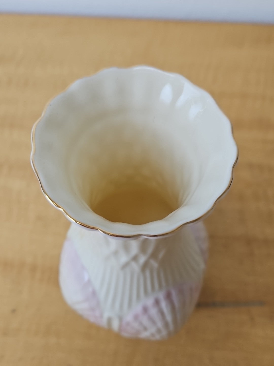 BELLEEK Porcelain Pink Shell VASE 7th Mark Gold Made in Ireland (1980-1993)